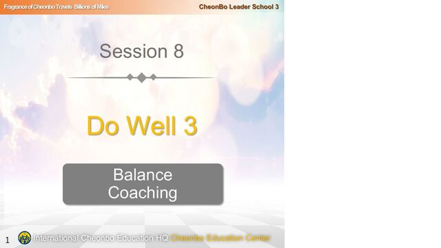 settled by the movement of the returning force against the giving force in the reciprocal relationship. Because God is at the center of true love, the entire universe is operating in balance. (True Mother's Word Collection 158-9) What is an illness? When one of our organs is out of balance and damaged, if we don’t quickly correct it, the universe will repel us, saying, ‘You have not met the standard of the principle of coexistence.’ Because of that repelling force, we feel pain. (Cheon Jeong Gyeong 6.2.3:14) Fragrance of Cheonbo Travels Billions of Miles CheonBo Leader School 3 International Cheonbo Education HQ Cheonbo Education Center