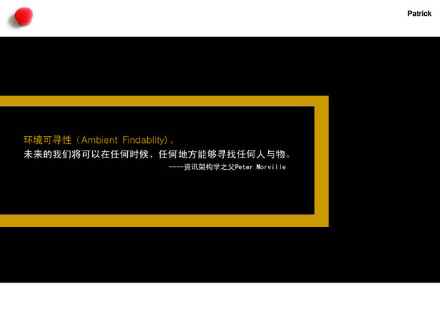 Cisco Wireless Location Appliance “A quick glance at the screen shows exactly where the tagged wheelchairs are located...Patients wait no more than a few minutes for a wheelchair, and we save $28,000 a month by eliminating searches.” 它提示我们,环境可寻性可以对灾难搜救工作起到实质作用。救援人员可以通过终端对某一区域进行主动搜索,被救援者 可以使用紧急按钮向主控终端发送警报。有效提高黄金时间救援率。该理念可面向自然灾害多发地区、政府相关部门、厂矿乃至 个人推广,开发出个人安全的必备物品。 RFID系统可以在灾难中瞬间识别和清点已撤离的员工。此外,追踪进出敏感区域的人员是保护人员和财产的关键。 RFID信号发射器可以帮助救援组织找到受伤或被困的员工。 控制系统可以授权或禁止人和车进出各个厂区,并对违规行为发出警报。 追踪系统可对过去的事件逐帧即时回放,以供事后分析。 除了人员定位,RFID还提供对高价值设备和战略生产资料的即时识别。 RFID创新产业事例 ——为带动品牌全系产品的销量增长创造机会