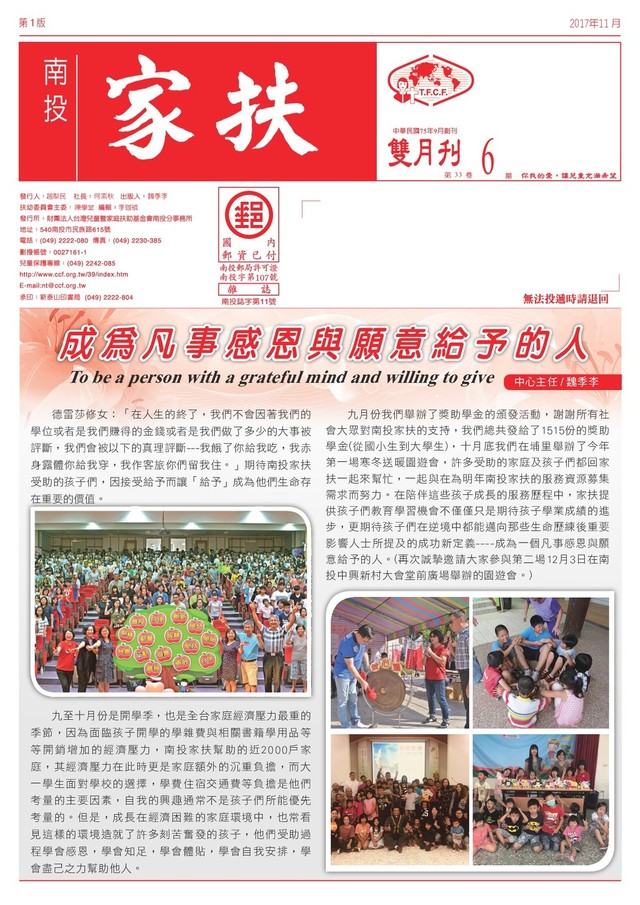 廖麗娟、廖綉霜、熊曉華、 趙正貴、劉又嘉、劉伊促、 劉秀娟、劉孟勇、劉旻恩、 劉俊良、劉俊明、劉冠明、 劉政達、劉柏宏、劉美玲、 劉美鈴、劉哲愷、劉素蘋、 劉惠滿、劉嬡袖、劉麗卿、 潘人豪、潘志宏、潘秀玲、 潘佳琪、潘怡卉、潘金鳳、 潘宣融、潘羿均、潘家稜、 潘湖峯、蔣少媛、蔡志邦、 蔡志昌、蔡孟倫、蔡宗成、 蔡宜庭、蔡承桓、蔡明生、 蔡素貞、蔡偉玲、蔡鼎元、 蔡銘耿、蔡德忠、蔡曉芸、 蔡懷德、蔡瓊燕、鄭本棠、 鄭東成、鄭柏廷、鄭博益、 鄭馨柔、鄧耿堂、鄧凱瀞、 鄧雅憶、鄧錫純、蕭吉助、 蕭淑真、蕭翌柱、蕭惠中、 蕭慶重、賴 苑、賴玉芬、 賴宜軒、賴玥茹、賴彩雲、 賴朝鵬、賴雲妹、謝文培、 謝宗諭、謝欣潔、謝張不、 謝舒婷、謝瑞旺、謝煒基、 謝熹靜、鍾沛芸、鍾昀蓁、 鍾麗香、韓嘉珍、簡大閣、 簡木榮、簡玉霞、簡汝權、 簡佳惠、簡旺燁、簡金彰、 簡美鈴、簡振山、簡淑美、 藍永和、藍偉豐、顏宇彤、 顏國長、顏淑惠、魏秀鑾、 羅月枝、羅依清、羅首鳳、 蘇世清、蘇正仁、蘇珍宜、 蘇珮綺、蘇雅芬、鄒林囝 媽、歐陽志宏、鄒曾閃媽、 鄒樹陽公、張簡能祥、吳陳 秀紅、余陳玉女、陳林金 錠、吳黃秀英、李吳金枝、 劉洋君 ( 劉方澐 )、黃楊鶴 ( 黃 錦 燦 )、 賴 彥 宇 ( 賴 彥 愷 )、賴裕堂 ( 簡君容 )、賴 坤欉 ( 嚴玉圓 )、李忠信 ( 廖 容伶 )、林碧潭 ( 陳畇蒨 )、 林文俊 ( 林宗生、林益丞 )、 順發豬肉店、廣佑聖王尊 神、鄒相爺公尊神、國光花 藝生活館、藍余意妹女士紀 念基金 615 元 / 徐乙慈 700 元 / 潘秀美、蕭榮輝 800 元 / 洪 秀、許慶祥、陳國宗、 葉珊珊、簡麗娟、蘇子傑、 黃明經 ( 黃方春子 ) 900 元 / 侯侑宏、紀蘊紹、 張芳瑜、張哲瑋、陳金芳、 陳德森、劉家綺、劉家綾、 劉家妤、劉淑媛、蕭筑云、 蕭雅珍、魏素女 1,000 元 / 尤小維、尤永吉、王良岑、 王辰禾、王治中、王偉熹、 王智聖、王菊珠、石光裕、 石益帆、石雅菱、朱飛虹、 朱聖哲、江素香、何金生、 吳秀妙、吳宜蓁、吳武勳、 吳金忠、吳信中、吳宥萱、 吳曉狄、吳聲欣、呂芳奇、 呂姿儀、李玉美、李妍慧、 李芊嬅、李昕儒、李冠潔、 李國誠、李淑惠、李淑寶、 李翊愷、李雲嵐、李嘉容、 李曉昀、杜榮祥、卓藝臻、 周浩哲、周燕珠、林士榤、 林文釧、林世雄、林永健、 林存禮、林志鴻、林沛君、 林宛蓒、林幸珠、林怡雯、 林承璿、林芸茜、林俊宏、 林冠瑜、林柏呈、林耘堃、 林華傑、林煒皓、林嘉錳、 林篁園、林賢治、林鴻義、 邱承毅、施明宗、施美枝、 施培梅、施雅玲、柯慕姍、 謝承志、謝詠喬、謝尚諭、 洪成龍、洪秀雲、洪青良、 紀盈潔、唐豫龍、孫玉英、 孫育玲、孫長蓀、徐翊萍、 徐福銘、翁福元、寇英德、 常淑華、張正庸、張見得、 張美麗、張修齊、張振坤、 張景煉、張雅琪、張愛美、 張麗君、曹盛輝、梁秀金、 莊文光、莊佩菁、莊錫山、 許淑華、許進鴻、許裕明、 許瓊煌、郭禹莘、陳乙萱、 陳允進、陳秀美、陳怡萱、 陳信安、陳保成、陳俊同、 陳俊男、陳俊良、陳宥睿、 陳建國、陳昭君、陳振海、 陳耿沛、陳基實、陳雪嬿、 陳棋榜、陳貴仁、陳源坤、 陳維茵、陳醇潔、章振忠、 傅國欽、彭亭燕、曾炫誠、 曾美惠、曾煥鐘、曾鈺泰、 游鎰謙、黃玉如、黃承鴻、 黃東盛、黃建諧、黃美女、 黃倩茹、黃海郕、黃睿芊、 黃慶偉、黃靜珠、黃寶聯、 黃譯美、楊俊一、楊秋萍、 楊振南、楊貴鳳、葉宥辰、 葉雅雯、鄒睿嘉、廖秀勳、 廖明邦、廖英桃、廖凱悅、 廖麗娟、蒲志銘、趙慧美、 劉育伶、劉素惠、劉國銘、 劉淳銨、劉淑如、劉淑美、 劉淑惠、劉瓊瑤、劉耀祺、 潘勝原、蔡士弦、蔡尚志、 蔡美奇、蔡宸裔、蔡碧昭、 鄭錦珠、黎偉聖、蕭西坤、 蕭惠娟、蕭懋林、賴允德、 賴瑾螢、巫欣蓉、賴性珍、 賴乘民、賴慧璇、薛安庭、 謝仁傑、謝文貴、謝嘉宸、 謝憲忠、謝禮謙、謝耀諆、 簡文杰、簡妤安、簡明達、 簡明瑩、簡金星、簡浚珈、 簡淑美、簡淑鈴、簡連春、 簡翟歐、藍婉瑄、魏如伶、 羅秀霞、蘇玉女、蘇薪豫、 鐘玲君、張博賢 ( 洪翊玹 )、 鄭宇宏 ( 鄭玉涵、鄭玉琳、 鄭天賀、丁天妮 )、林春旗 ( 王春金、林巧婷、林芬姿、 林沛岑)、 熱心人士(埔里)、 黃劉月英、趙張慶珠、亙冠 企業有限公司、竹山愛心資 源回收站 1,200 元 / 王秀梅、何華欽、吳立仁、 吳政忠、吳輝章、李仁良、 李木旺、李佳佳、李佳穎、 李建光、李惠鈴、李懿荏、 周郁晨、官有垣、林啟富、 林榮崇、姚嘉南、洪美省、 洪淑慧、徐素華、張英蓓、 張家源、張博翔、張朝勝、 張瑞娟、許彩滿、許彩銀、 陳文泉、陳秀玲、陳秀碧、 陳亭仰、陳亭羽、陳相如、 陳錦秀、游振衢、黃素貞、 黃國翔、黃淑華、黃智宣、 黃靖雅、黃濰苓、黃獻智、 楊景字、葉吉田、劉麗卿、 鄭建志、蕭翔瑋、賴來淵、 賴重達、謝承和、李黃碧 雲、謝瑞珍、吳盛崇 ( 彭淑 正 )、劉亮君 ( 黃進銘 )、蔡 漢津 ( 江秀卿 )、張文賢 ( 張 惟敦、黃士貞 )、張綿嬌 ( 吳 漢陸、吳芷瑩 )、 陳欽瑞 ( 藍 雪燕 ) 伉儷、吳易晅 ( 吳梁 鈾、劉芬宜 )、馮松林 ( 劉 素宏、馮立玟、馮立欣、馮 立榕 ) 1,500 元 / 莊 玲、江月琇、 許寶玉、廖凰君 1,560 元 / 黃崇琦 1,600 元 / 林