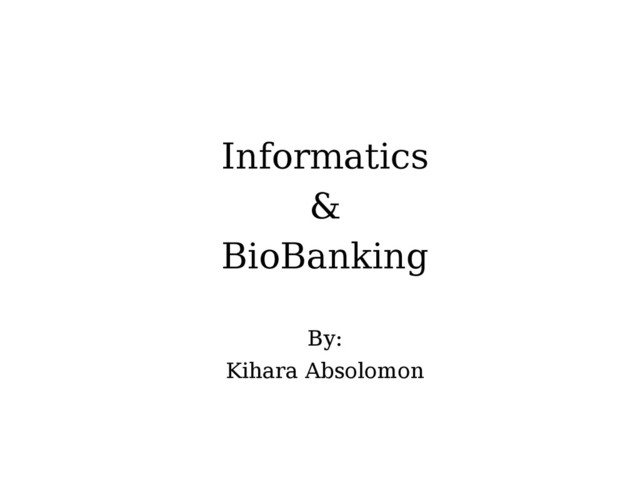 A presentation on Informatics and Biobanking highlighting novel tools of data collection being used by ilri. In addition it also focuses on the Biobanking and Biopreservation platform at ilri.
