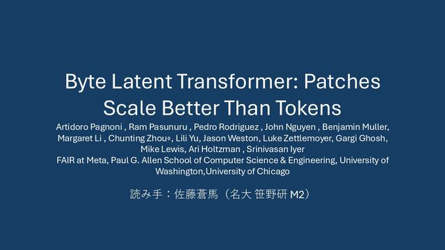 , Ram Pasunuru , Pedro Rodriguez , John Nguyen , Benjamin Muller, Margaret Li , Chunting Zhou⋄, Lili Yu, Jason Weston, Luke Zettlemoyer, Gargi Ghosh, Mike Lewis, Ari Holtzman , Srinivasan Iyer FAIR at Meta, Paul G. Allen School of Computer Science & Engineering, University of Washington,University of Chicago 読み手:佐藤蒼馬(名大 笹野研 M2)