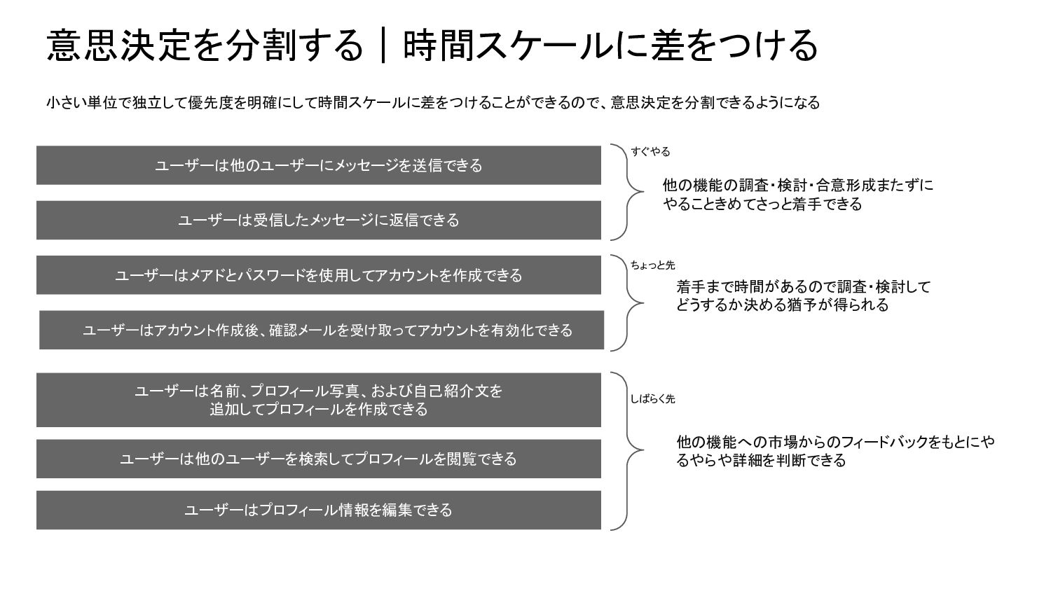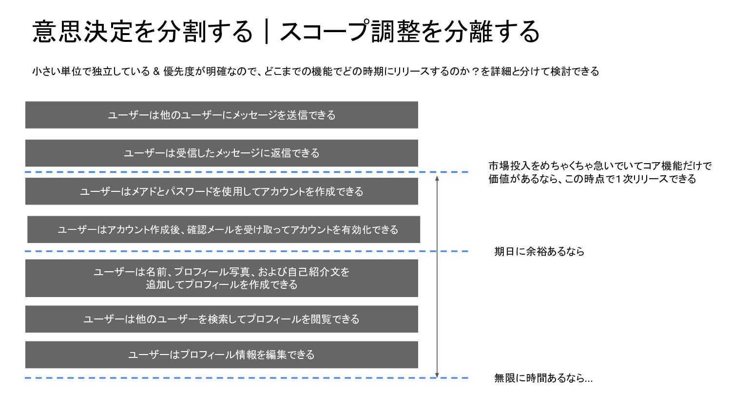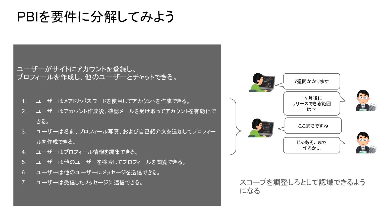 ユーザーはメアドとパスワードを使用してアカウントを作成できる。 2. ユーザーはアカウント作成後、確認メールを受け取ってアカウントを有効化で きる。 3. ユーザーは名前、プロフィール写真、および自己紹介文を追加してプロフィー ルを作成できる。 4. ユーザーはプロフィール情報を編集できる。 5. ユーザーは他のユーザーを検索してプロフィールを閲覧できる。 6. ユーザーは他のユーザーにメッセージを送信できる。 7. ユーザーは受信したメッセージに返信できる。 - 合意形成ができない - 不確実性が含まれている などの理由で結局、話が進まない 技術的に どう実現するんだ?
