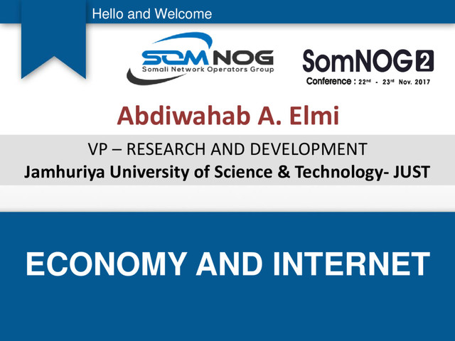 ECONOMY AND INTERNET Abdiwahab A. Elmi Hello and Welcome VP