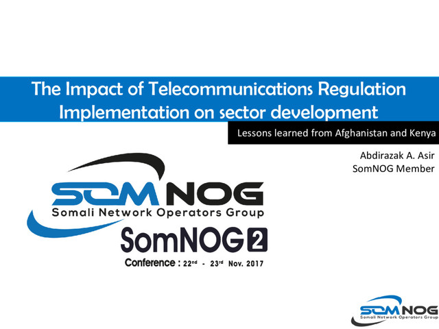 The Impact of Telecommunications Regulation Implementation on sector development Afghanistan Before REGULATION After REGULATION Source: Afghanistan Telecom Regulatory Authority (ATRA)