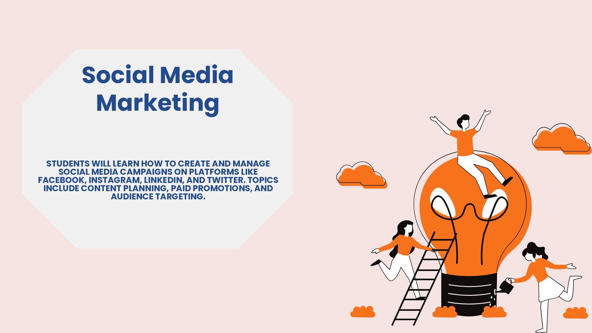 Use this slide to give your audience a structured overview, so they can follow along easily as you progress through each part of the presentation. It also reinforces the comprehensive nature of the course by showing the depth and breadth of topics included.