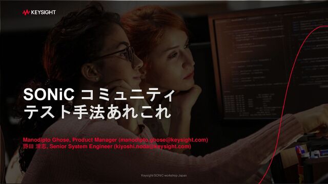 – Compliance & Benchmarks Test Content Google Microsoft Amazon Meta Cisco Arista Juniper Nokia ... Criteria • Open Traffic Generator • Integration into Open Test Orchestration Frameworks Products Open Networking Eco-Systems Broadcom Marvell Intel NVIDIA ... Keysight Keysight/SONiC workshop Japan