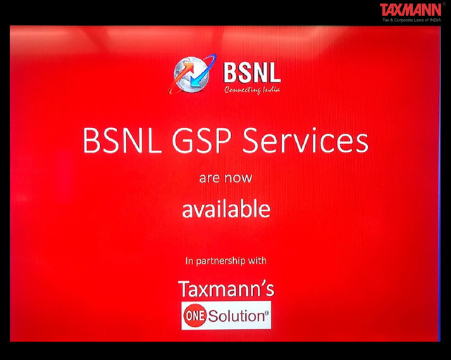Bharat Sanchar Nigam Limited: BSNL GSP Services are now available in partnership with Taxmann's One Solution. Taxmann is a qualified GST Suvidha Provider. BSNL offer ASP-GSP services for SMEs and Large Businesses. Subscribe to our GSP services right now: http://www.taxmann.com/GSP-services/gsp-corporates.aspx
