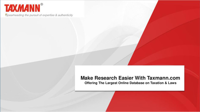 Taxmann is the leading publisher on Taxation & Laws in India. We maintain the largest and most accurate online database on Direct tax, Indirect taxes including GST, International Taxation, Corporate laws & Indian Acts that can be accessed with a few clicks. Visit https://www.taxmann.com/.