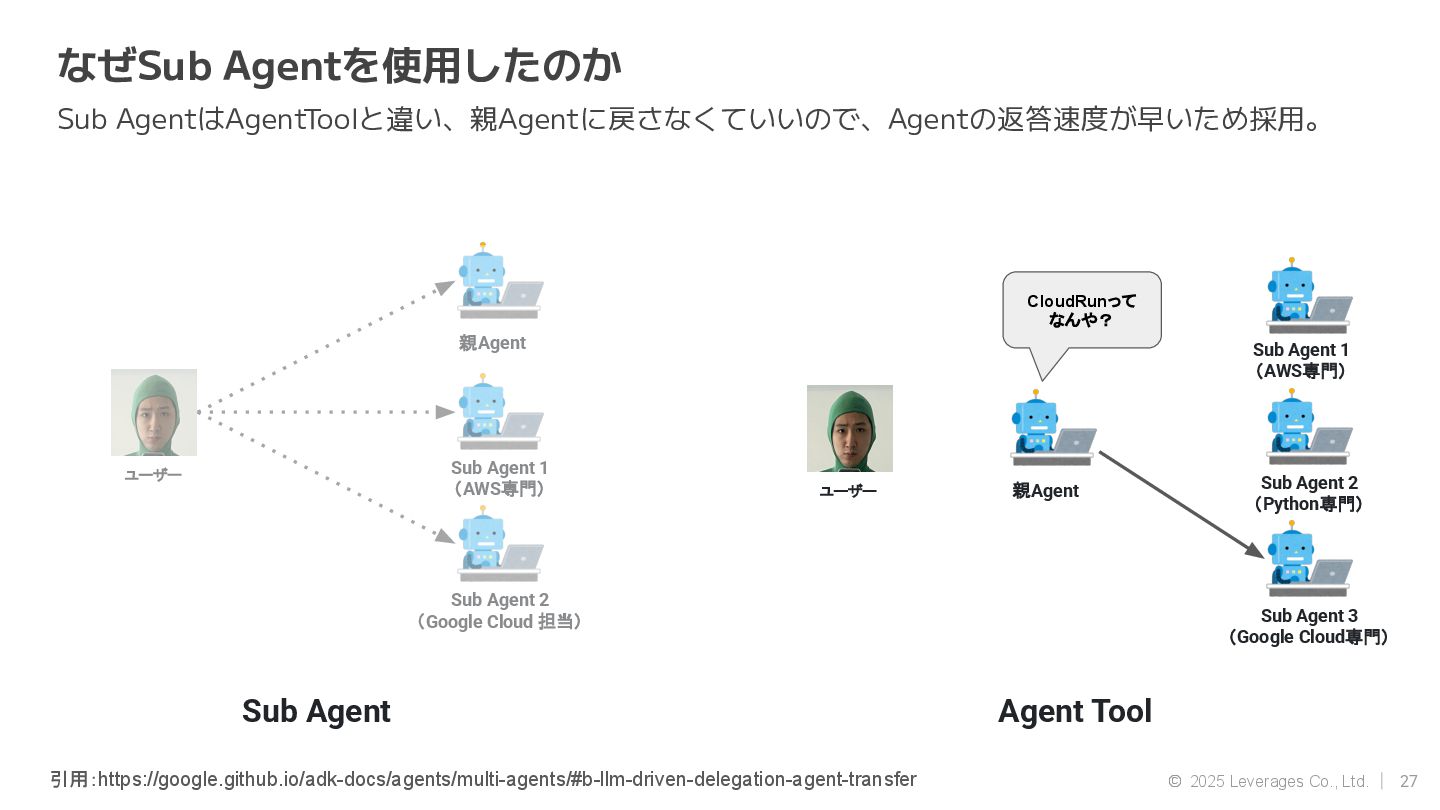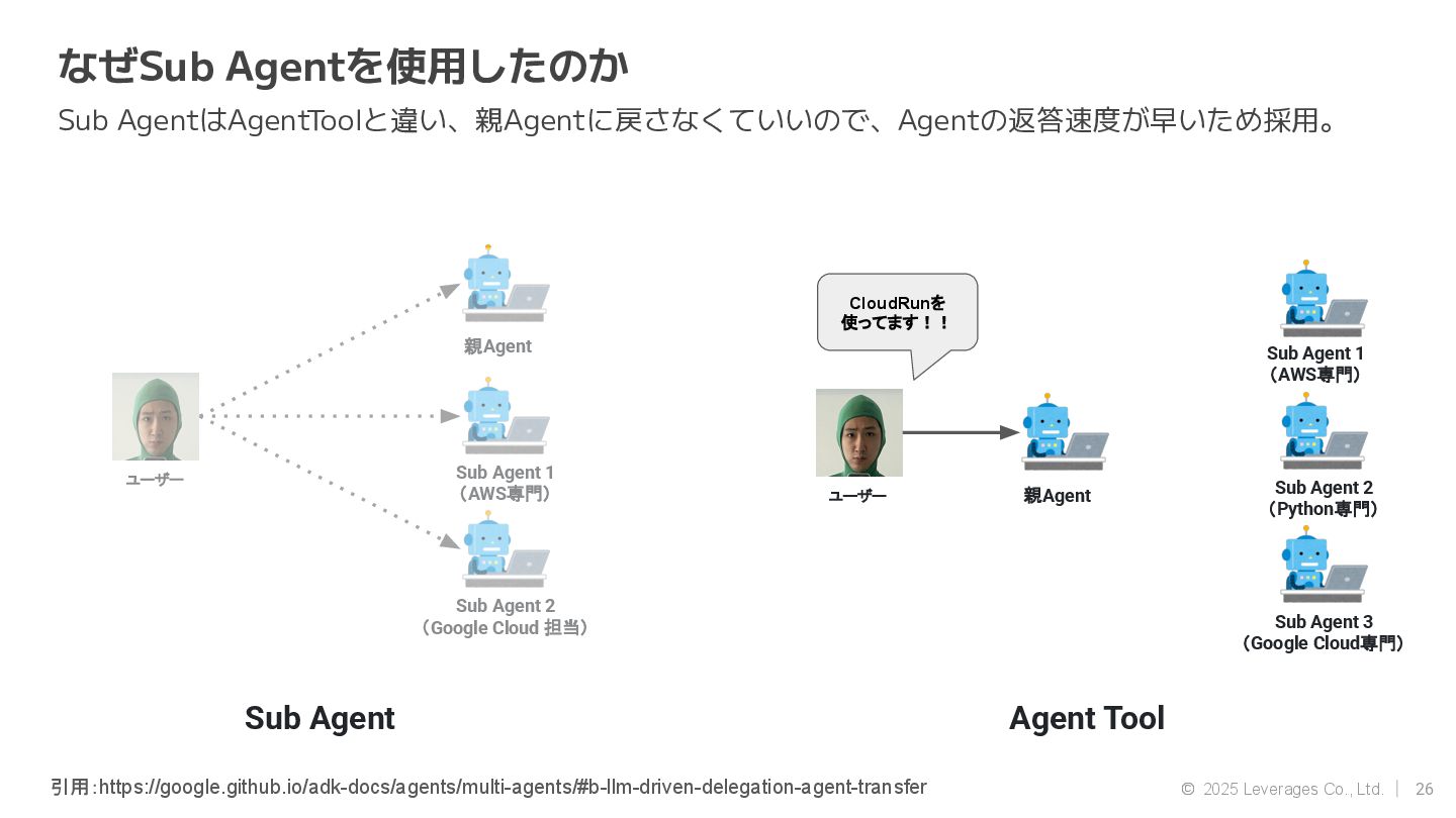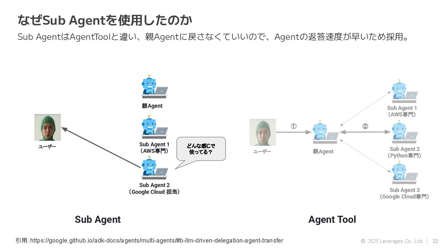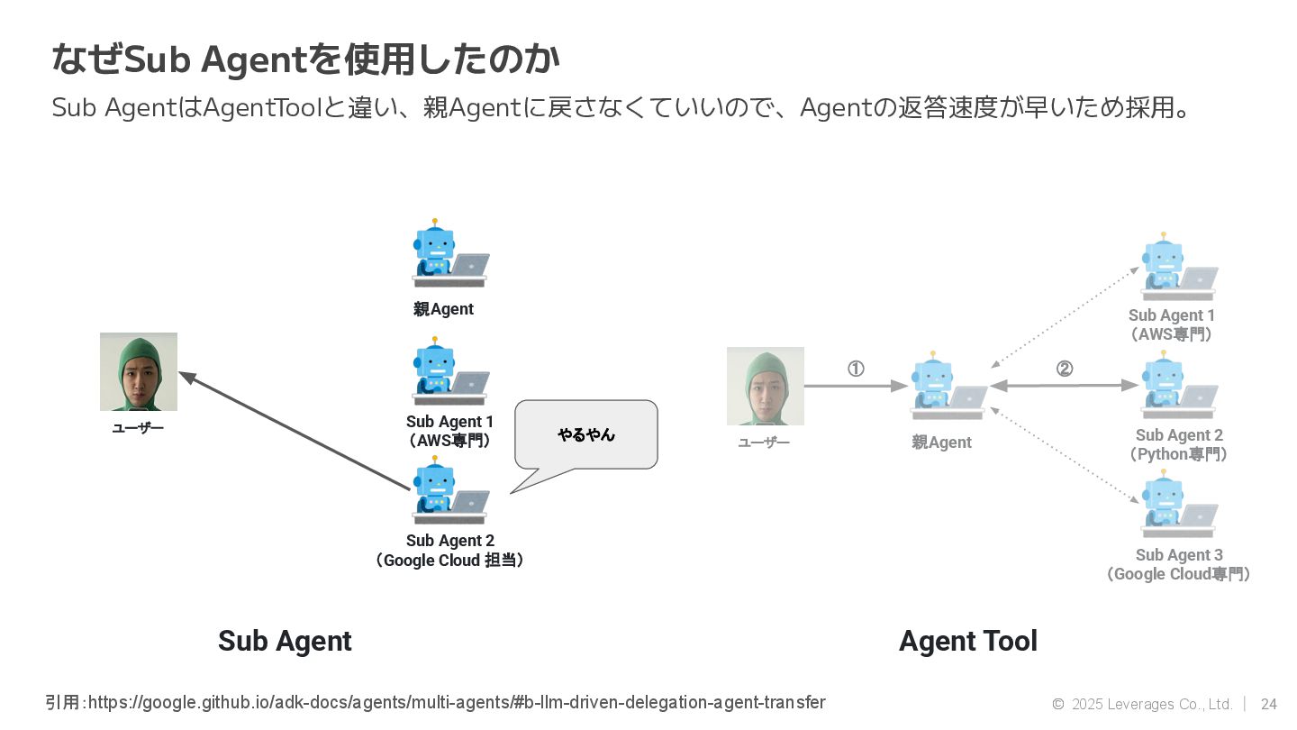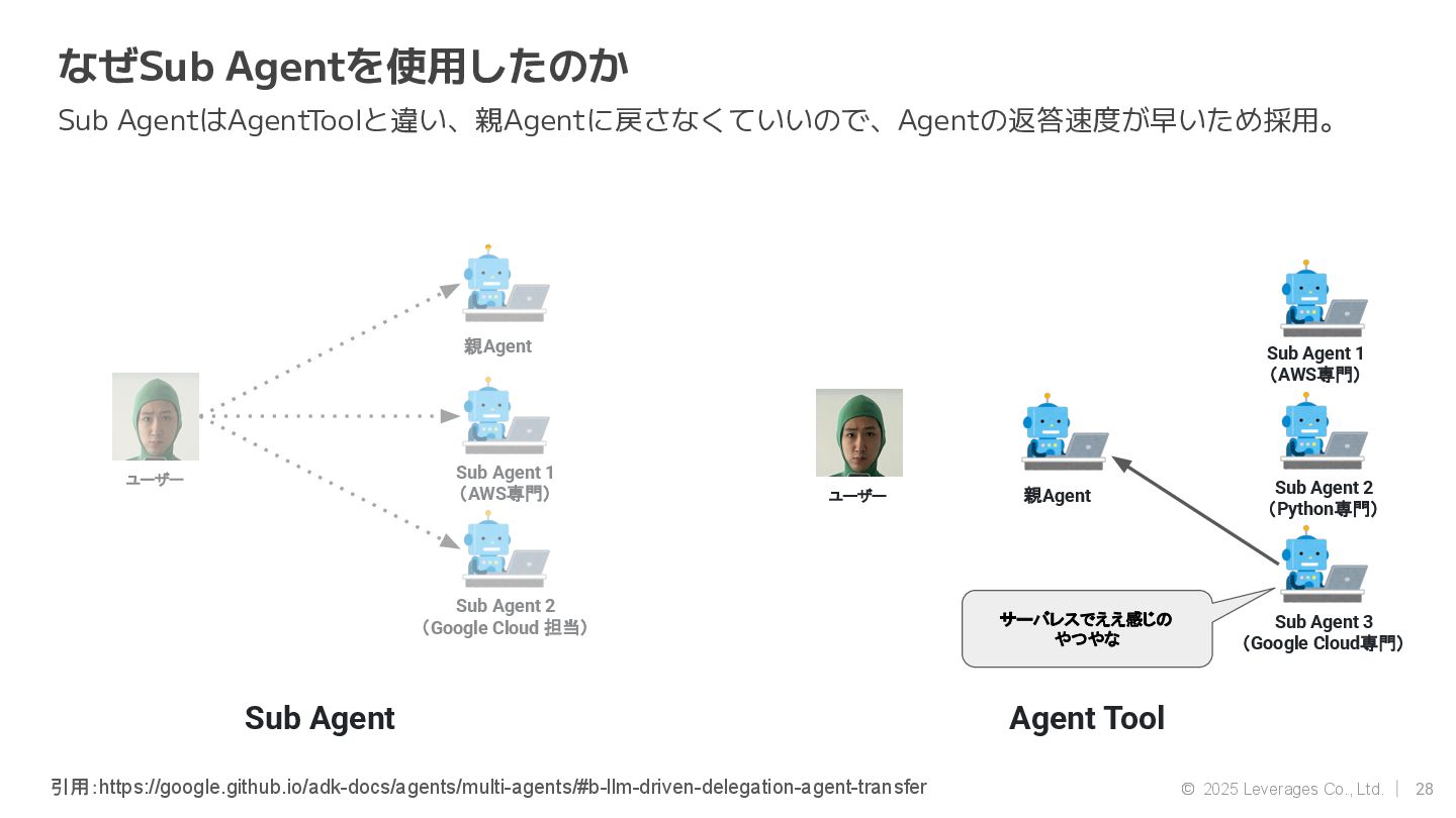 AI エージェント開発(Google ADK, Strands Agent) • 社内AI推進(AI駆動開発、Agent開発) • クラウド(AWS, Google Cloud) 資格 • AWS Community Builders(ML) • 甲賀流忍者検定(中級) • 2024 AWS Top Engineers(前職) 趣味 • 月一で面白いことをするのにハマってます ◦ Spartanレース ◦ 100kmウォーキング ◦ 無人島かくれんぼ ◦ 滝行 SNS • https://x.com/sonoda_mj • https://zenn.dev/tomomj • https://note.com/sonoda_mj Tomotada Sonoda システム本部/テクノロジー戦略室/AIエージェント開発チーム 自己紹介