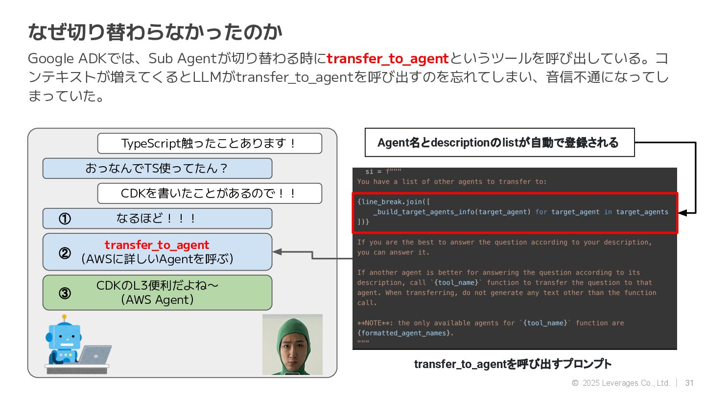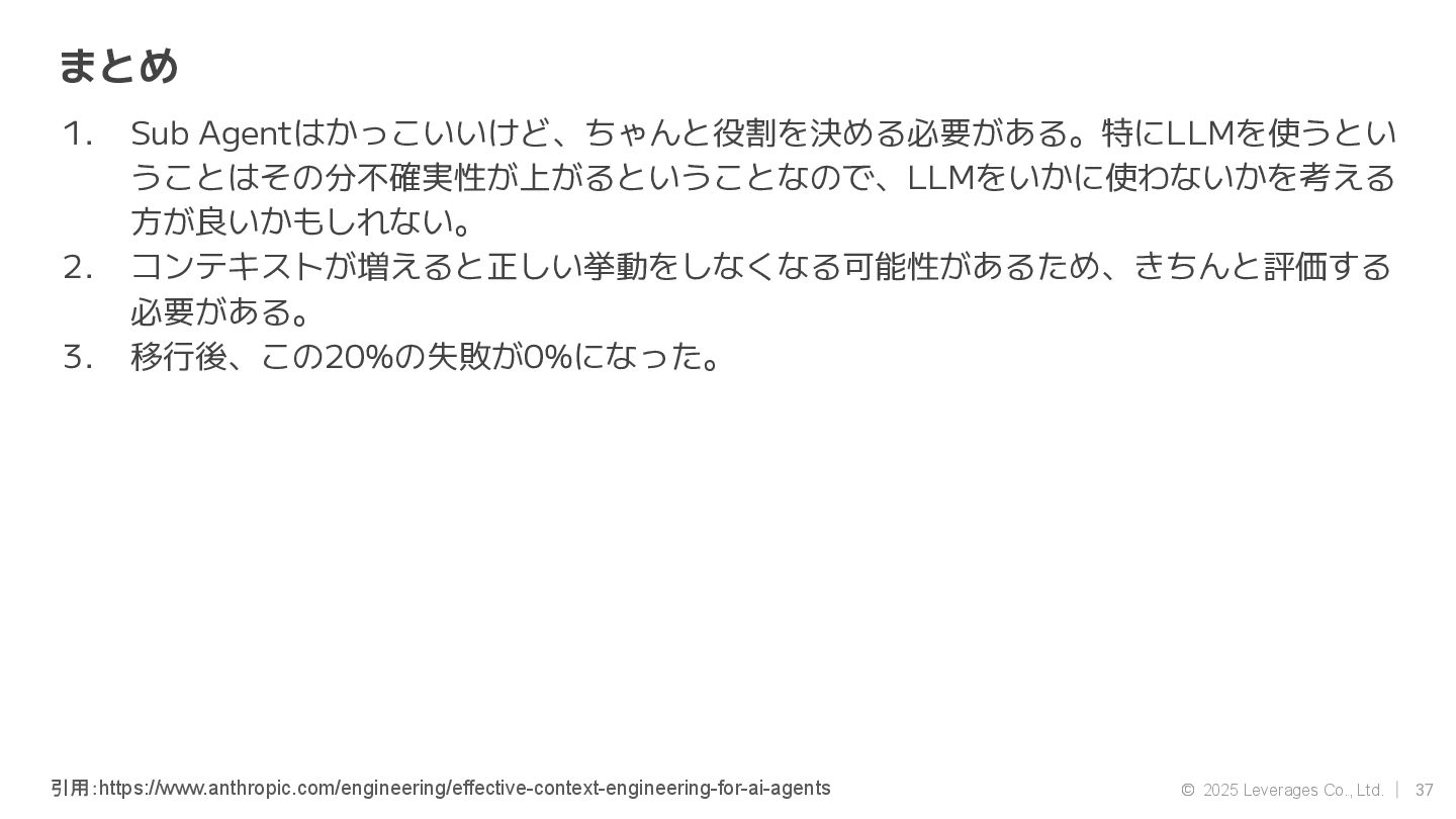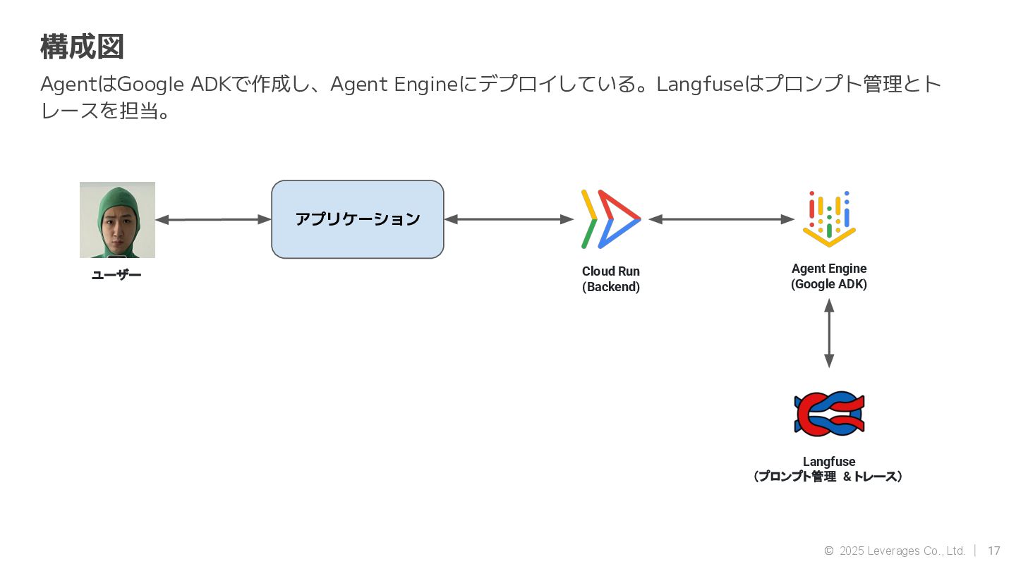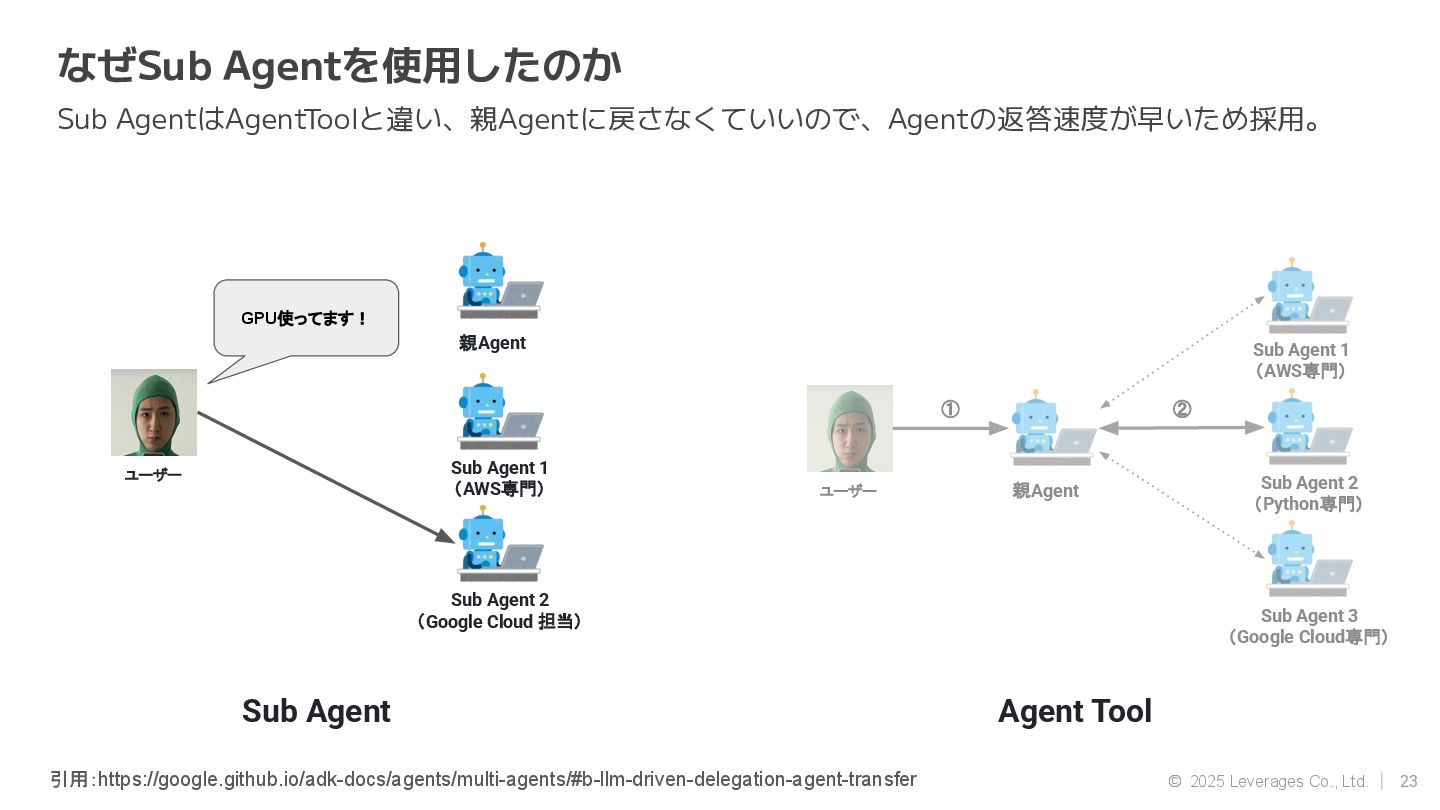 AI エージェント開発(Google ADK, Strands Agent) • 社内AI推進(AI駆動開発、Agent開発) • クラウド(AWS, Google Cloud) 資格 • AWS Community Builders(ML) • 甲賀流忍者検定(中級) • 2024 AWS Top Engineers(前職) 趣味 • 月一で面白いことをするのにハマってます ◦ Spartanレース ◦ 100kmウォーキング ◦ 無人島かくれんぼ ◦ 滝行 SNS • https://x.com/sonoda_mj • https://zenn.dev/tomomj • https://note.com/sonoda_mj Tomotada Sonoda システム本部/テクノロジー戦略室/AIエージェント開発チーム 自己紹介
