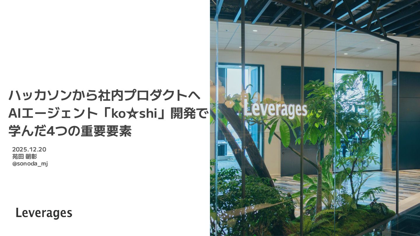 ハッカソンから社内プロダクトへ AIエージェント「ko☆shi」開発で学んだ4つの重要要素