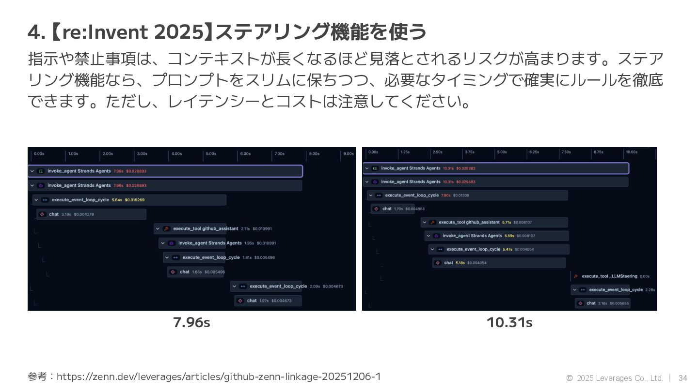 33 © 2025 Leverages Co., Ltd. 4. 【re:Invent 2025】ステアリング機能を使う 参考:https://zenn.dev/leverages/articles/github-zenn-linkage-20251206-1