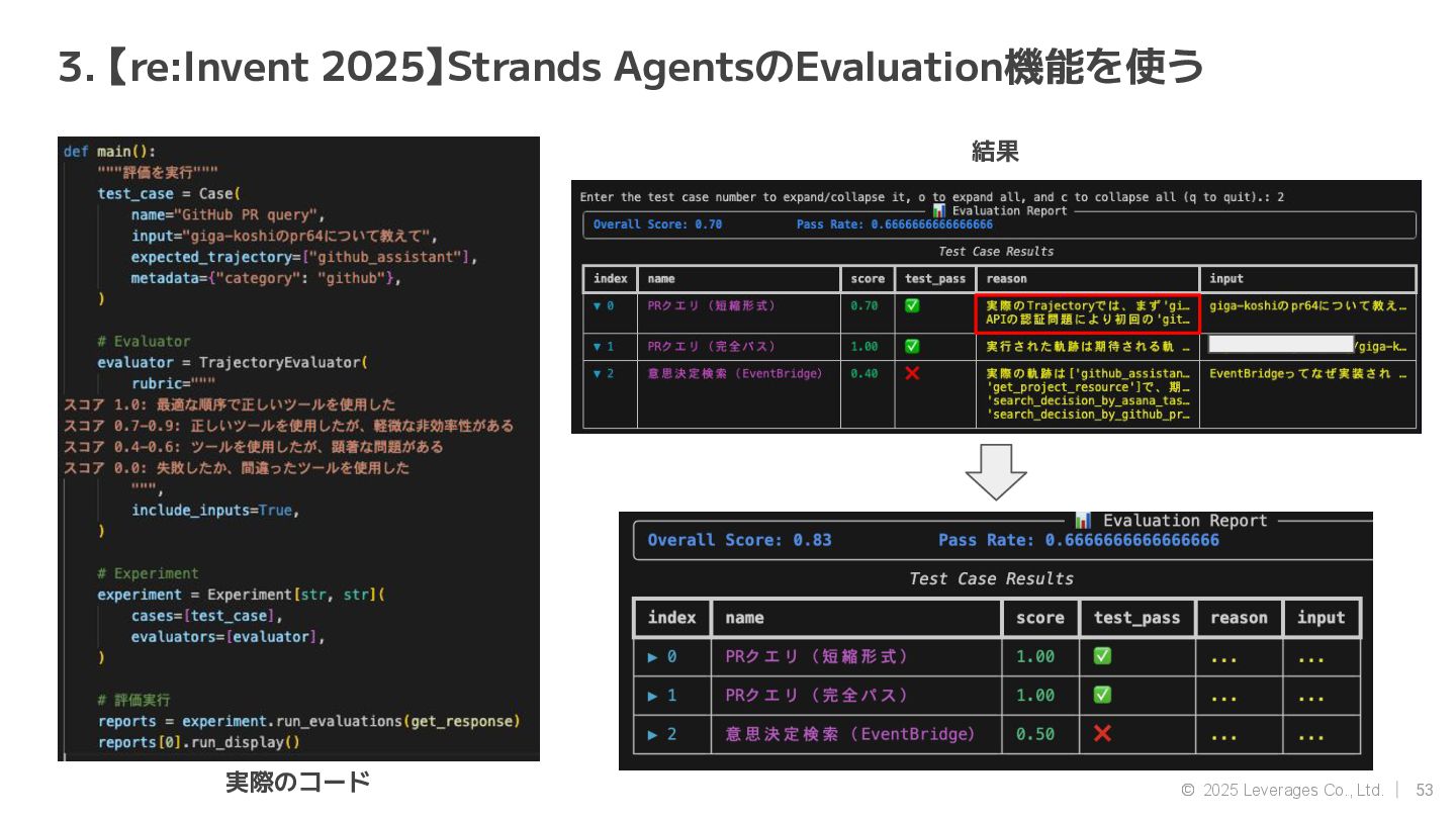 53 © 2025 Leverages Co., Ltd. 3. 【re:Invent 2025】Strands AgentsのEvaluation機能を使う