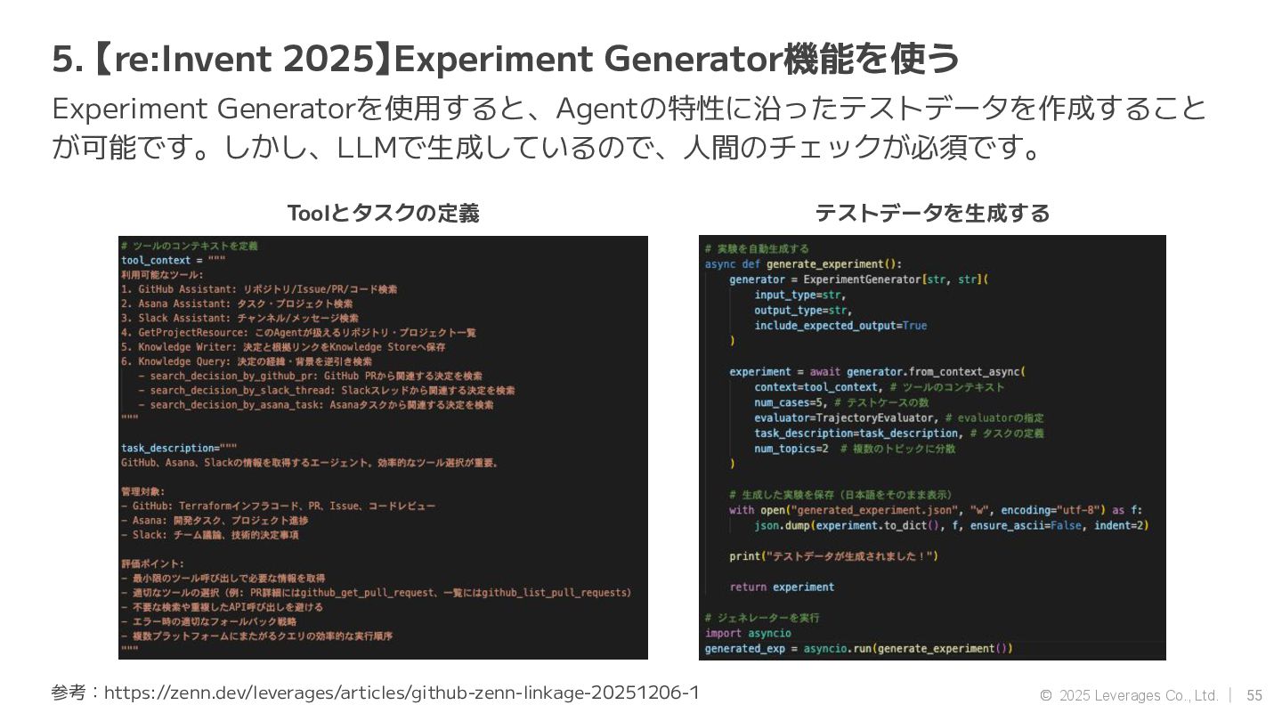 55 © 2025 Leverages Co., Ltd. 5. 【re:Invent 2025】Experiment Generator機能を使う