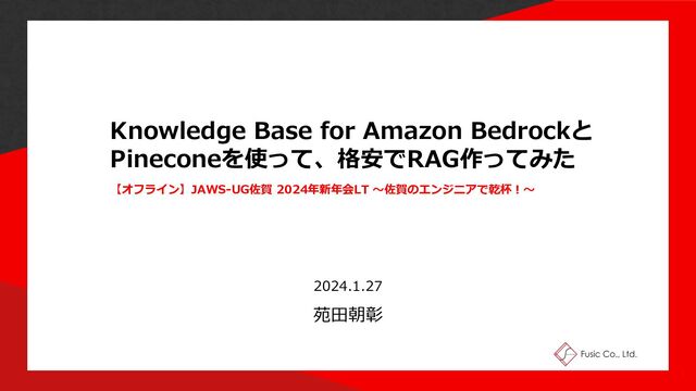 Knowledge Base for Amazon Bedrockと Pineconeを使って、格安でRAG作ってみた 【オフライン】JAWS-UG佐賀 2024年新年会LT 〜佐賀のエンジニアで乾杯︕〜 2024.1.27