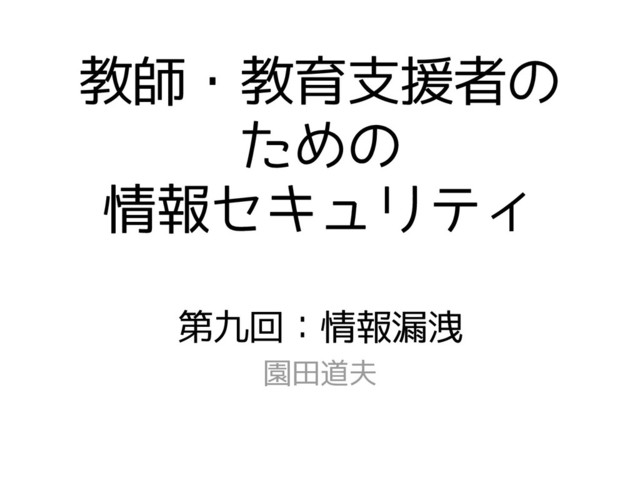 教師・教育支援者の ための 情報セキュリティ 第九回:情報漏洩 園田道夫