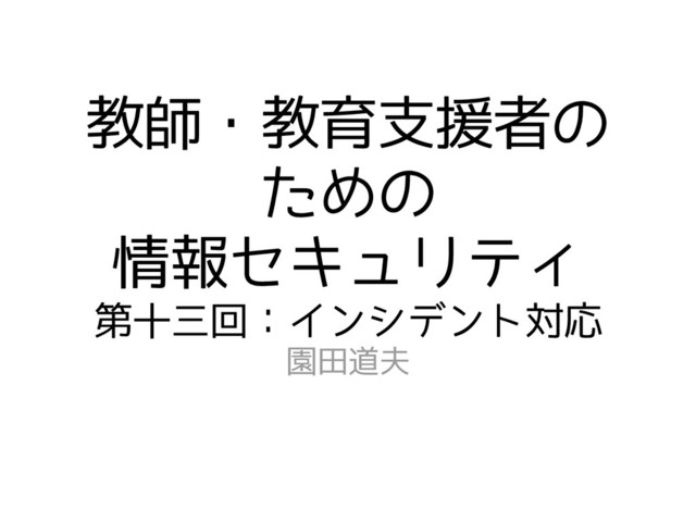 • 町教委によると、女性教諭は12年4月下旬、2008~12年度に勤 務した美咲町や鏡野町の小学校や奈義小の児童計228人の名前や電話番 号、成績などが入ったUSBを紛失したことに気付き、校長に報告して校 内などを探したが見つからなかった。教諭は職員室の机の中に保管してい ると思っていたが、自宅に時々持ち帰っていたという。 • 紛失したUSBは「1住民」と書かれた封書で届き、「先日拾って、中 身を確認したが、小学校のものではないか。個人情報を扱う先生として危 機感が不足しているのではないか」などと指摘する手紙が同封されていた。 • 笠木義孝教育長は「情報管理検討会議を設置して検証し、校内の情報管 理体制の見直しや再発防止の研修を実施したい」と話している。 • (2014年1月10日08時09分 読売新聞)