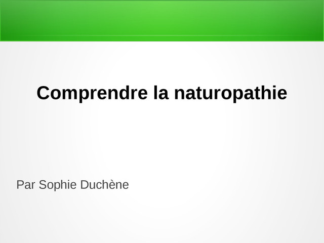 La naturopathie est une discipline parfois méconnue. Cette médecine traditionnelle est reconnue par l'OMS (Organisation Mondiale de la Santé) et aussi par le parlement européen. Cette présentation permet de mieux comprendre les bases fondamentales de cette discipline de santé.