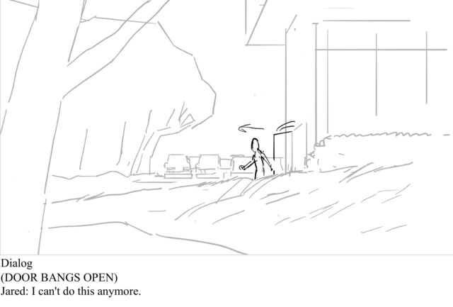 Dialog (DOOR BANGS OPEN) Jared: I can't do this anymore.
