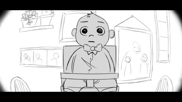 A overworked dad is trying to get his baby to smile, whereas the cat just wants some food. Who will get what they want?