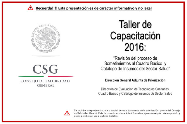 Cuadro Básico y Catálogo de Insumos del Sector Salud” Dirección General Adjunta de Priorización Dirección de Evaluación de Tecnologías Sanitarias. Cuadro Básico y Catálogo de Insumos de Sector Salud Recuerda!!!! Esta presentación es de carácter informativo y no legal