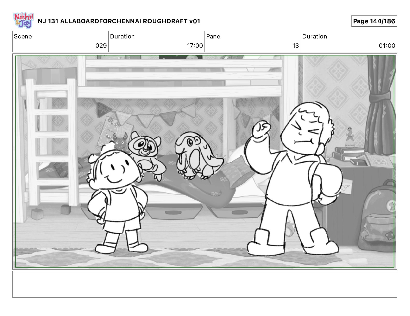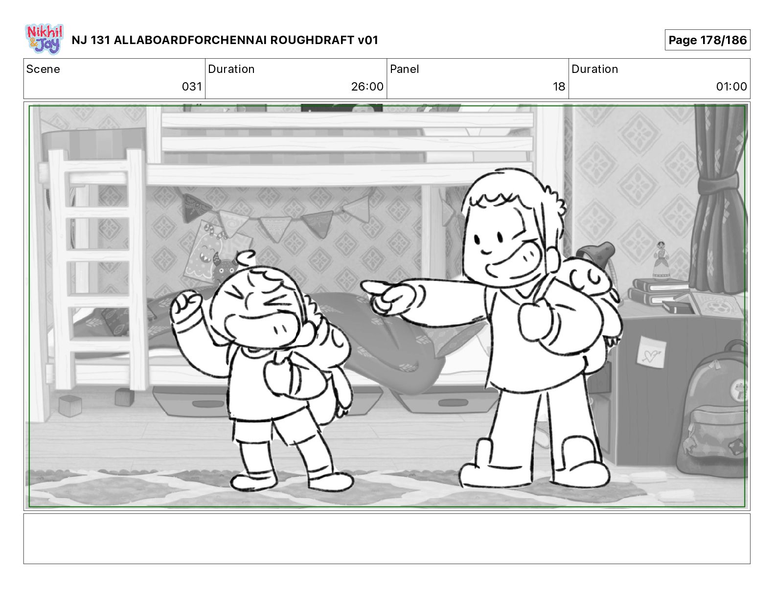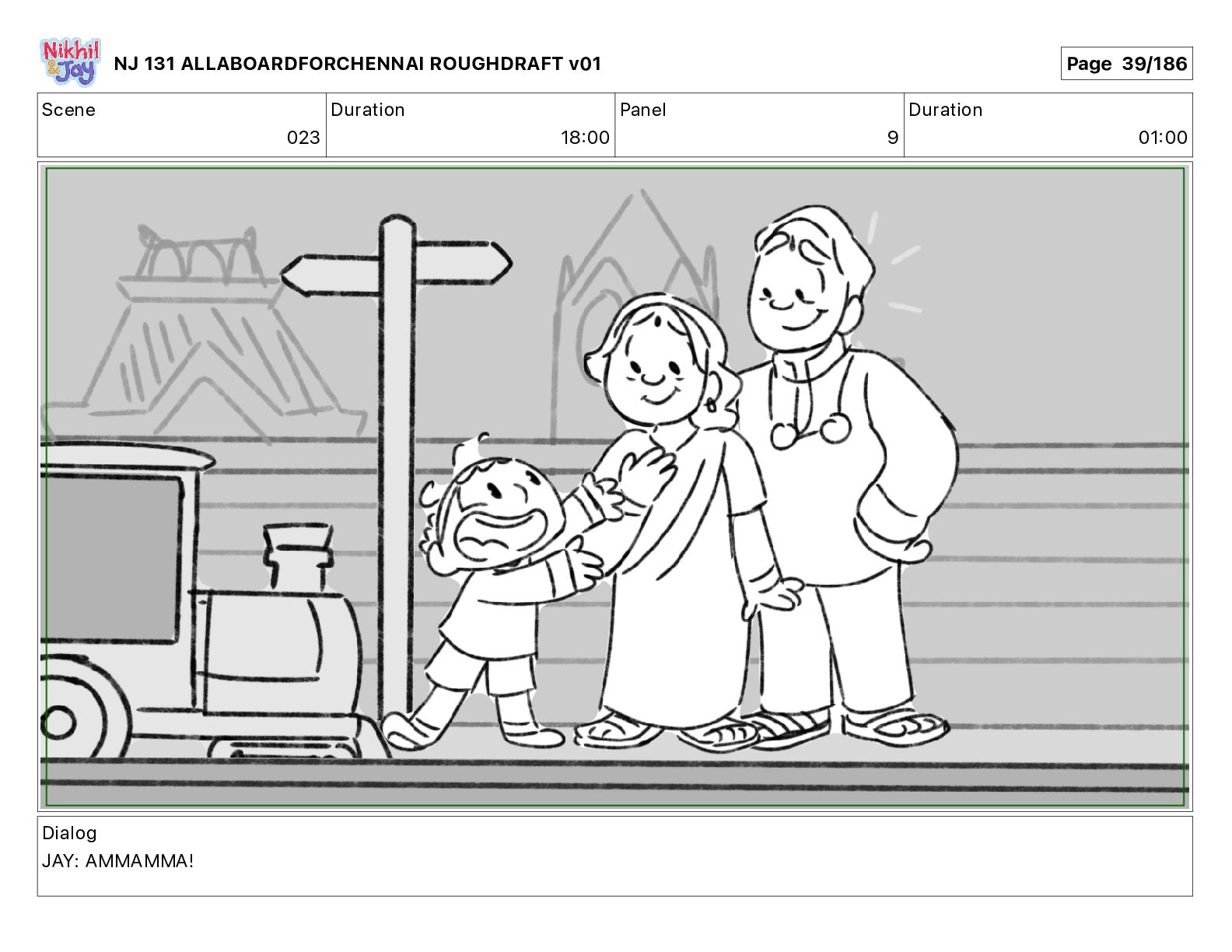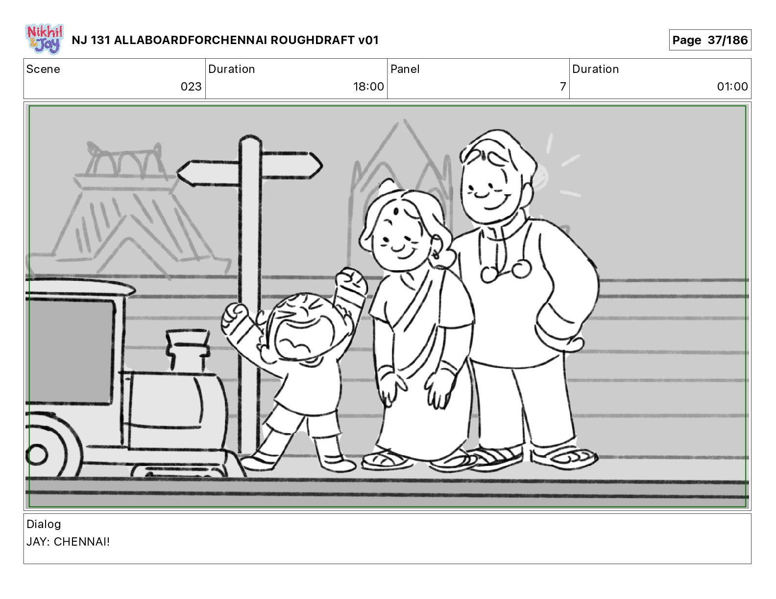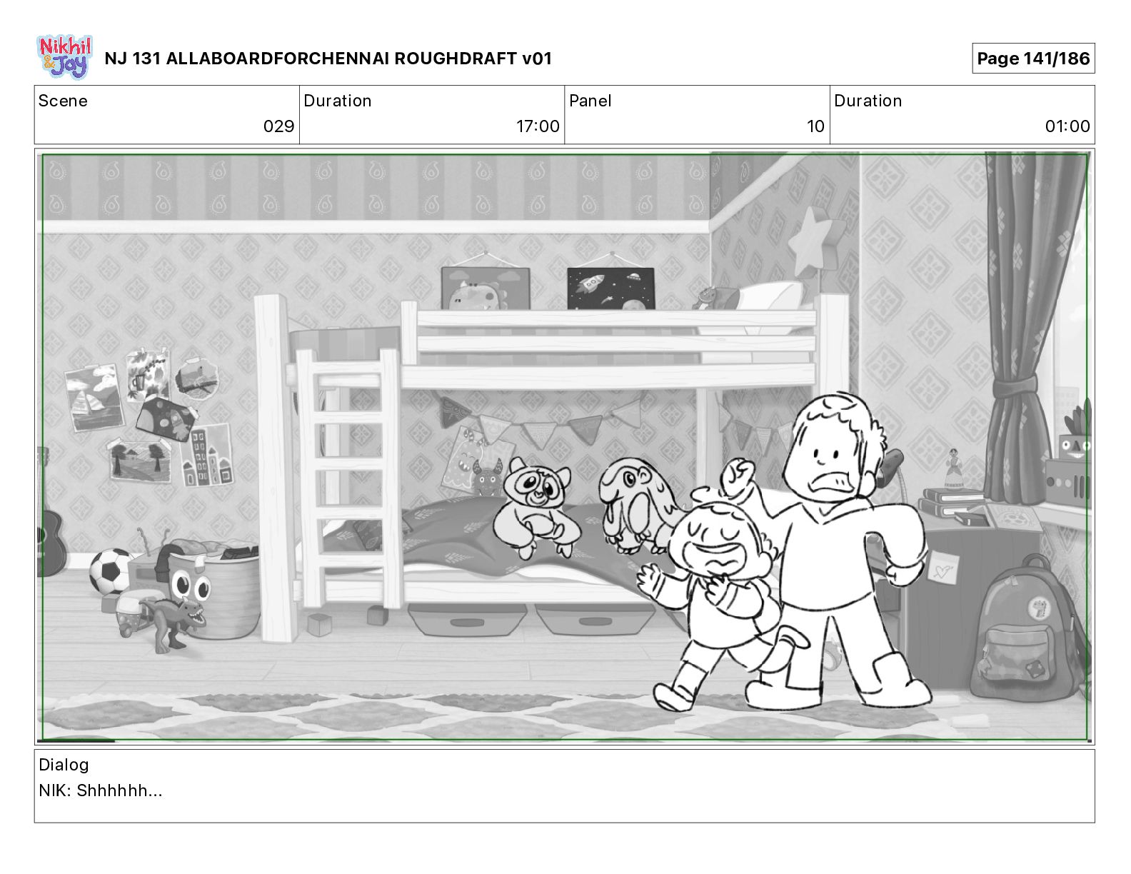Dialog NIK: The train now arriving at Bunk Bed Station is the 9 45 to Chennai! NJ 131 ALLABOARDFORCHENNAI ROUGHDRAFT v01 Page 145/186