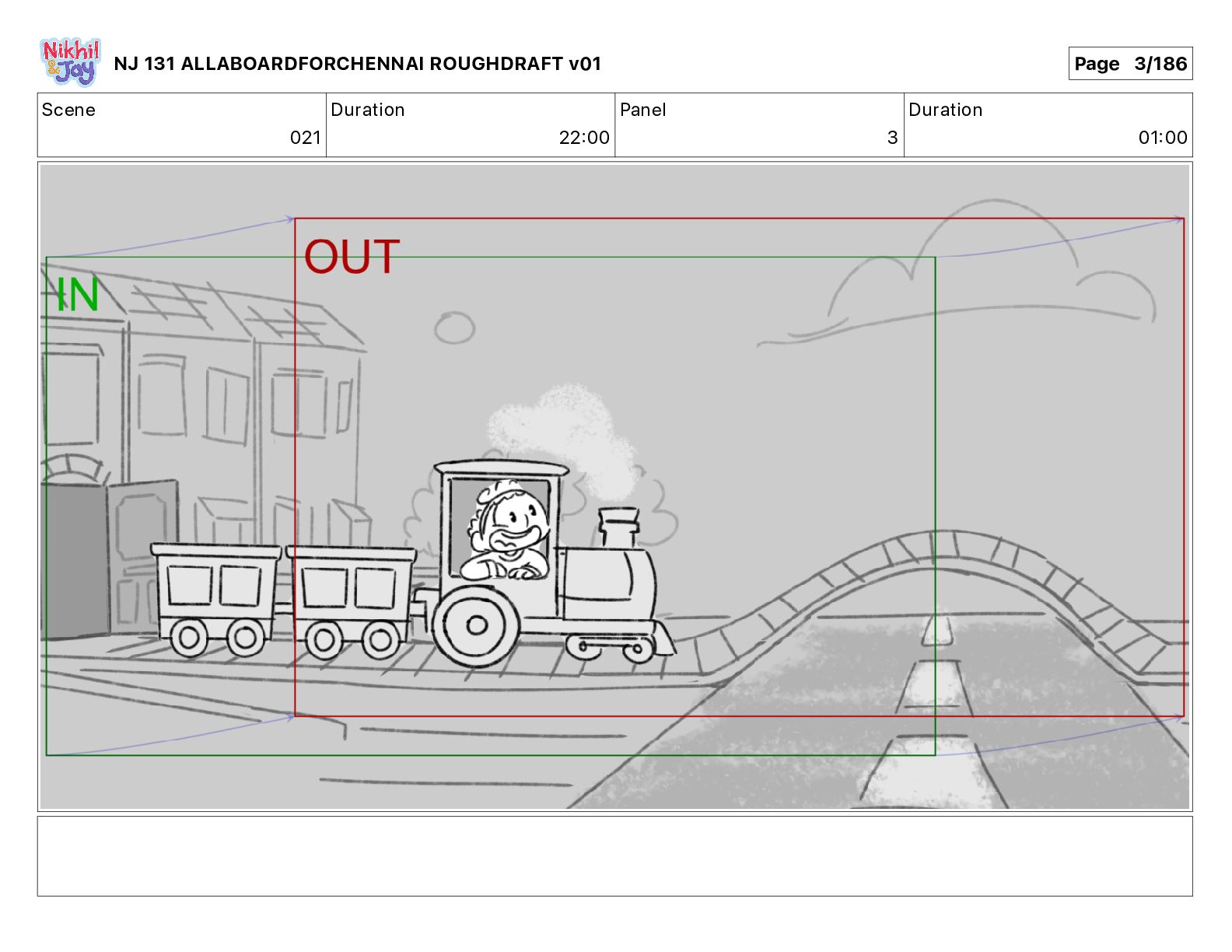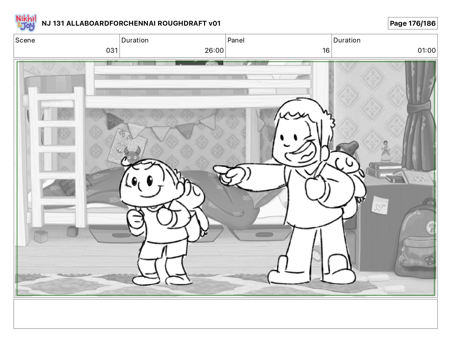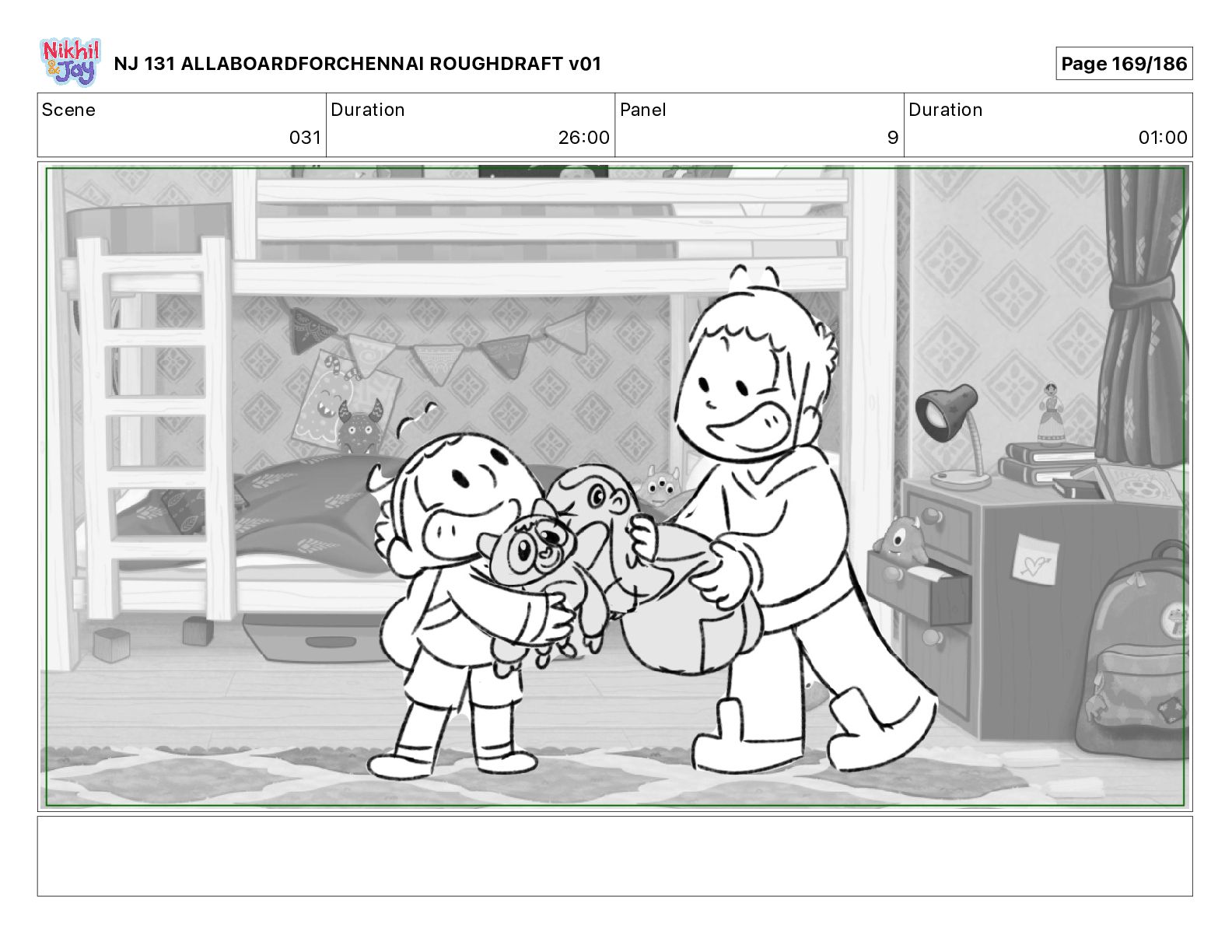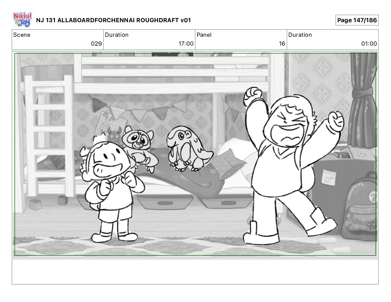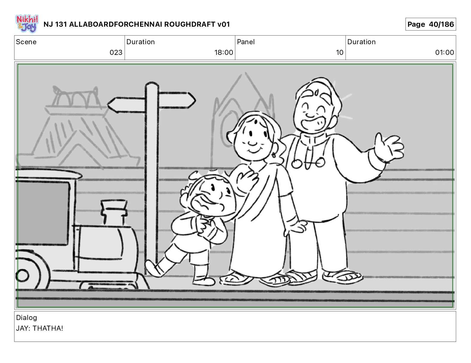 Dialog NIK: The train now arriving at Bunk Bed Station is the 9 45 to Chennai! NJ 131 ALLABOARDFORCHENNAI ROUGHDRAFT v01 Page 145/186