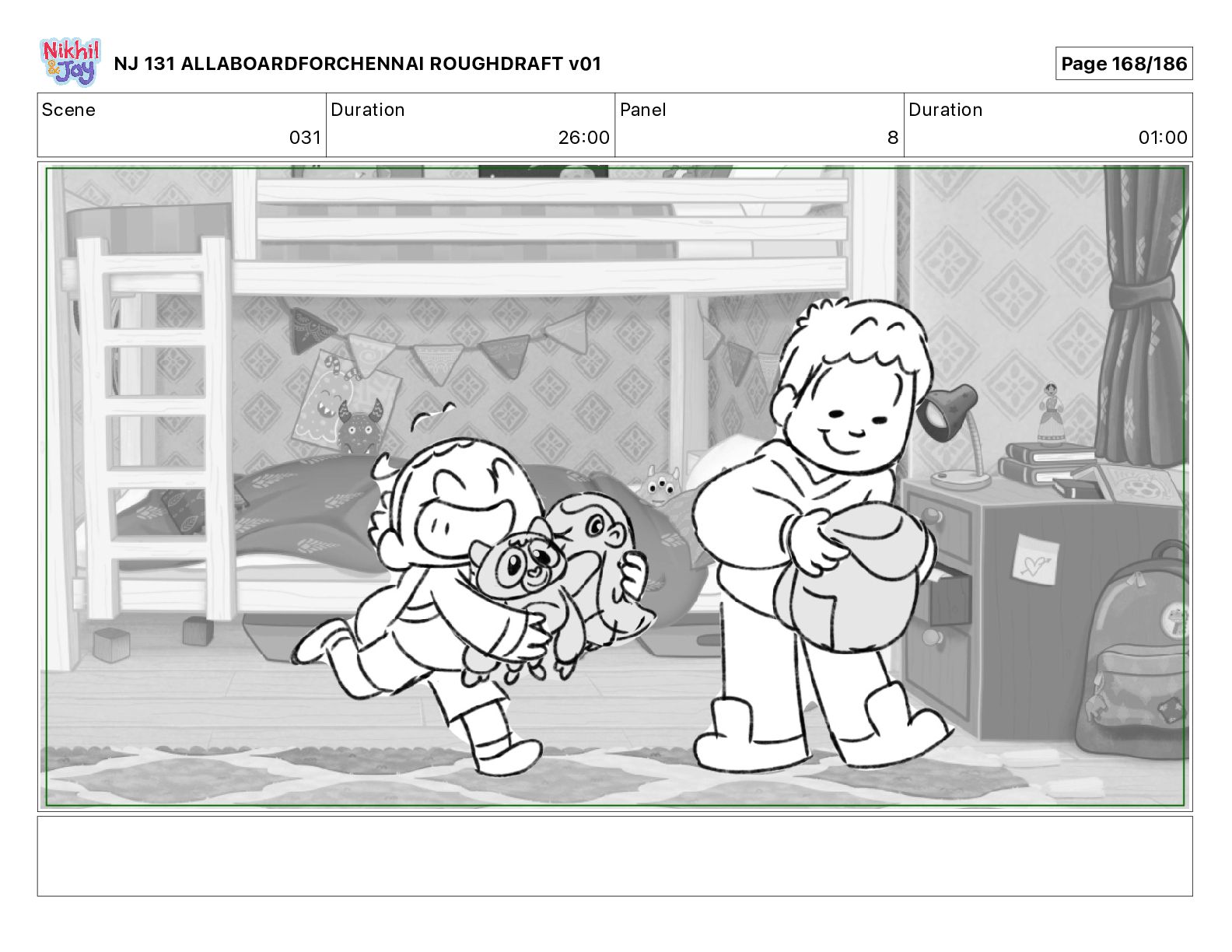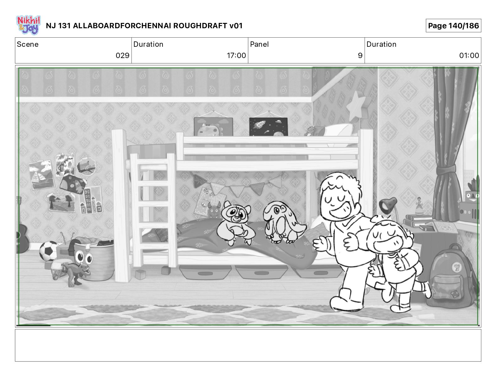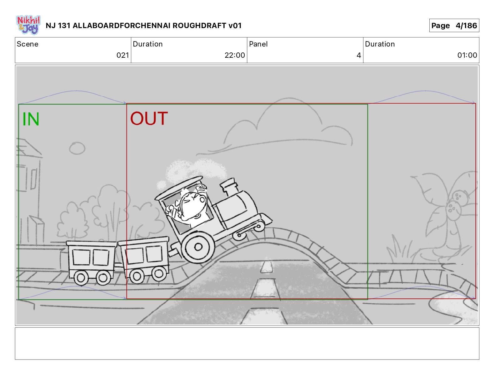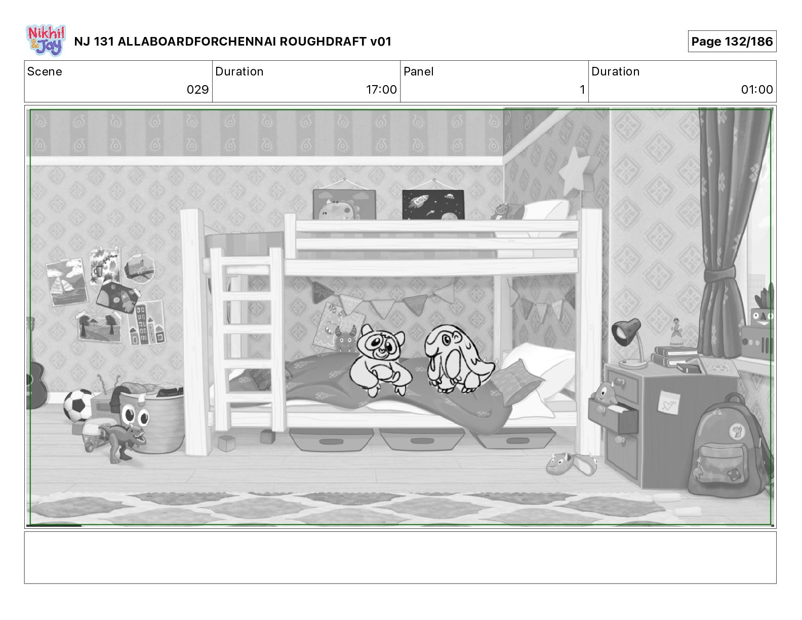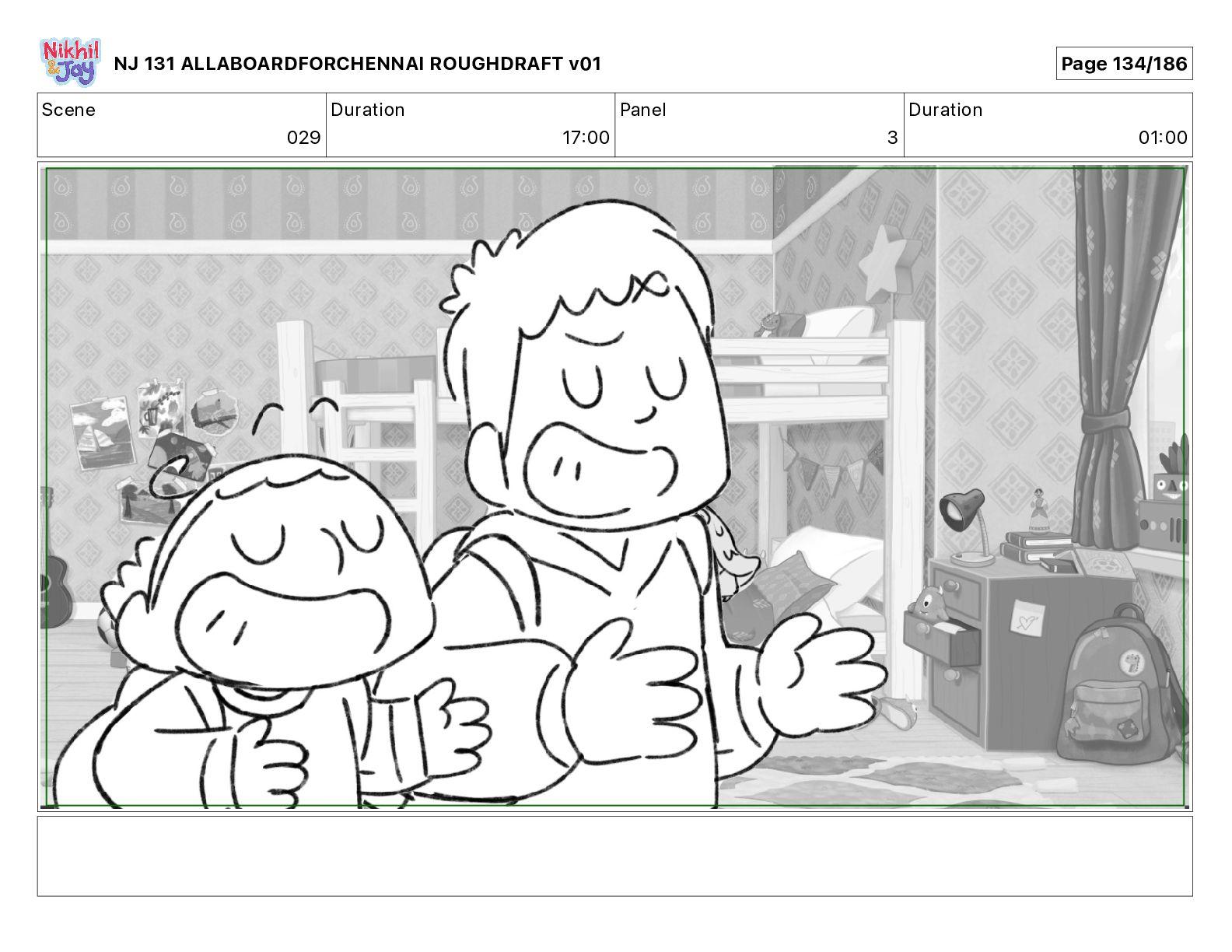 Dialog NIK: The train now arriving at Bunk Bed Station is the 9 45 to Chennai! NJ 131 ALLABOARDFORCHENNAI ROUGHDRAFT v01 Page 145/186
