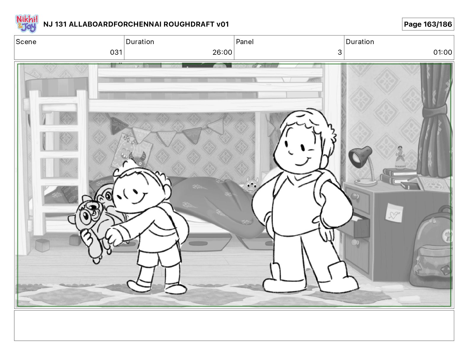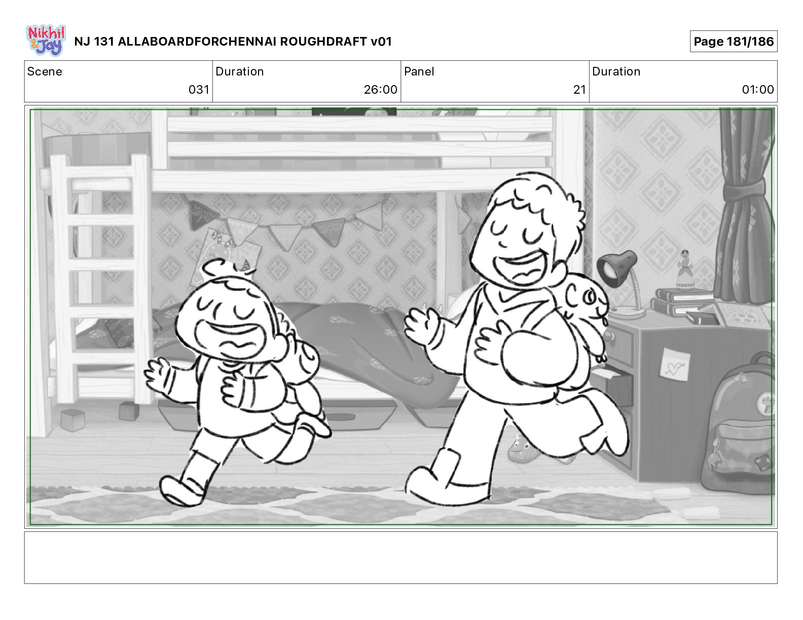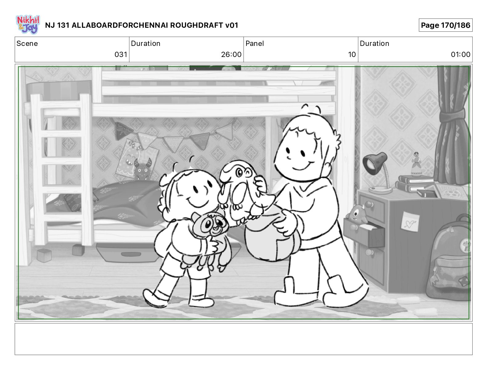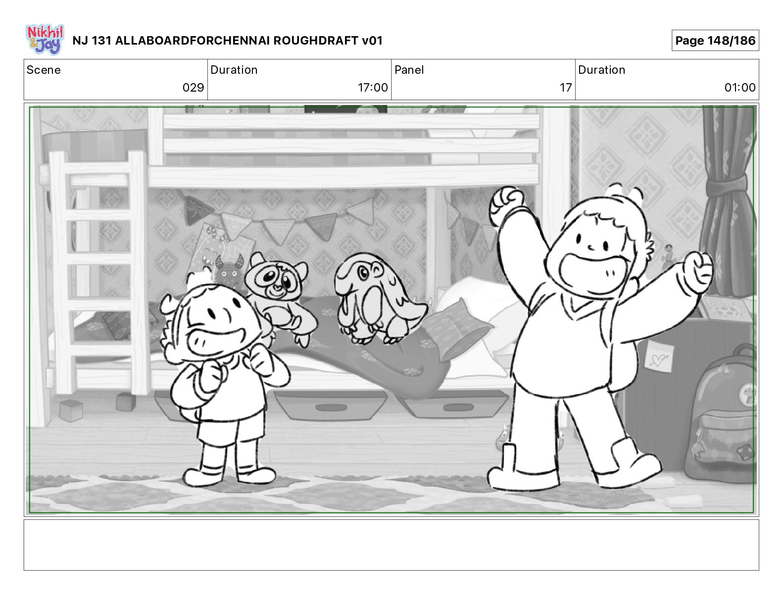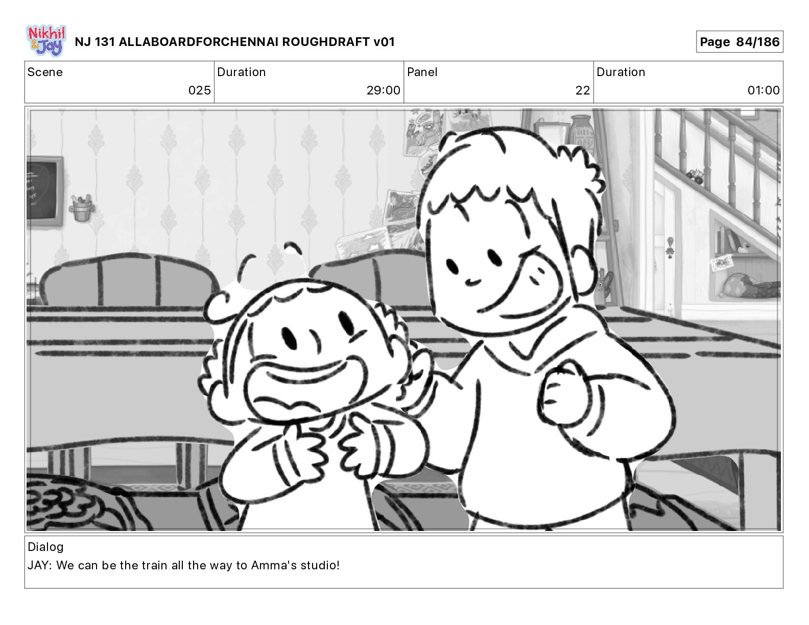 Dialog NIK: The train now arriving at Bunk Bed Station is the 9 45 to Chennai! NJ 131 ALLABOARDFORCHENNAI ROUGHDRAFT v01 Page 145/186