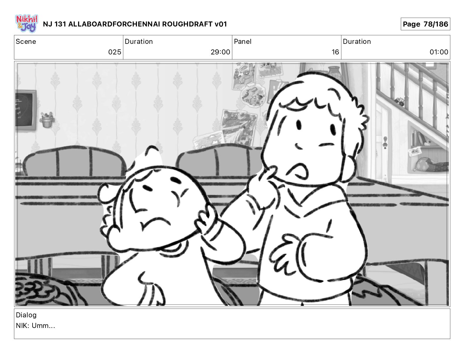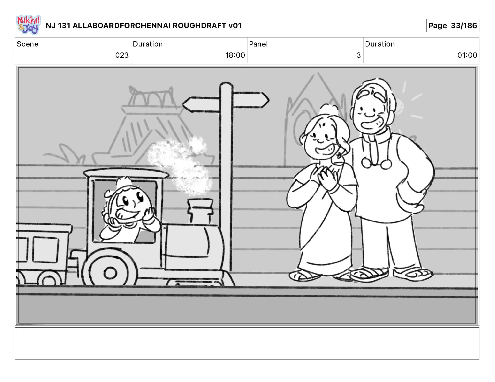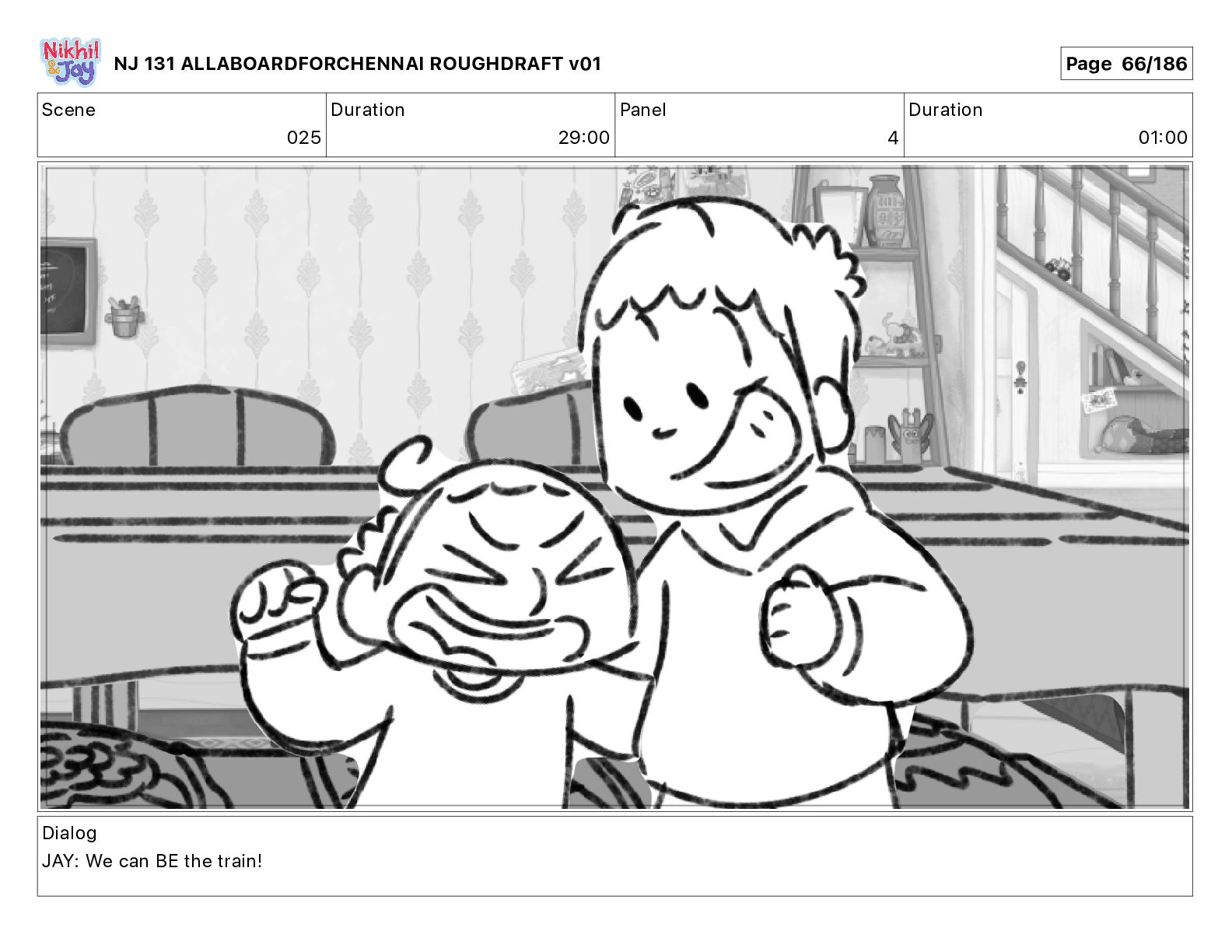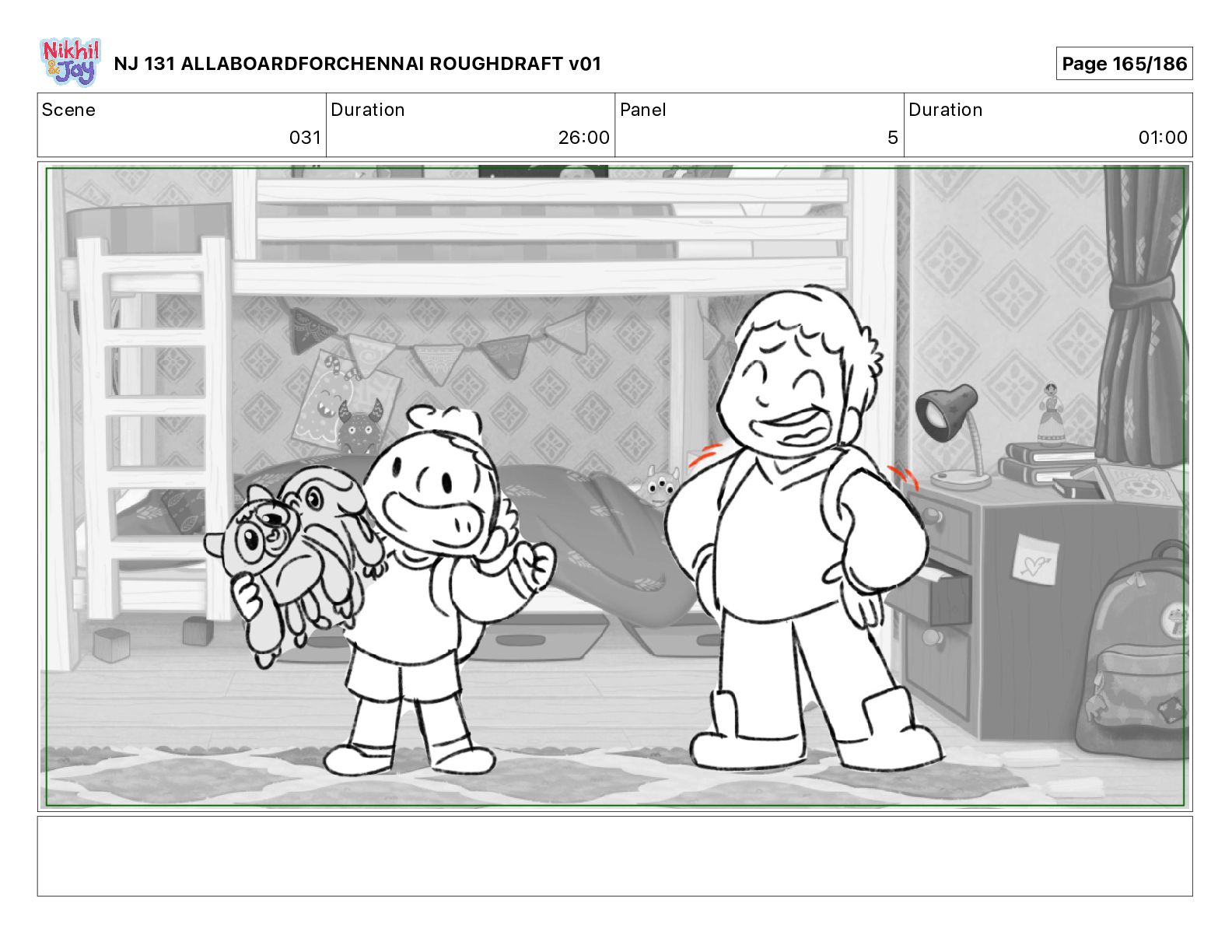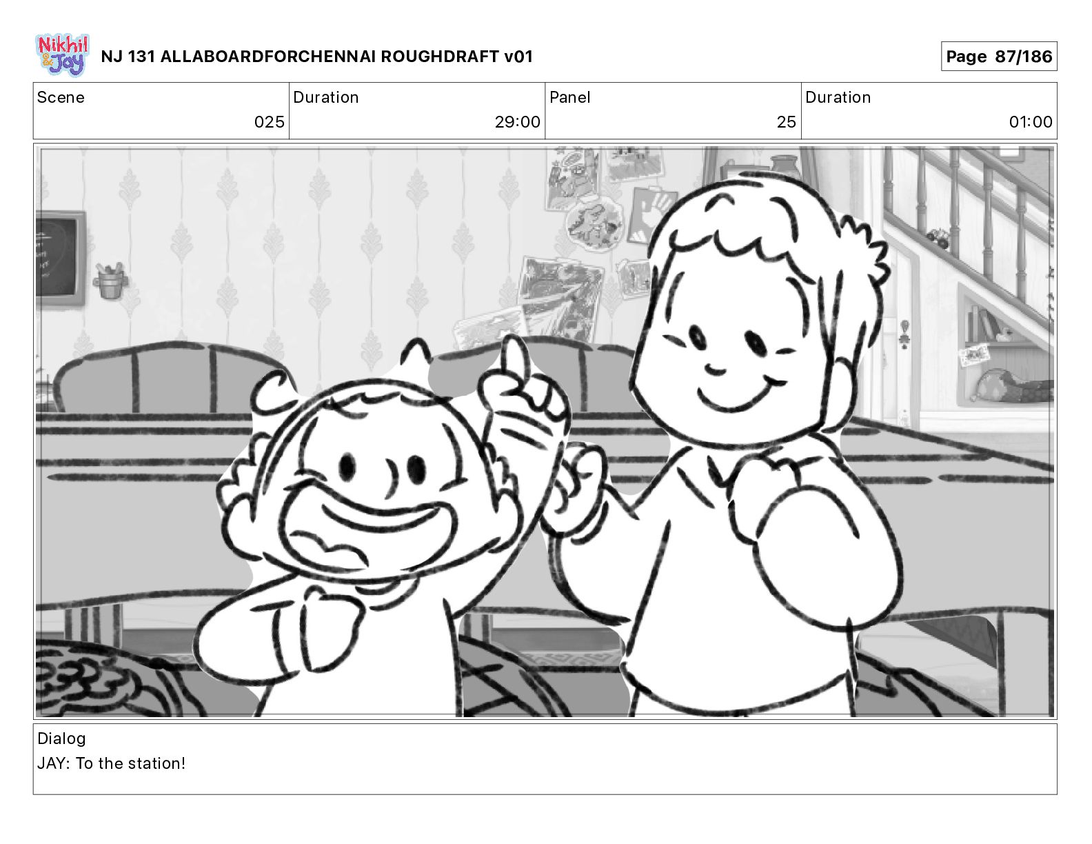 Dialog NIK: The train now arriving at Bunk Bed Station is the 9 45 to Chennai! NJ 131 ALLABOARDFORCHENNAI ROUGHDRAFT v01 Page 145/186