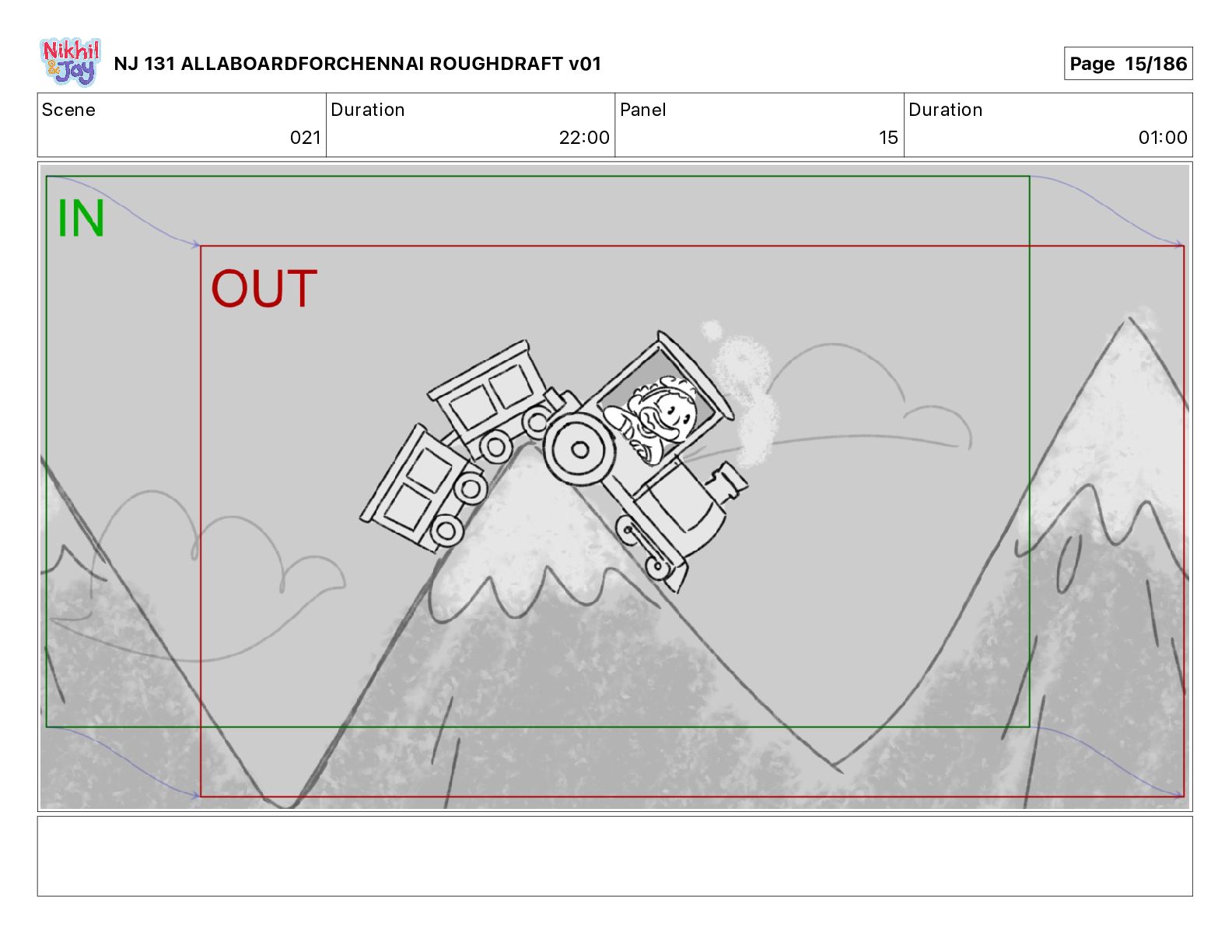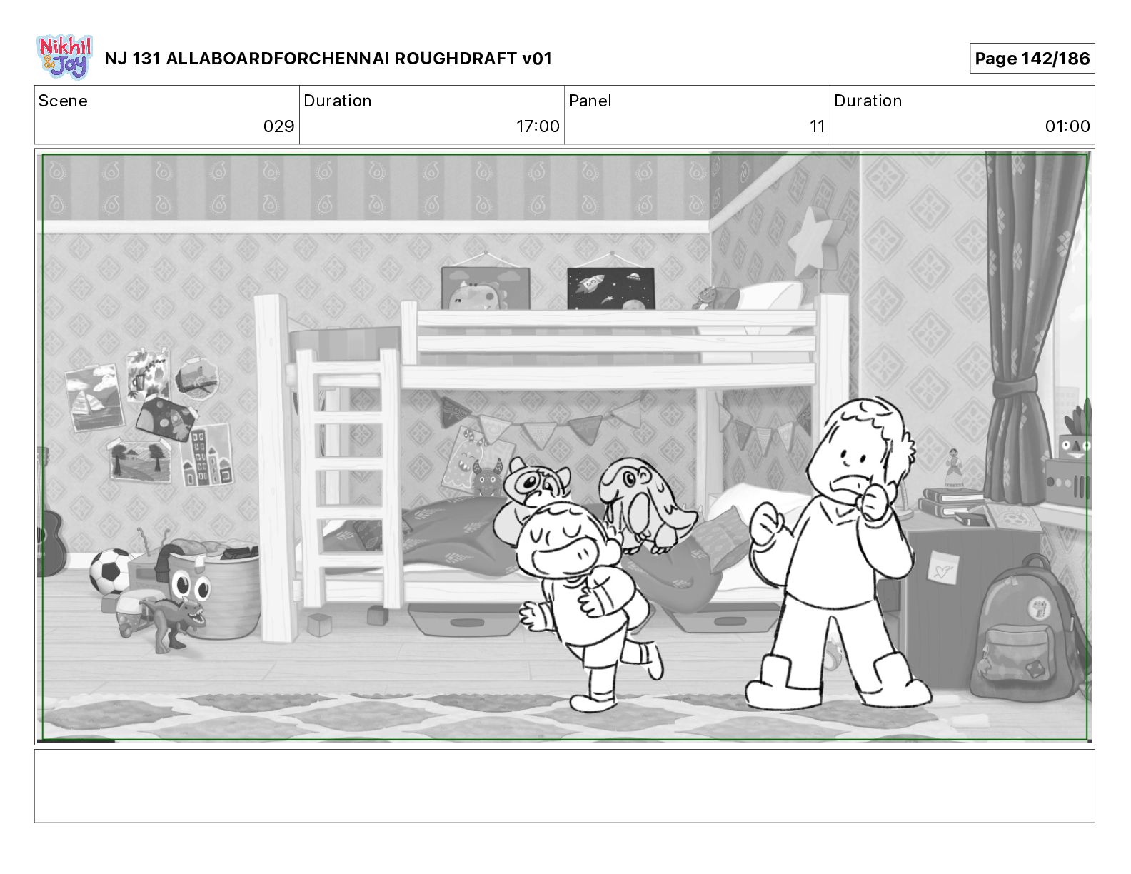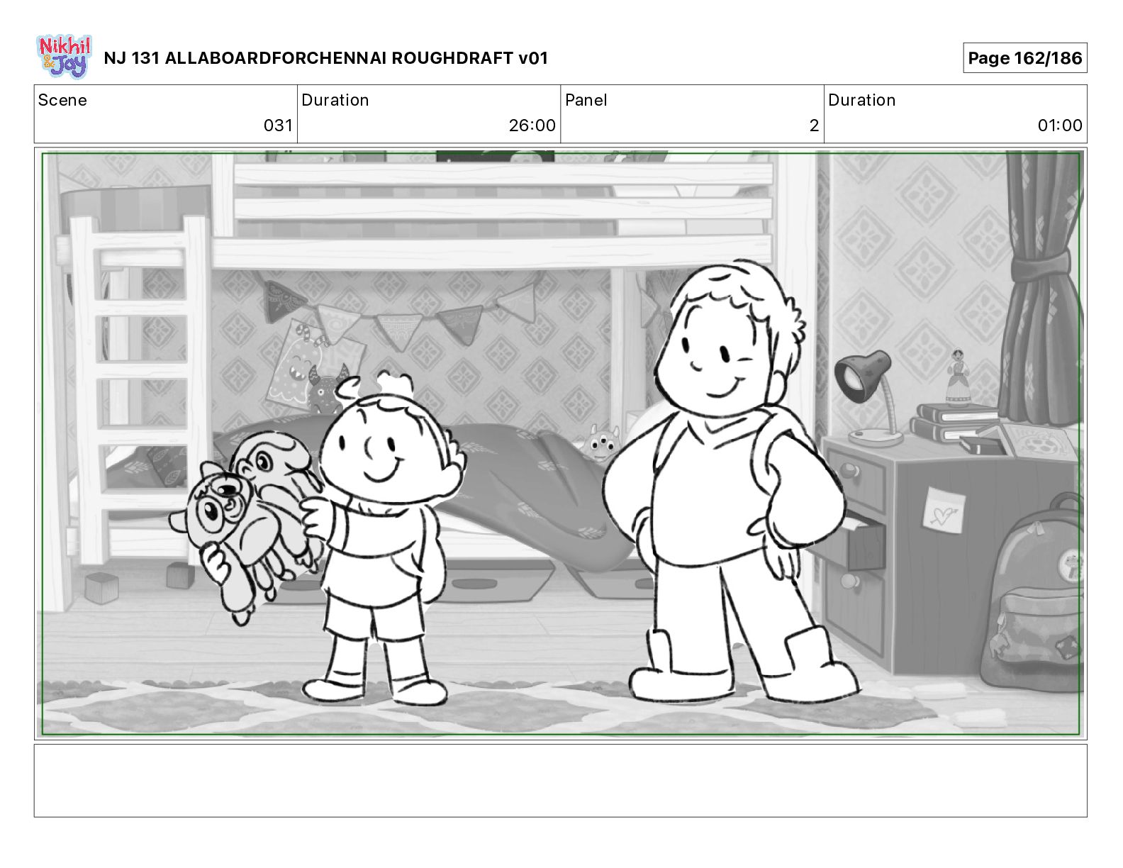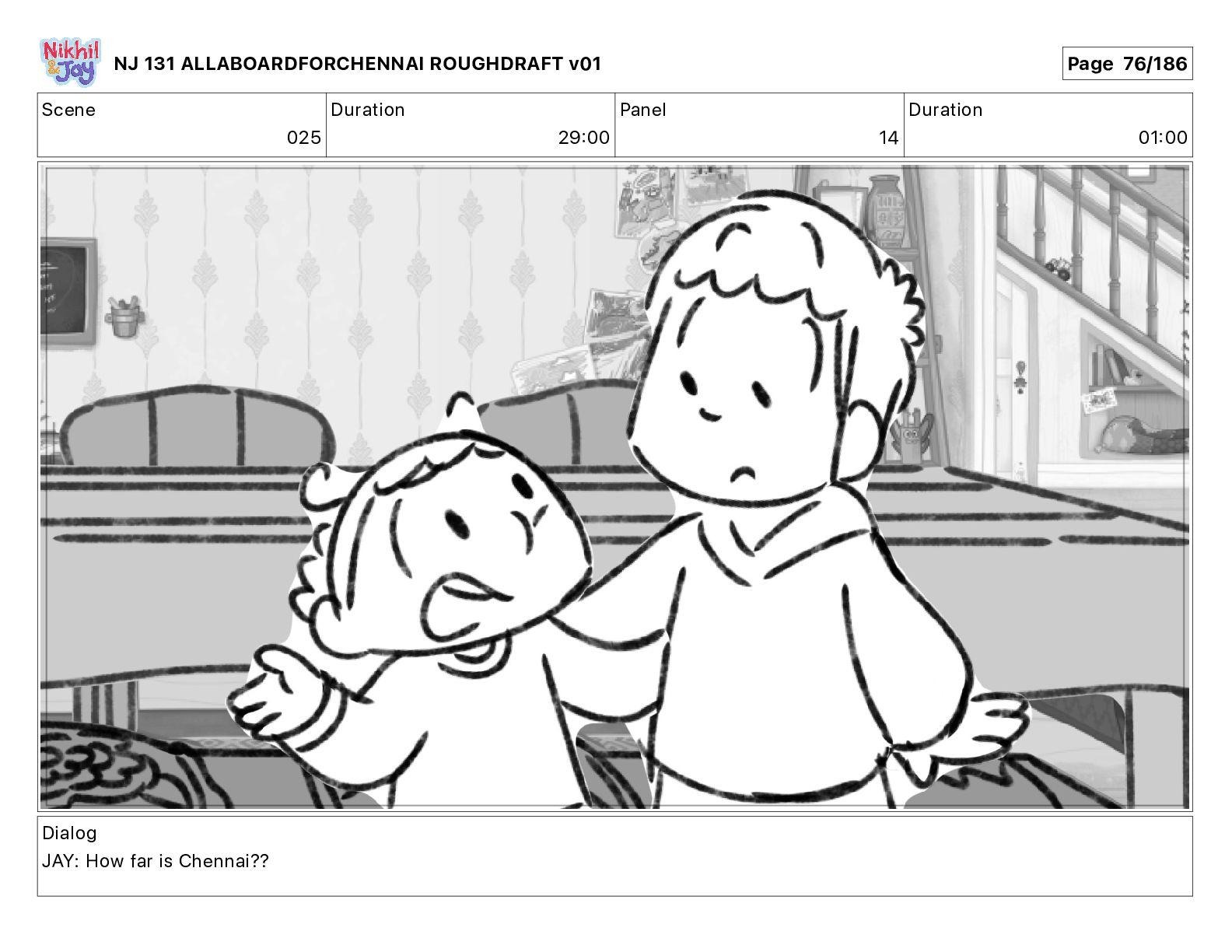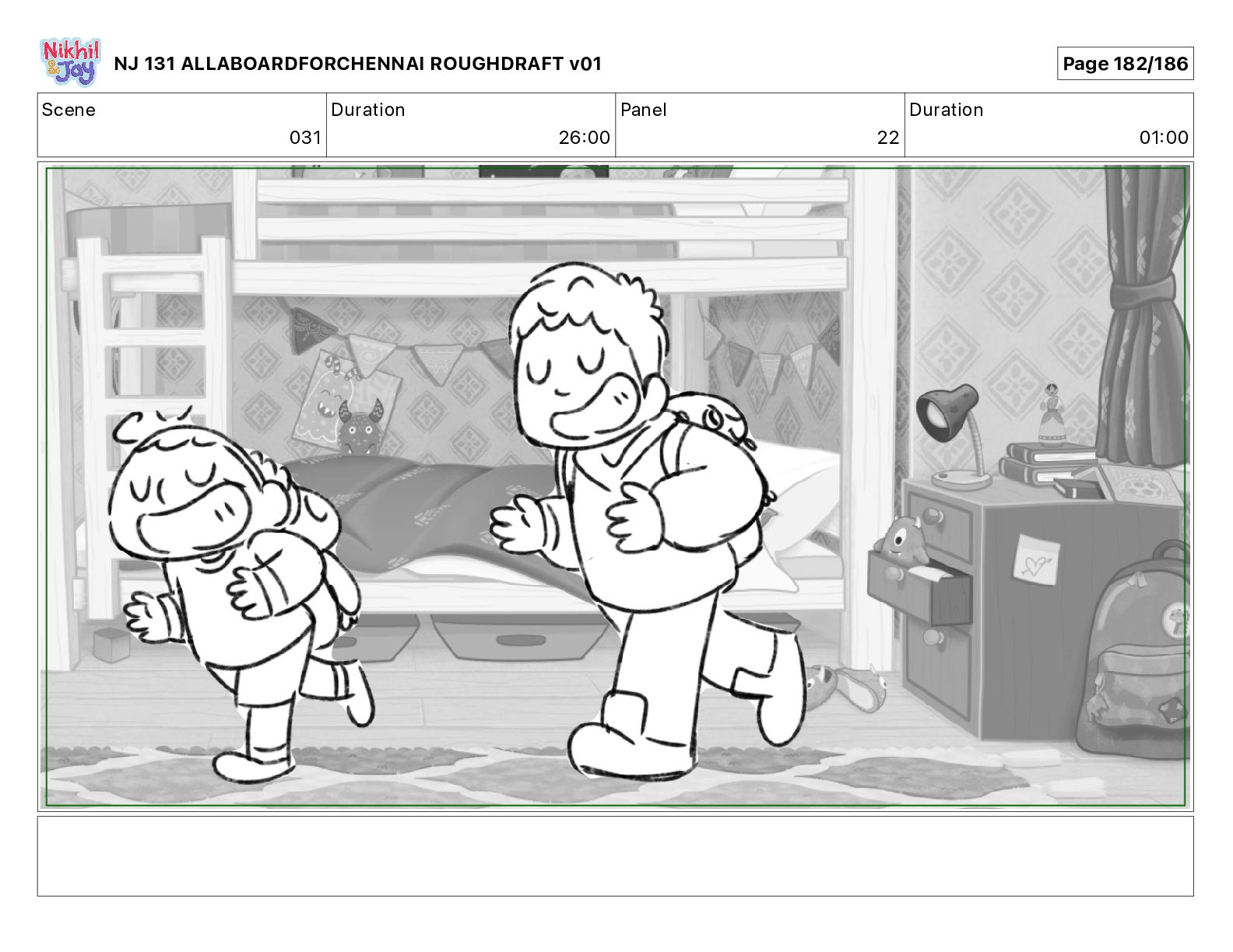 Dialog NIK: The train now arriving at Bunk Bed Station is the 9 45 to Chennai! NJ 131 ALLABOARDFORCHENNAI ROUGHDRAFT v01 Page 145/186