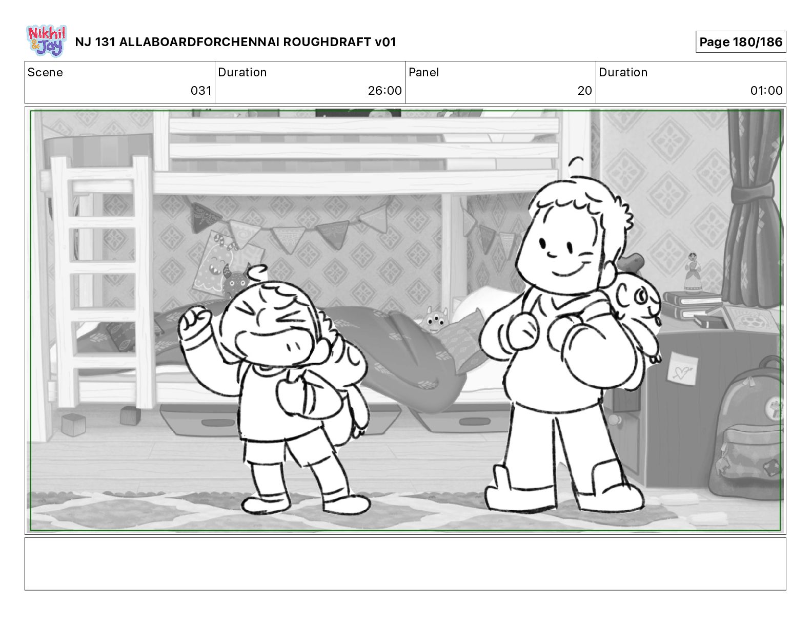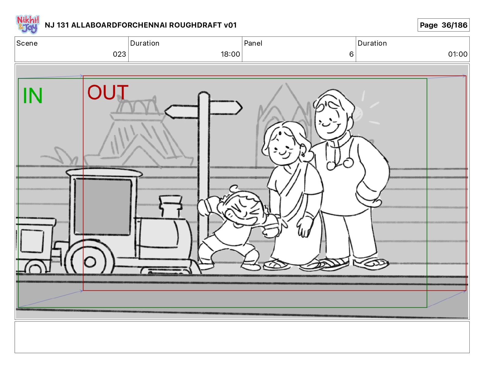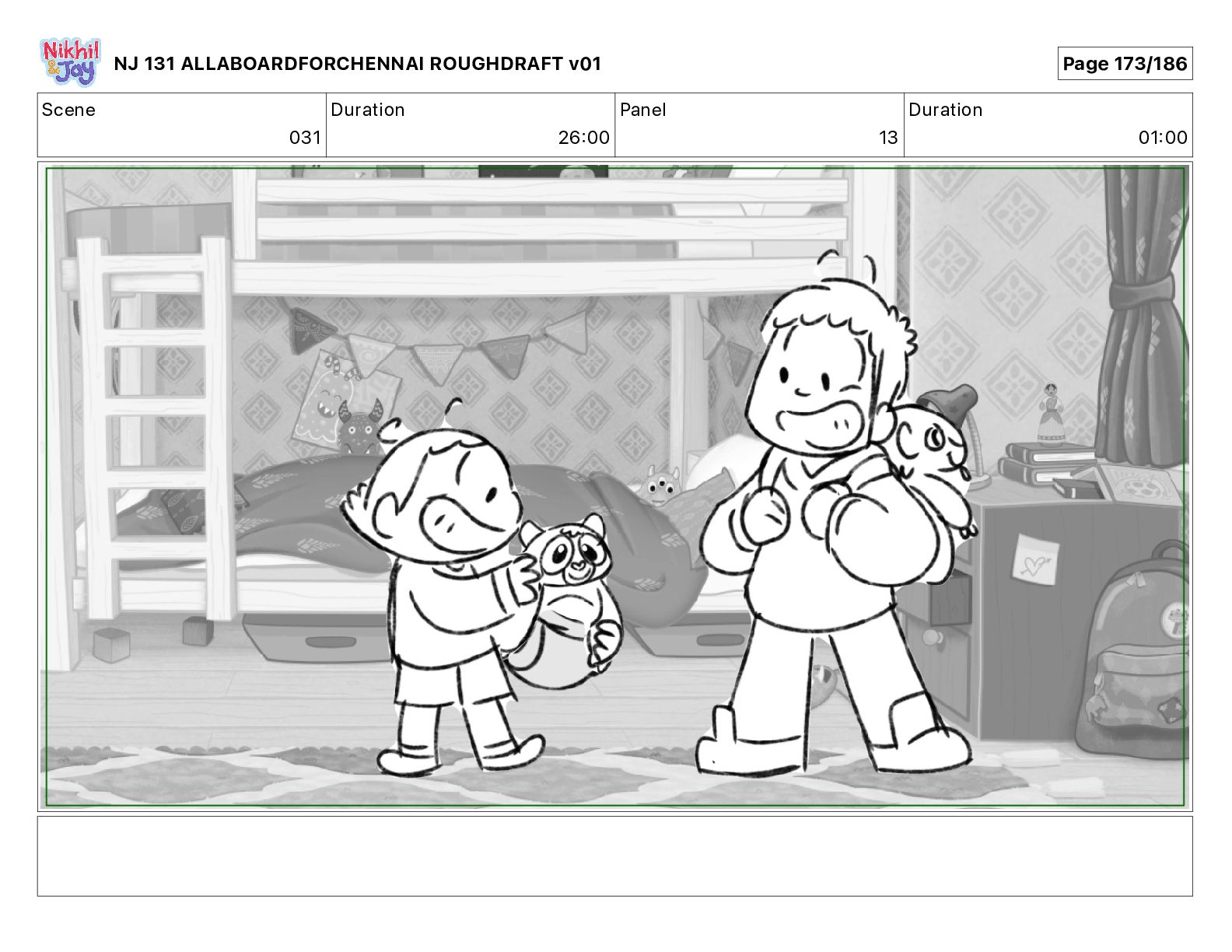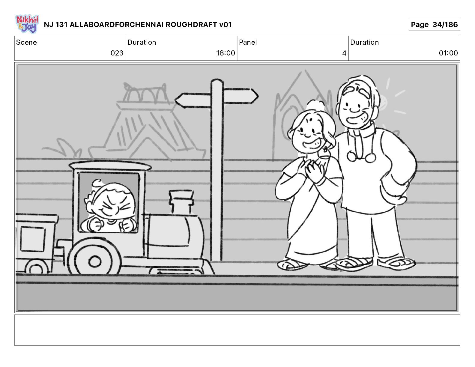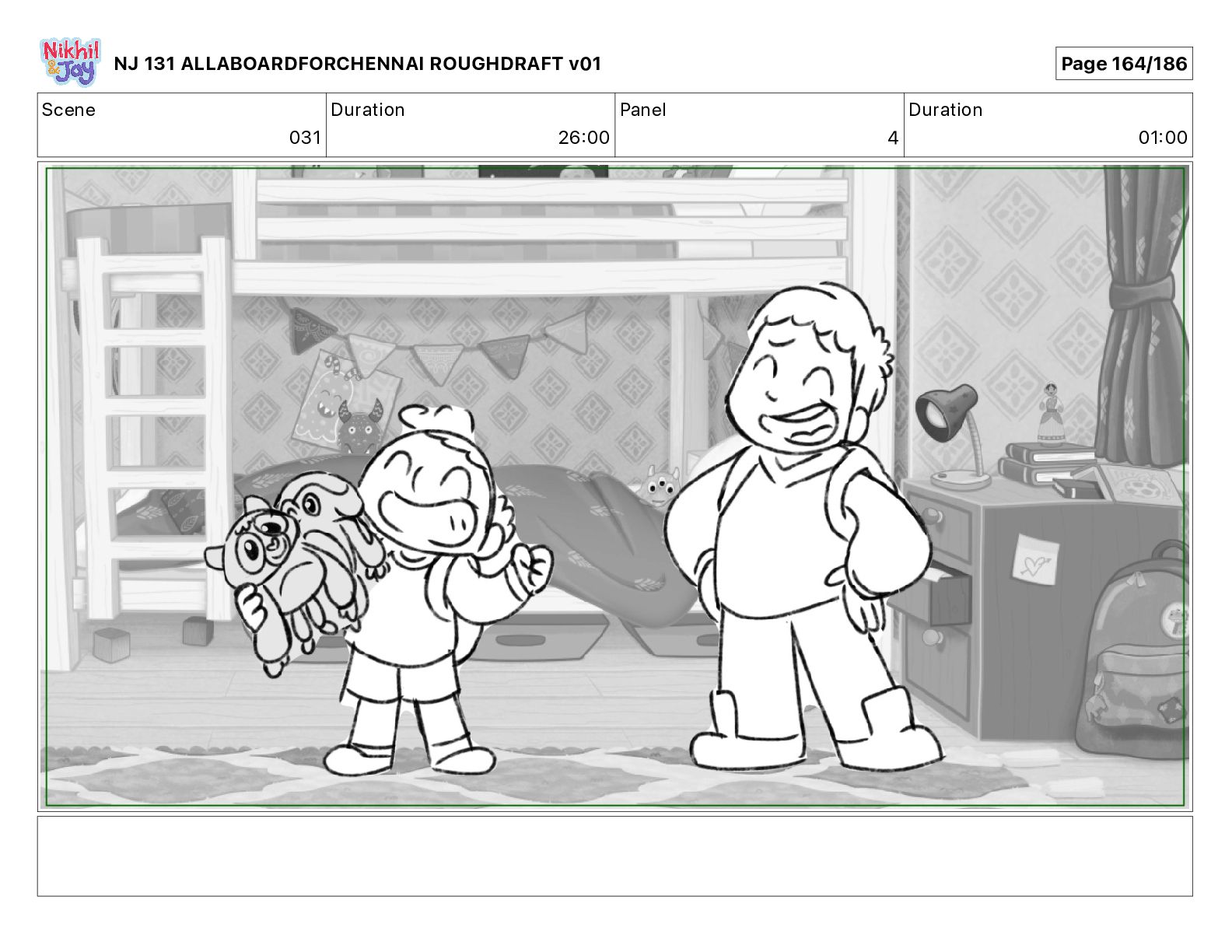 Dialog NIK: The train now arriving at Bunk Bed Station is the 9 45 to Chennai! NJ 131 ALLABOARDFORCHENNAI ROUGHDRAFT v01 Page 145/186