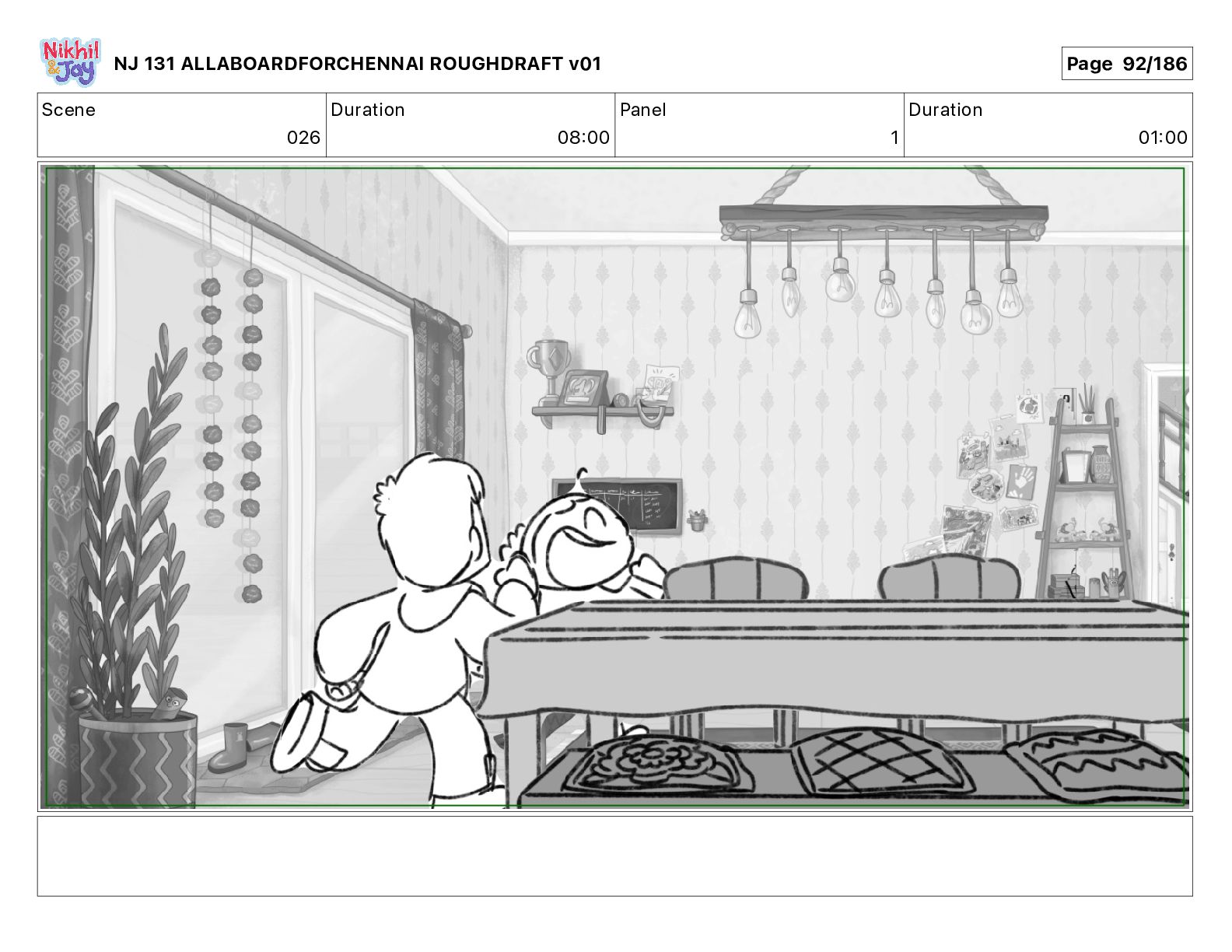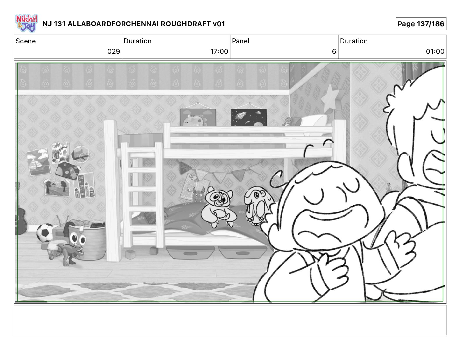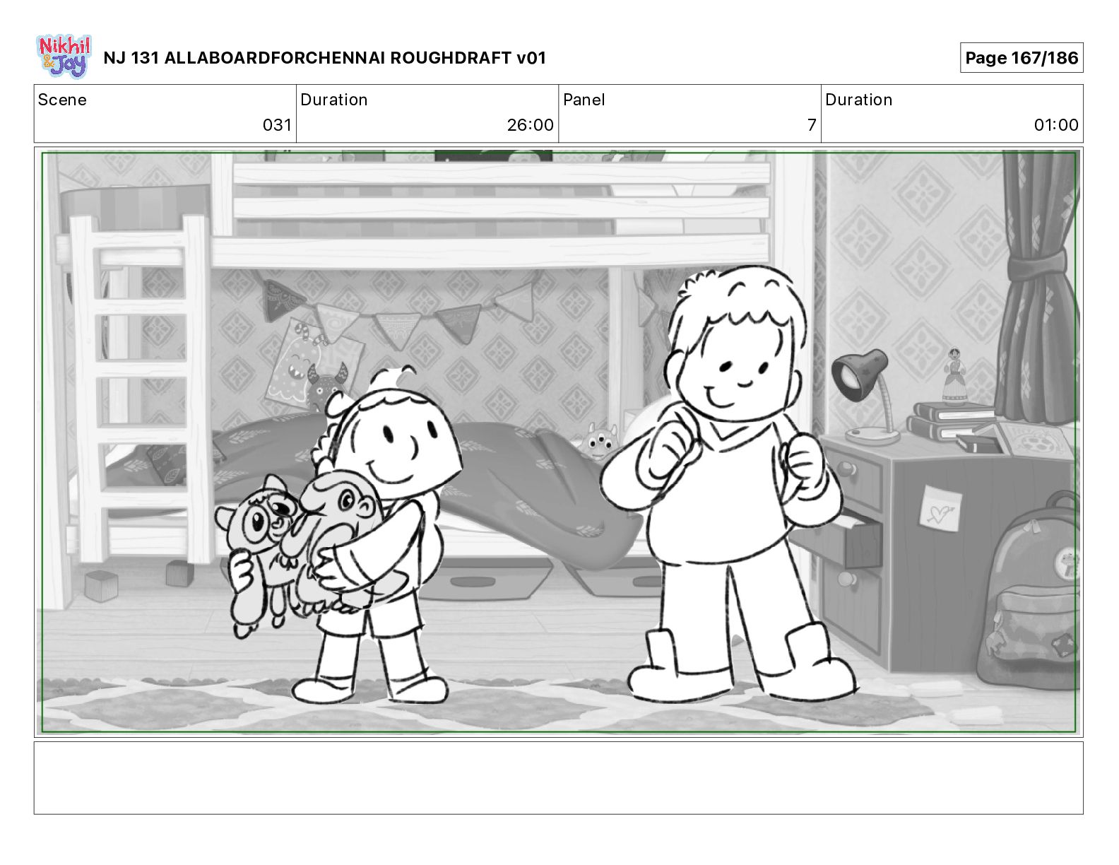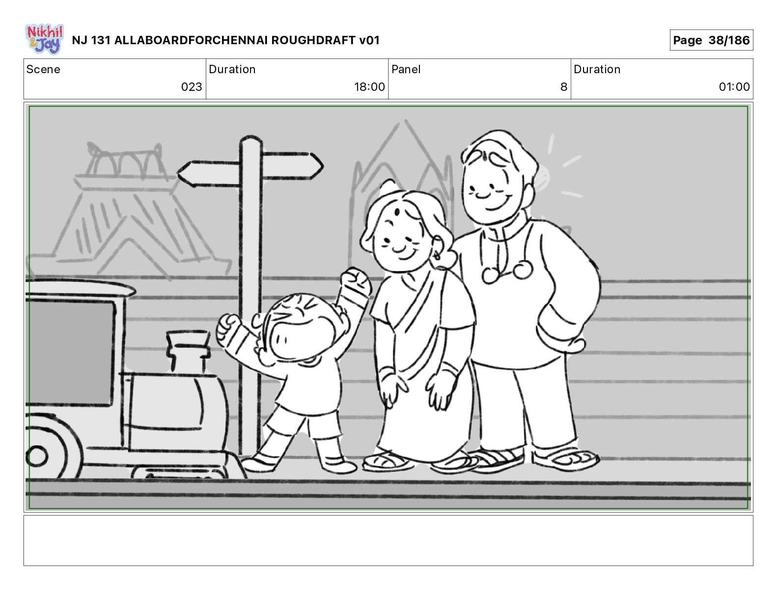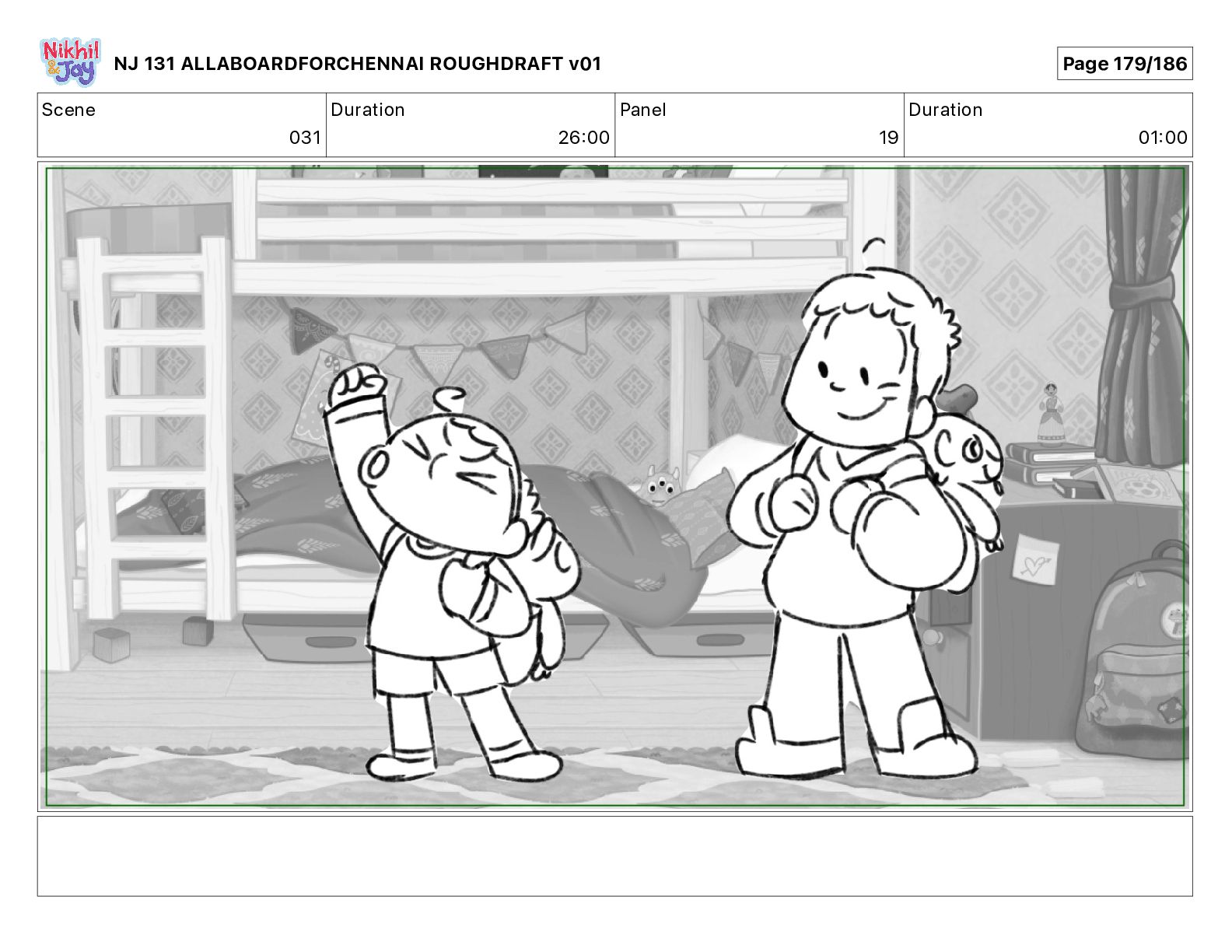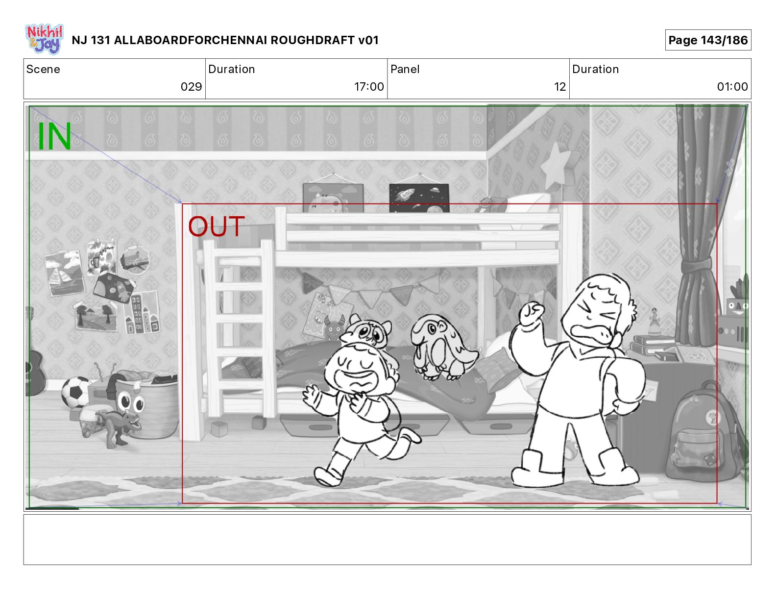 Dialog NIK: The train now arriving at Bunk Bed Station is the 9 45 to Chennai! NJ 131 ALLABOARDFORCHENNAI ROUGHDRAFT v01 Page 145/186