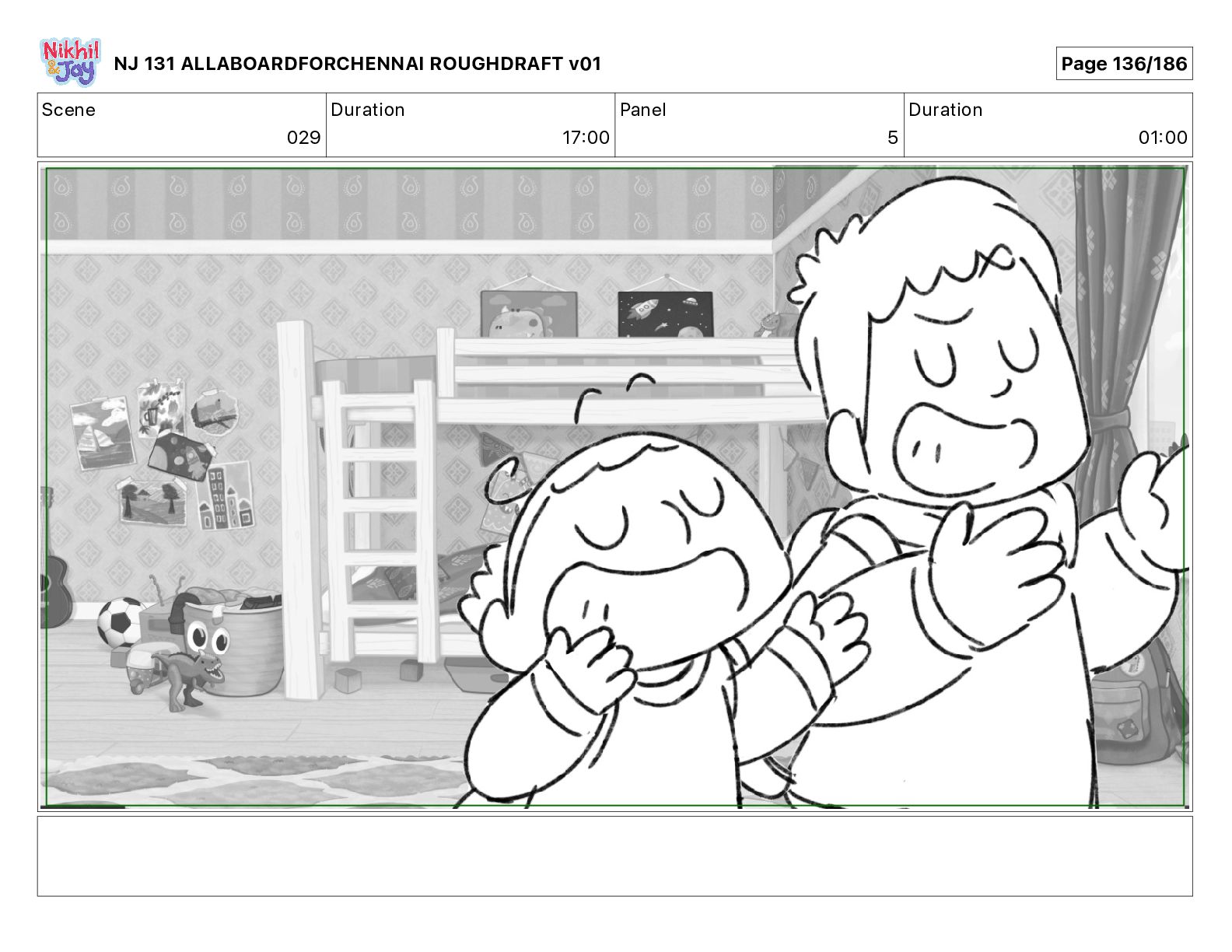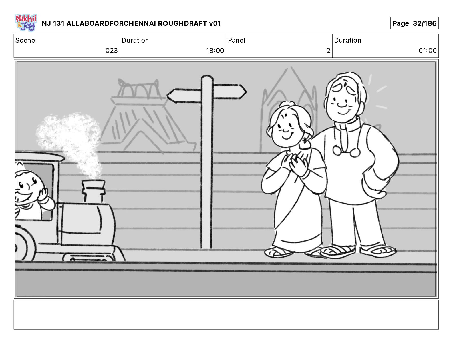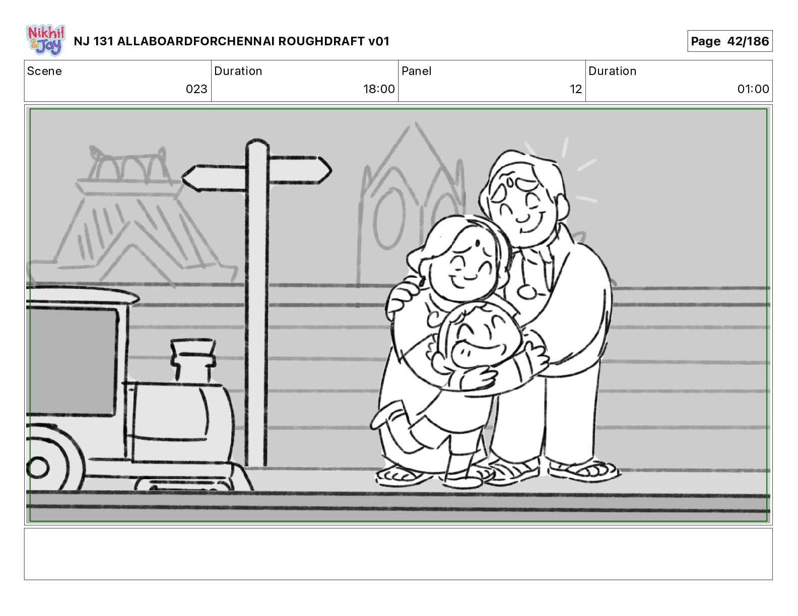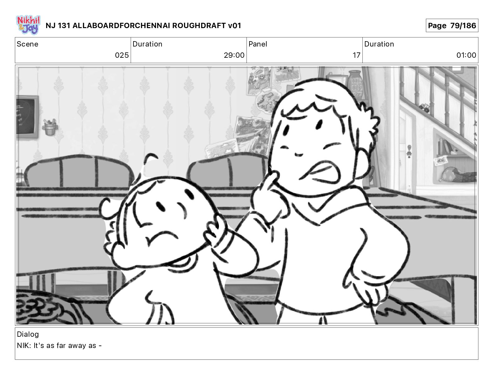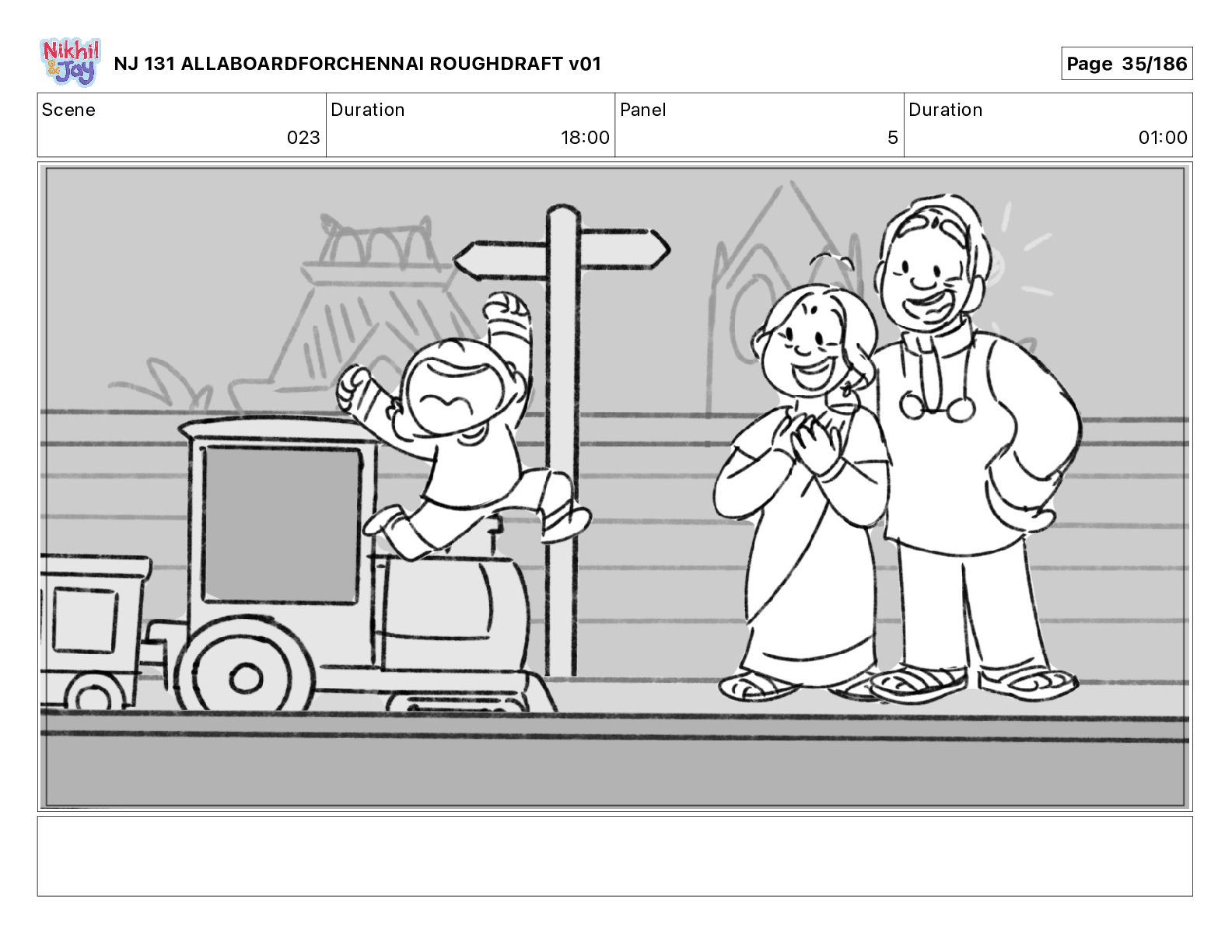 Dialog NIK: The train now arriving at Bunk Bed Station is the 9 45 to Chennai! NJ 131 ALLABOARDFORCHENNAI ROUGHDRAFT v01 Page 145/186