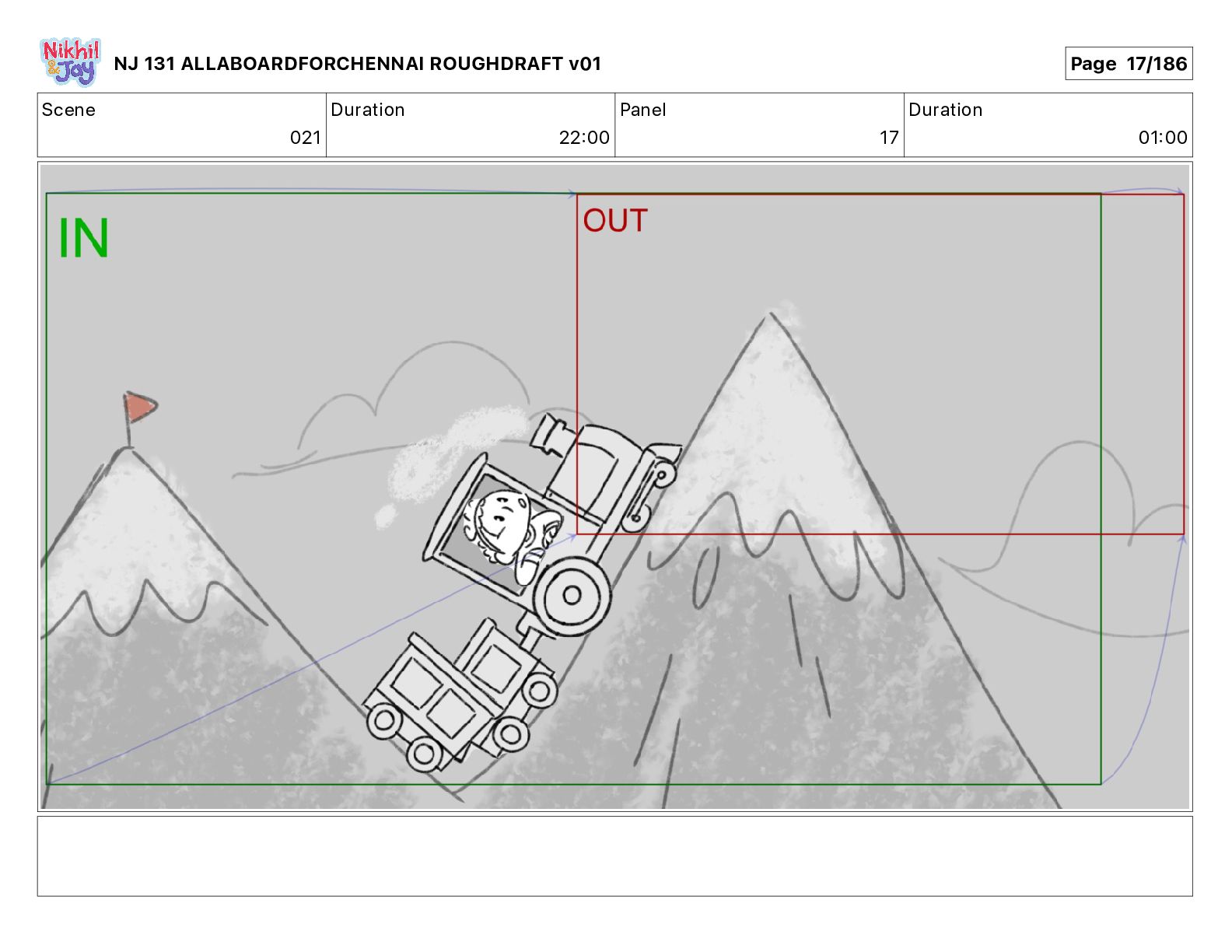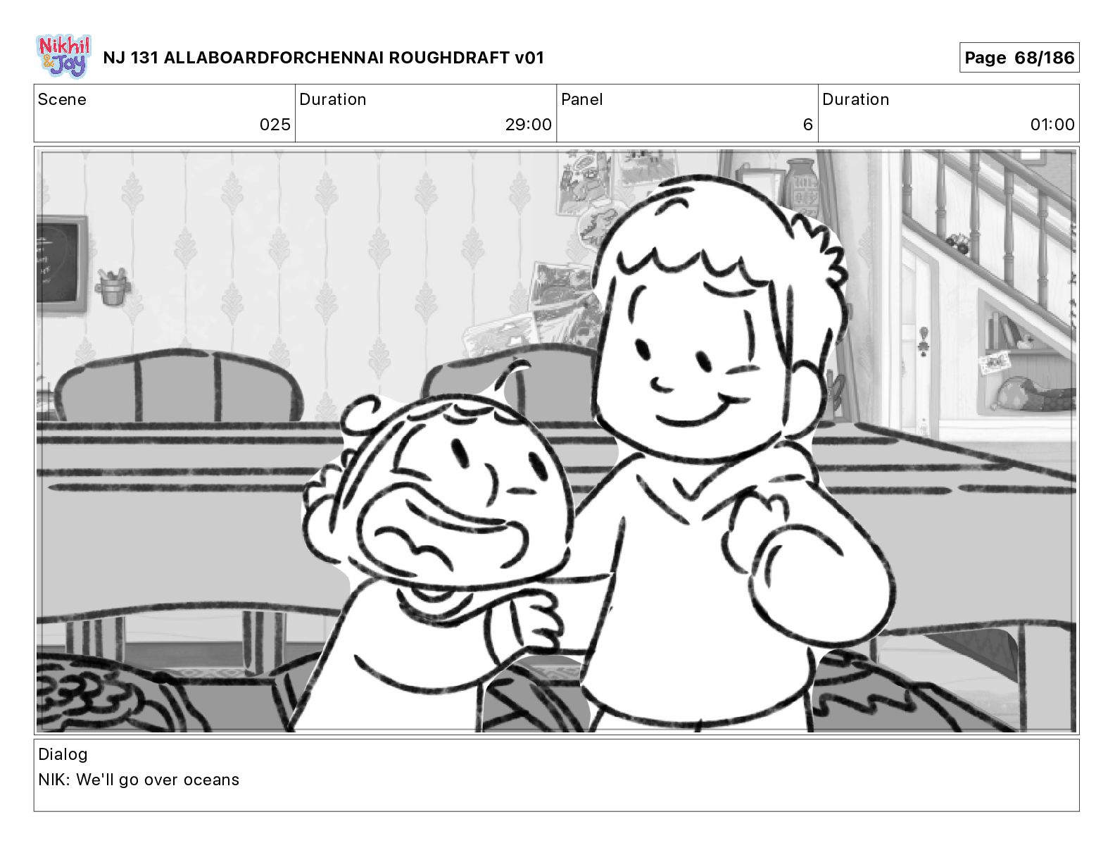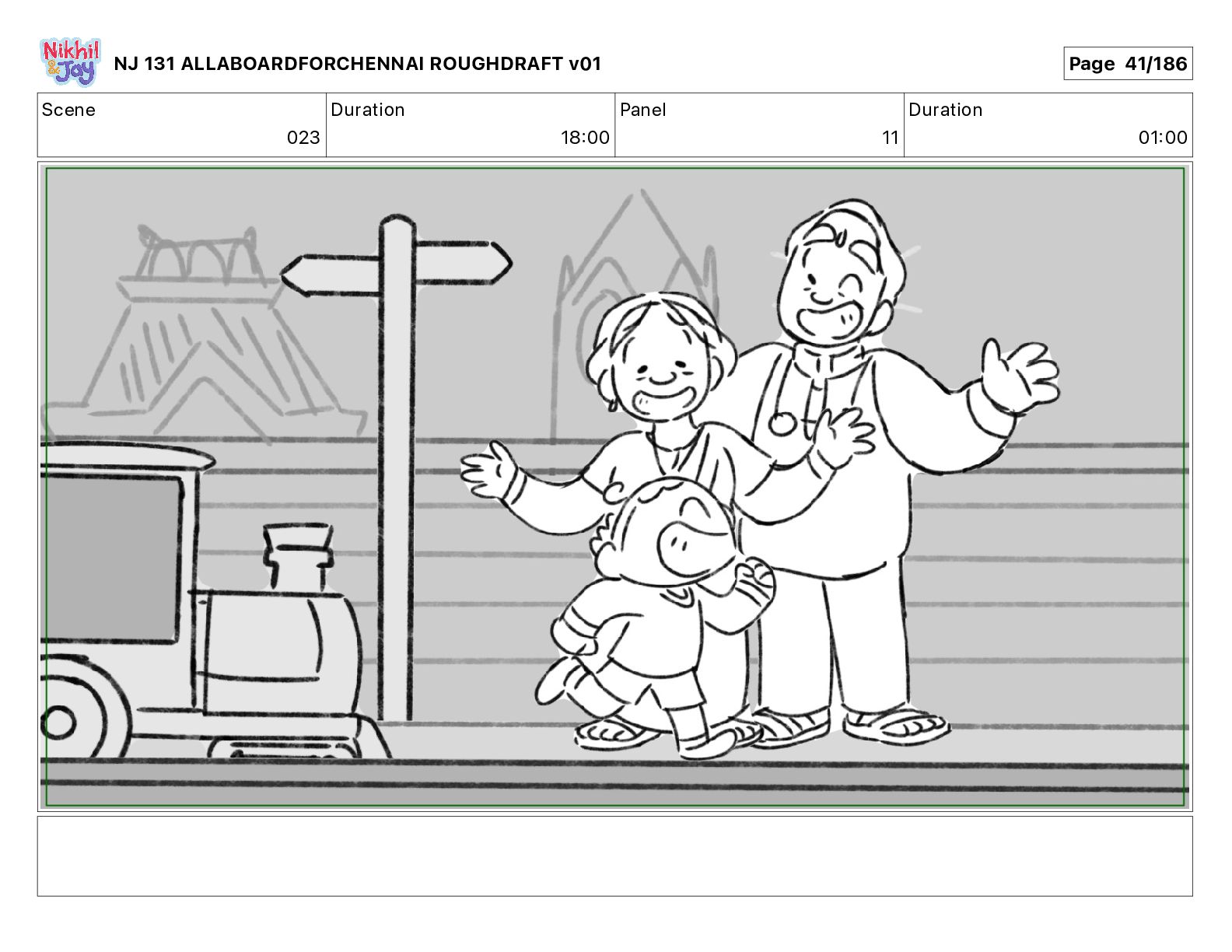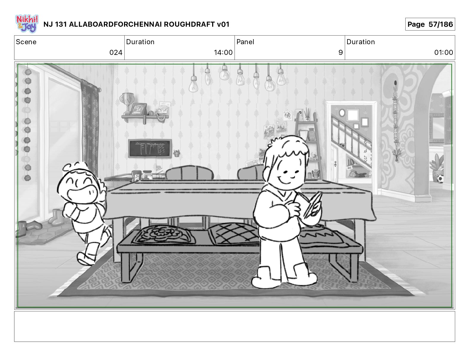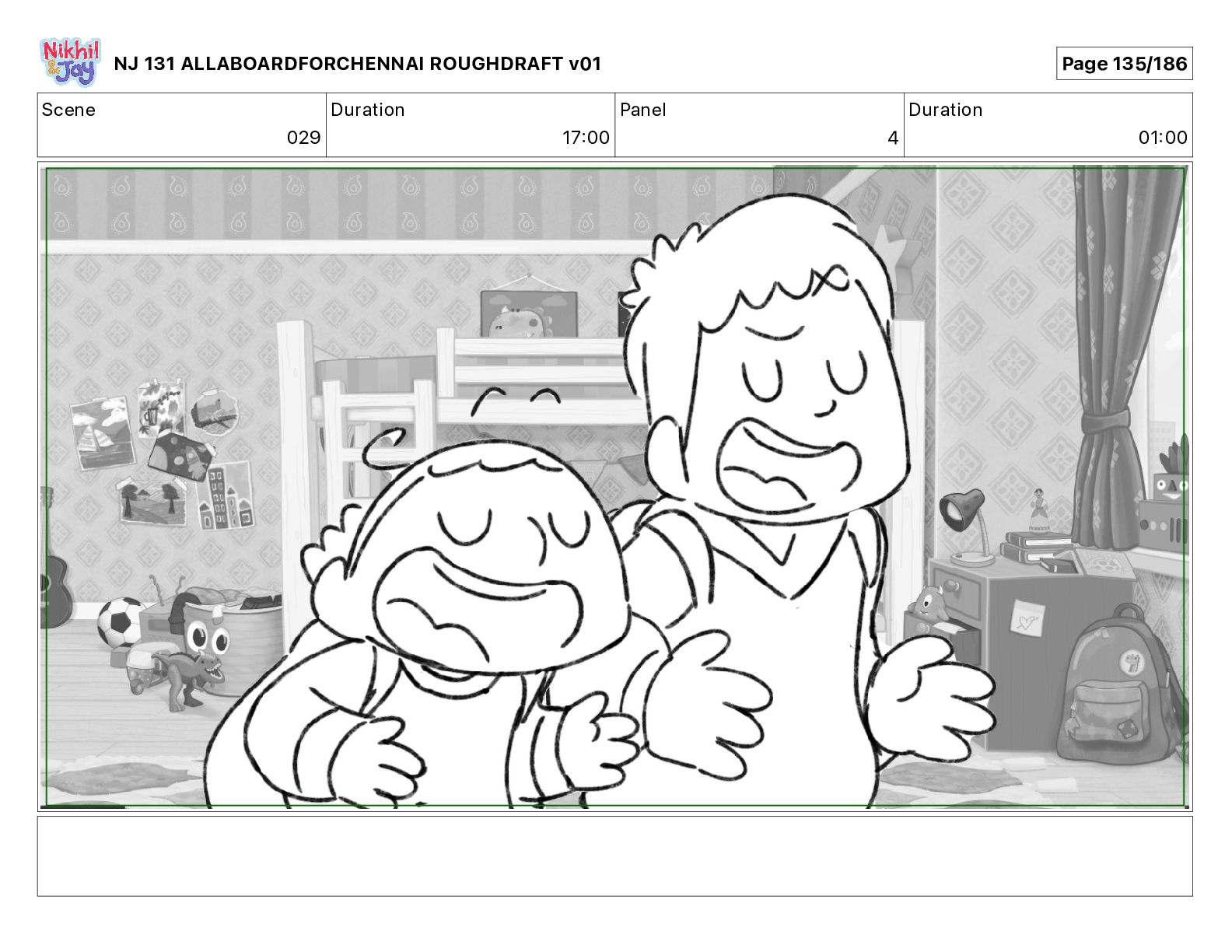 Dialog NIK: The train now arriving at Bunk Bed Station is the 9 45 to Chennai! NJ 131 ALLABOARDFORCHENNAI ROUGHDRAFT v01 Page 145/186