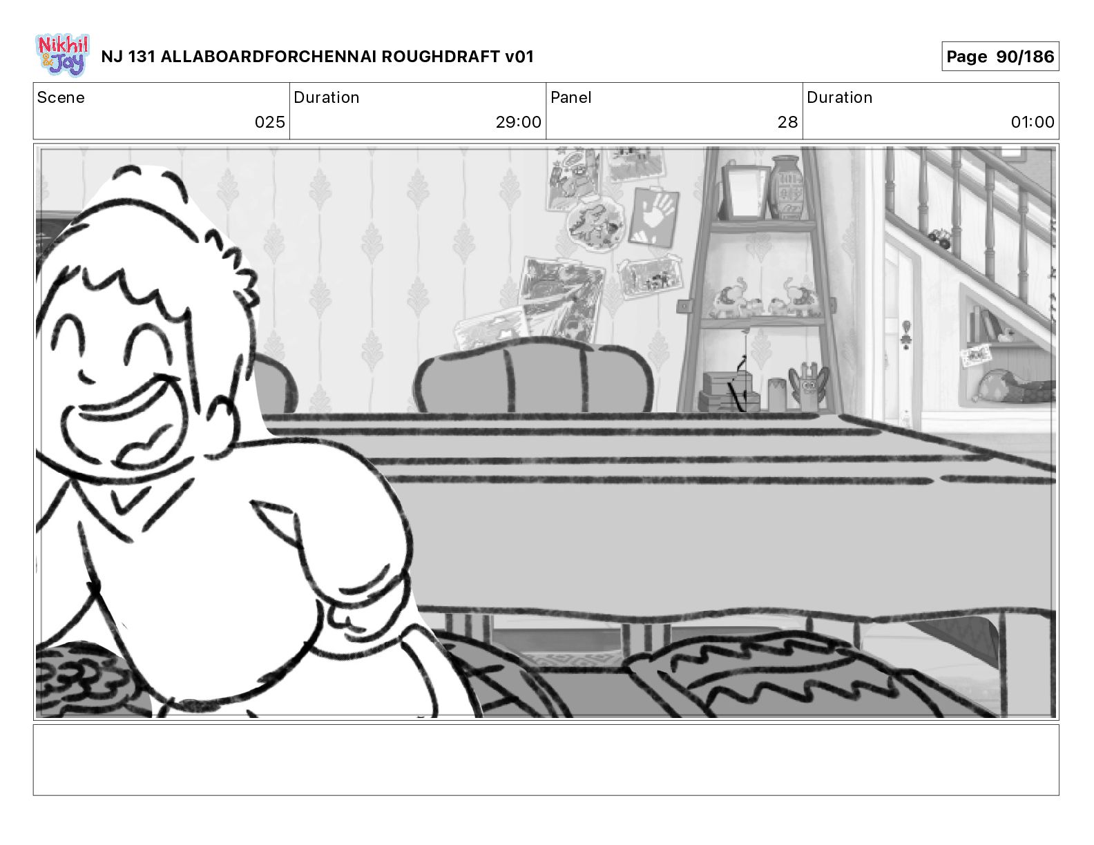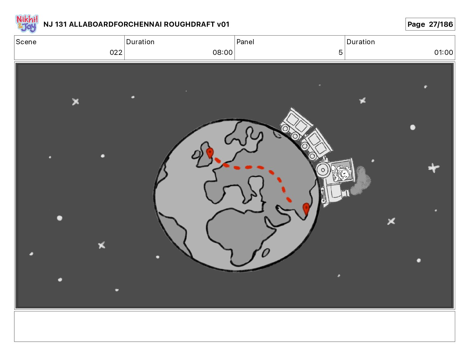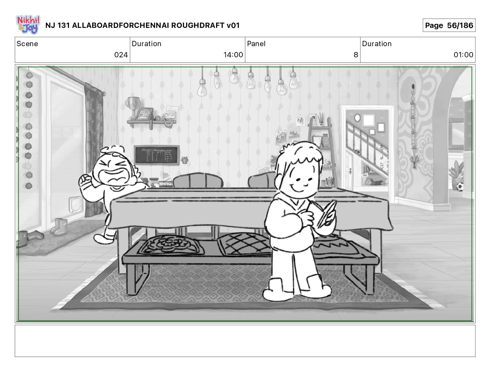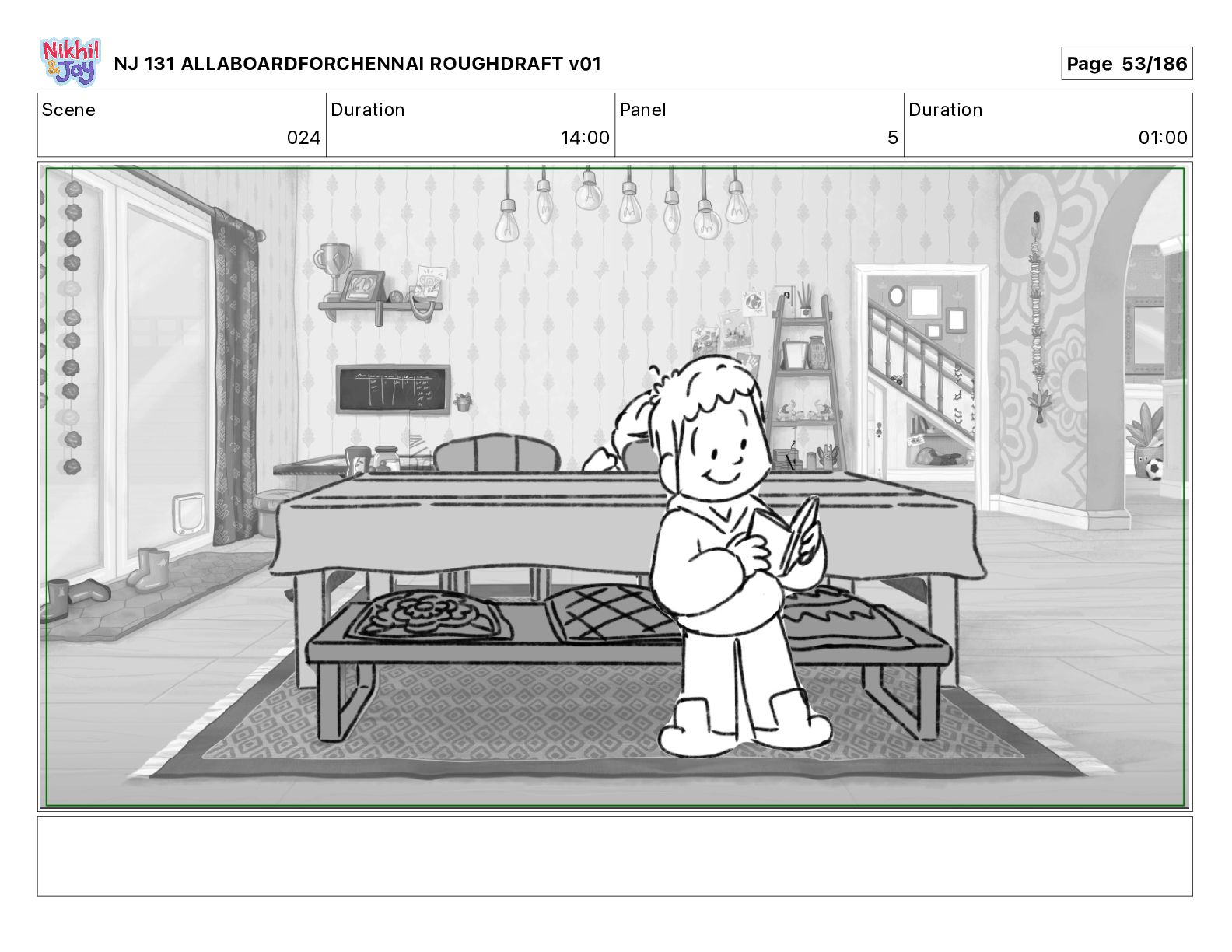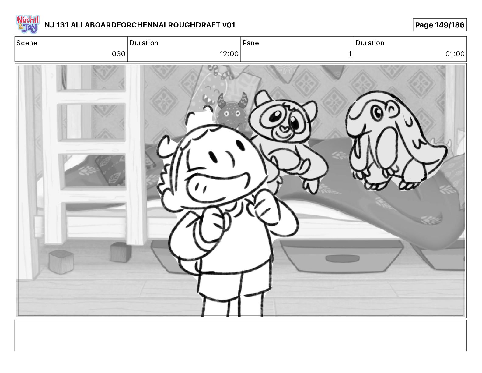 Dialog NIK: The train now arriving at Bunk Bed Station is the 9 45 to Chennai! NJ 131 ALLABOARDFORCHENNAI ROUGHDRAFT v01 Page 145/186