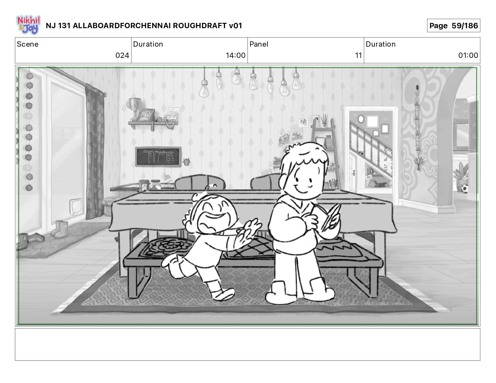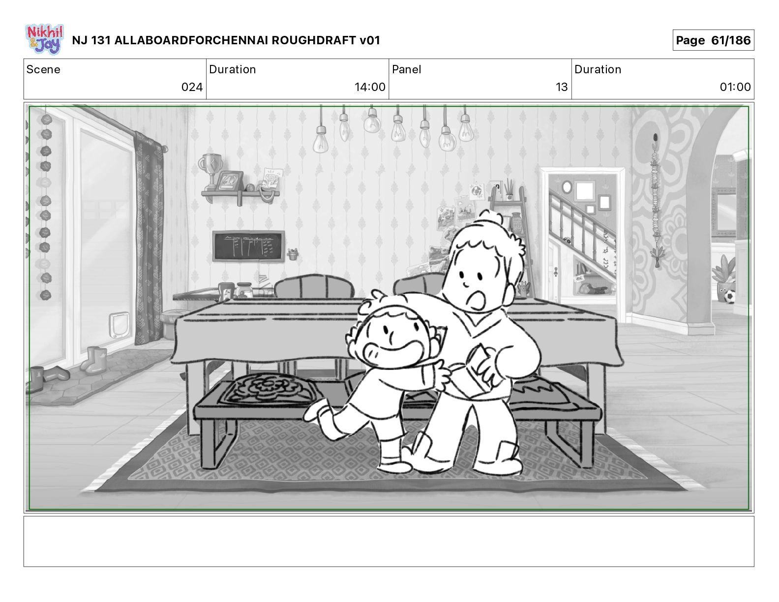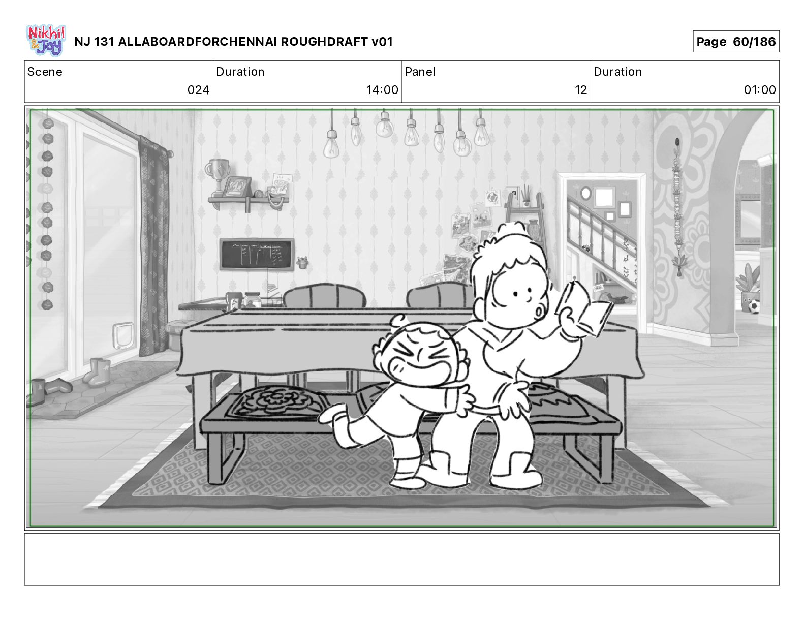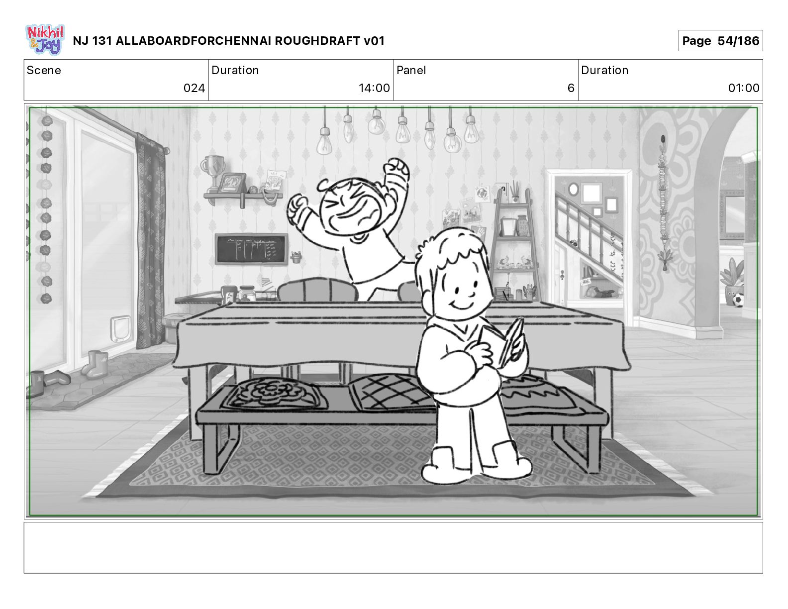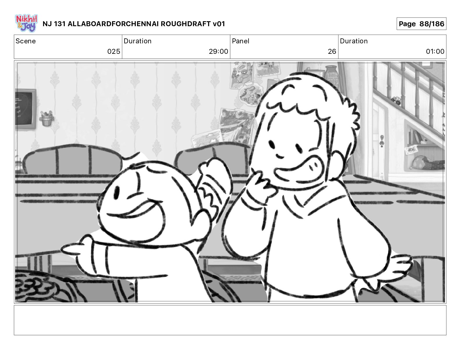 Dialog NIK: The train now arriving at Bunk Bed Station is the 9 45 to Chennai! NJ 131 ALLABOARDFORCHENNAI ROUGHDRAFT v01 Page 145/186