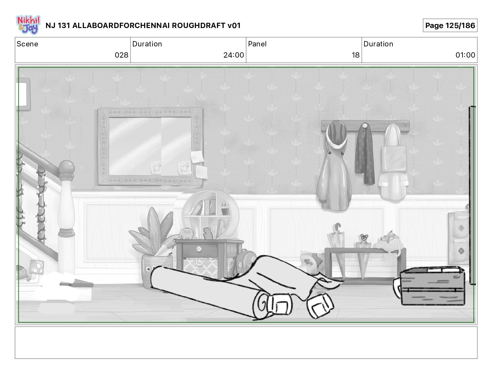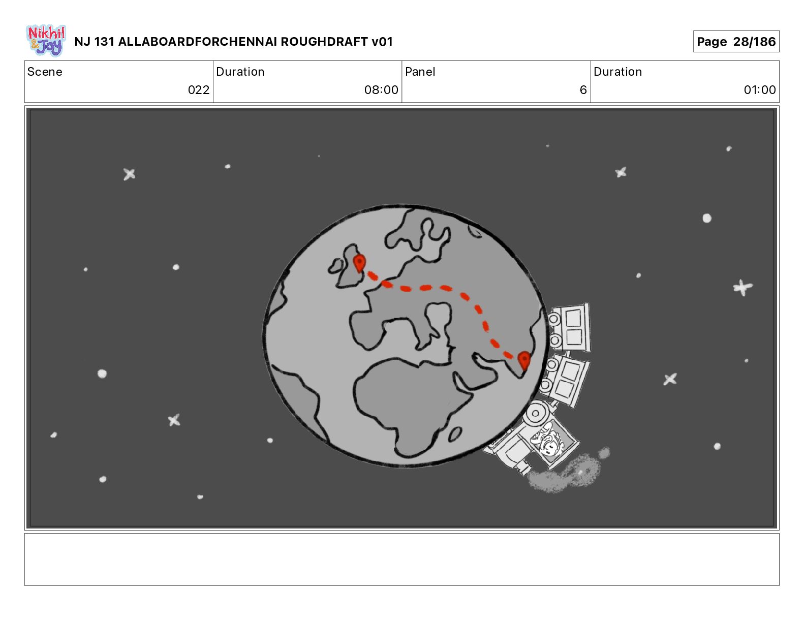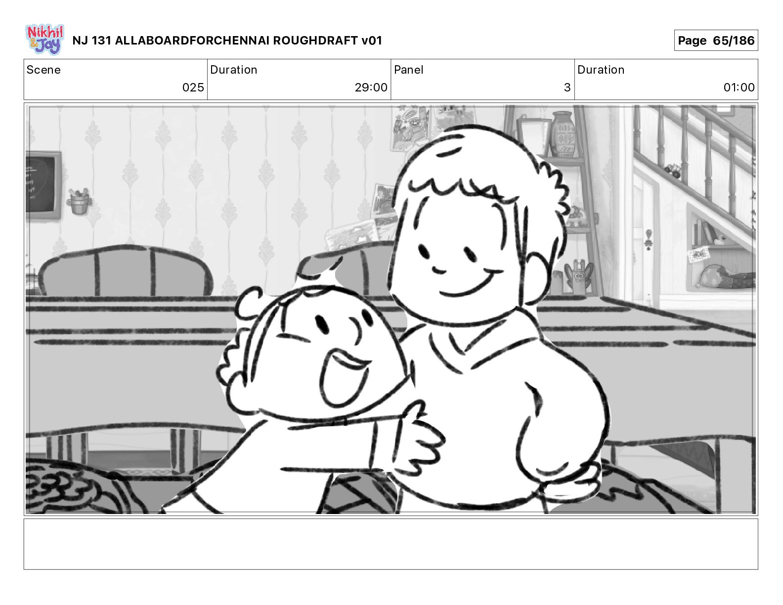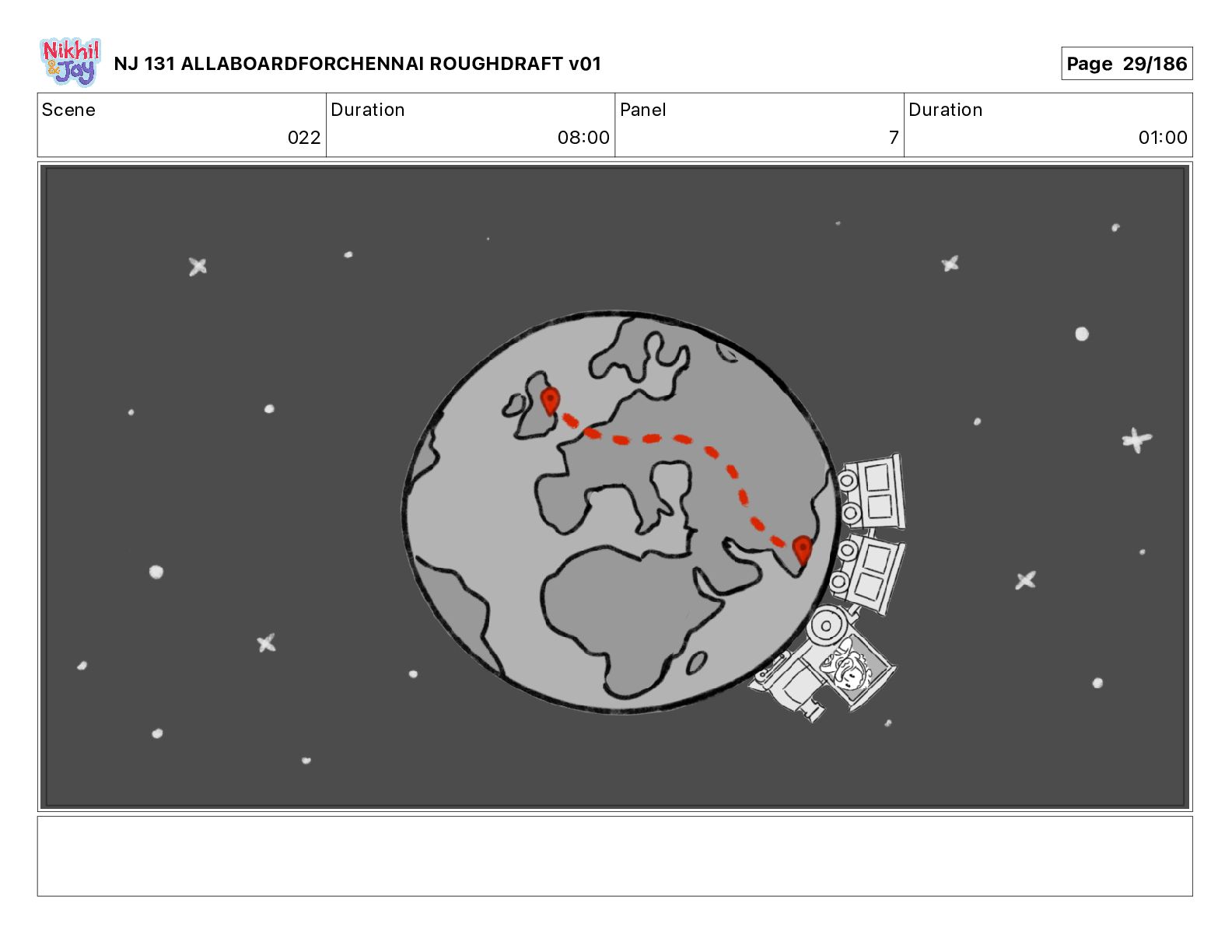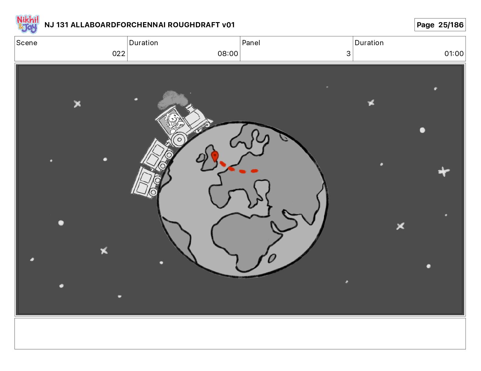 Dialog NIK: The train now arriving at Bunk Bed Station is the 9 45 to Chennai! NJ 131 ALLABOARDFORCHENNAI ROUGHDRAFT v01 Page 145/186