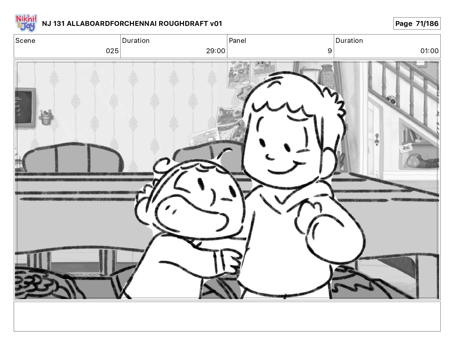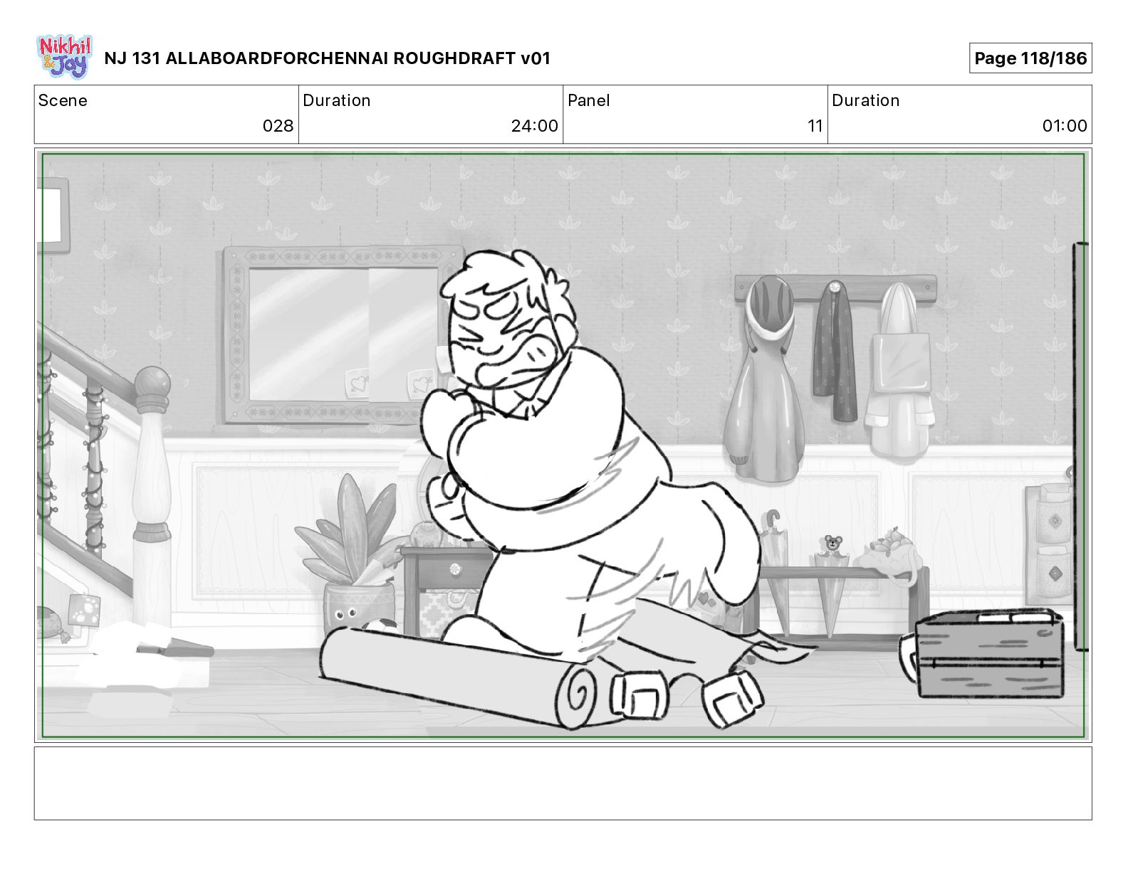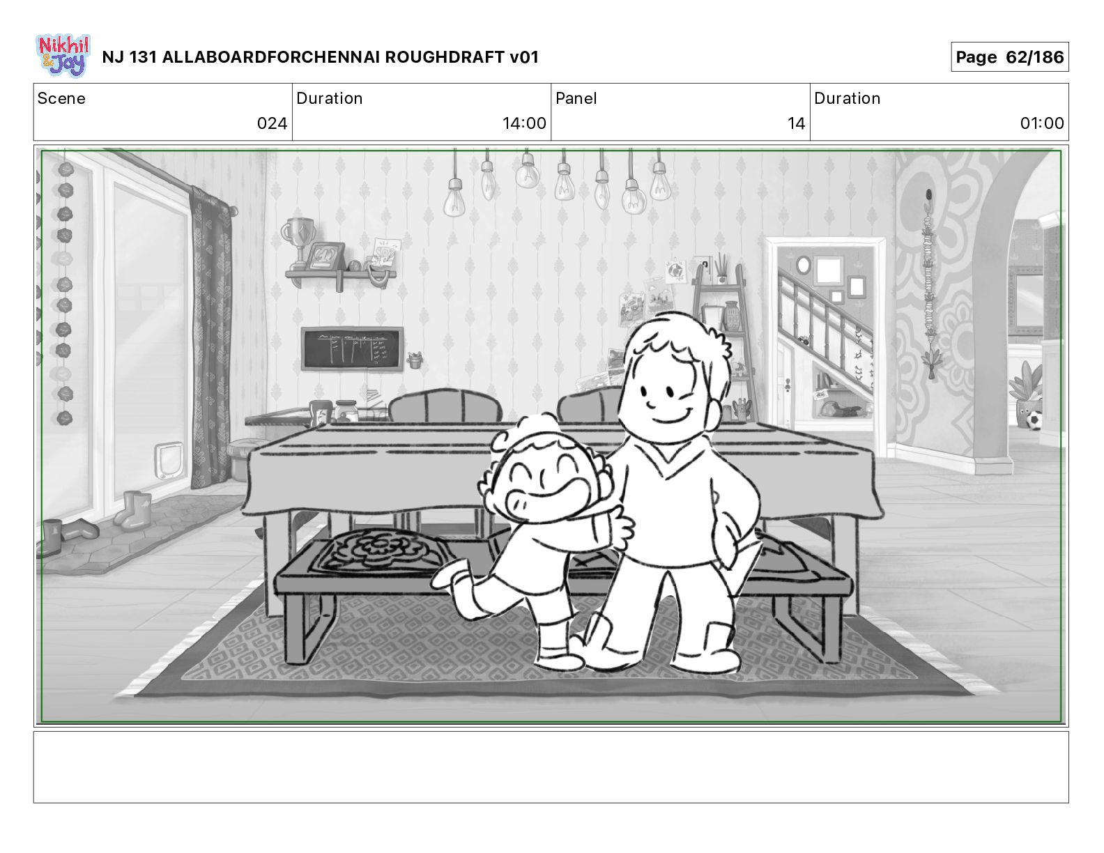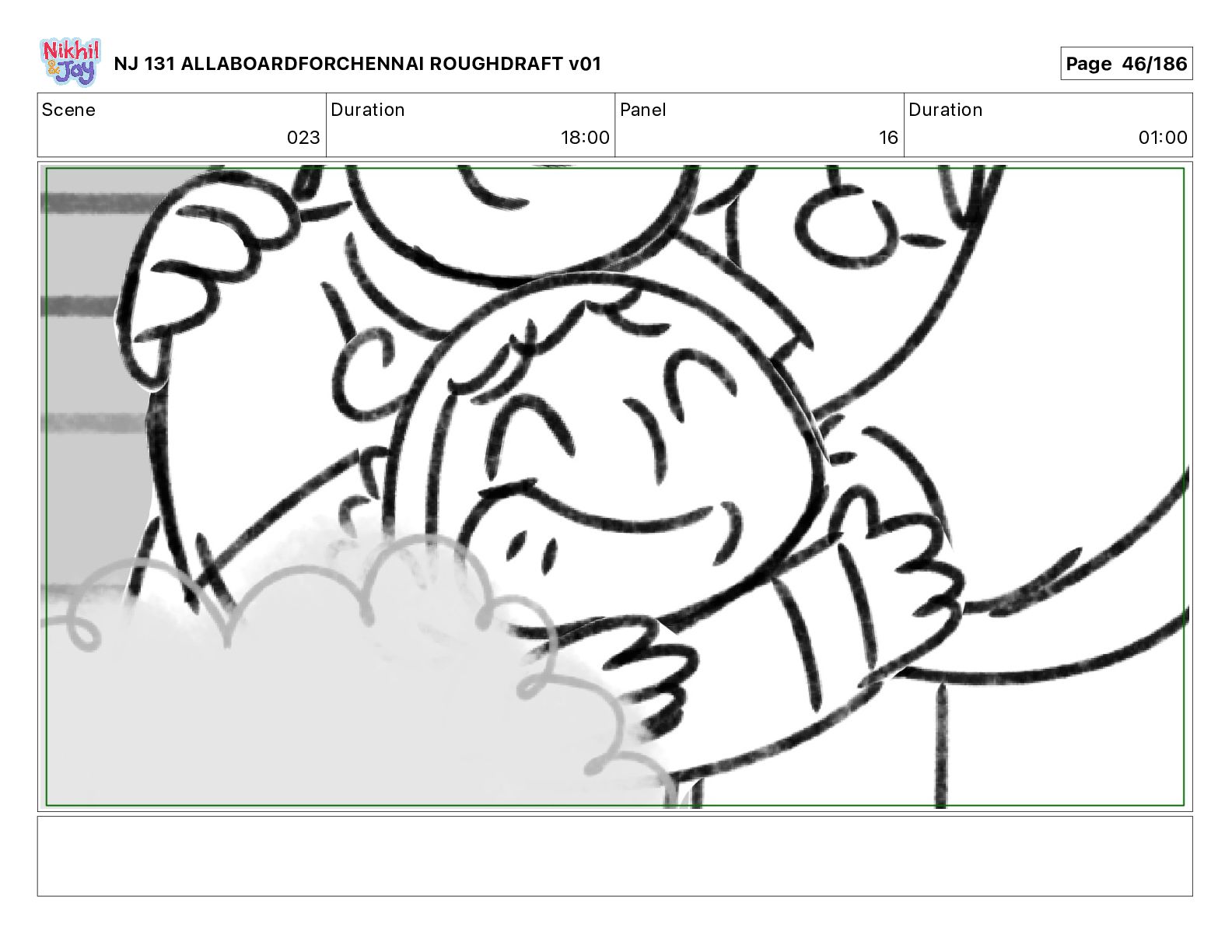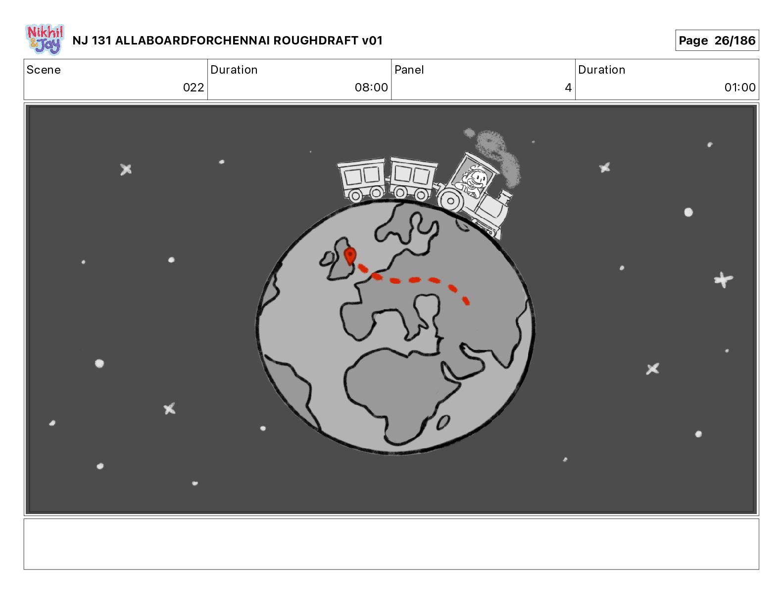 Dialog NIK: The train now arriving at Bunk Bed Station is the 9 45 to Chennai! NJ 131 ALLABOARDFORCHENNAI ROUGHDRAFT v01 Page 145/186