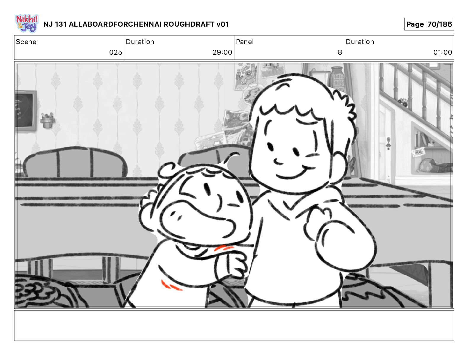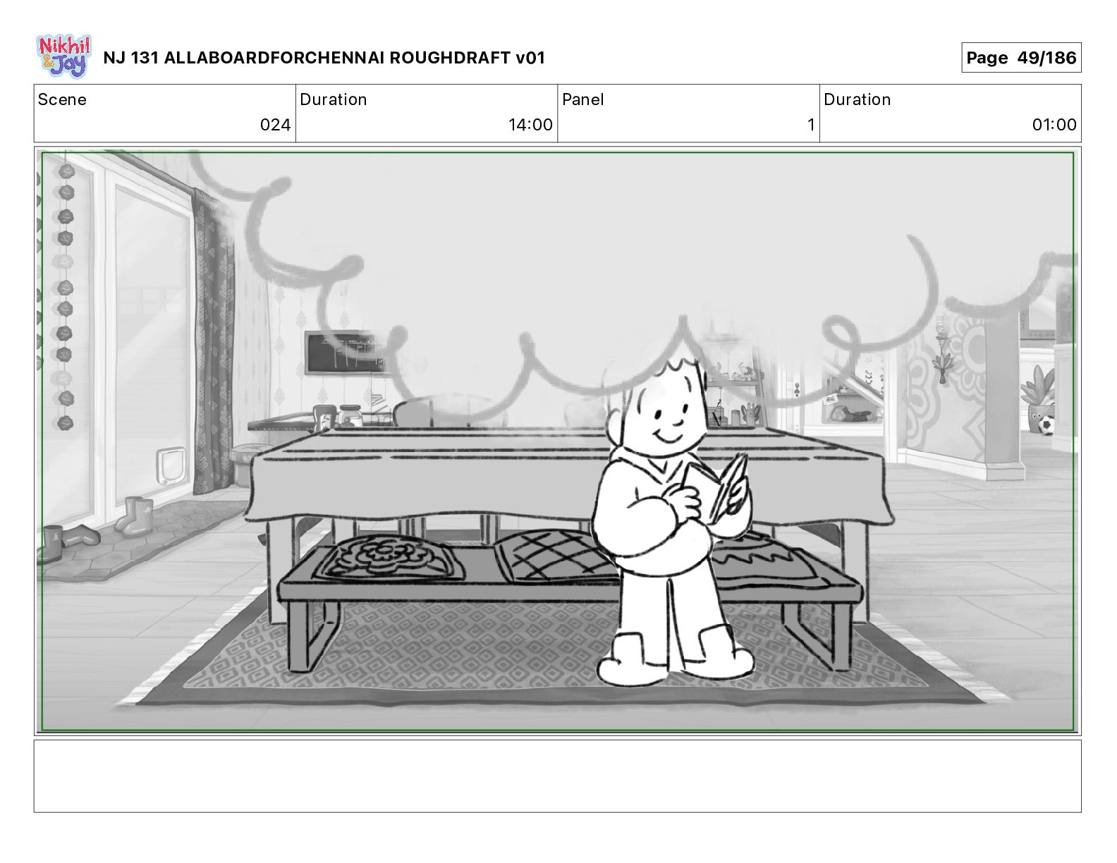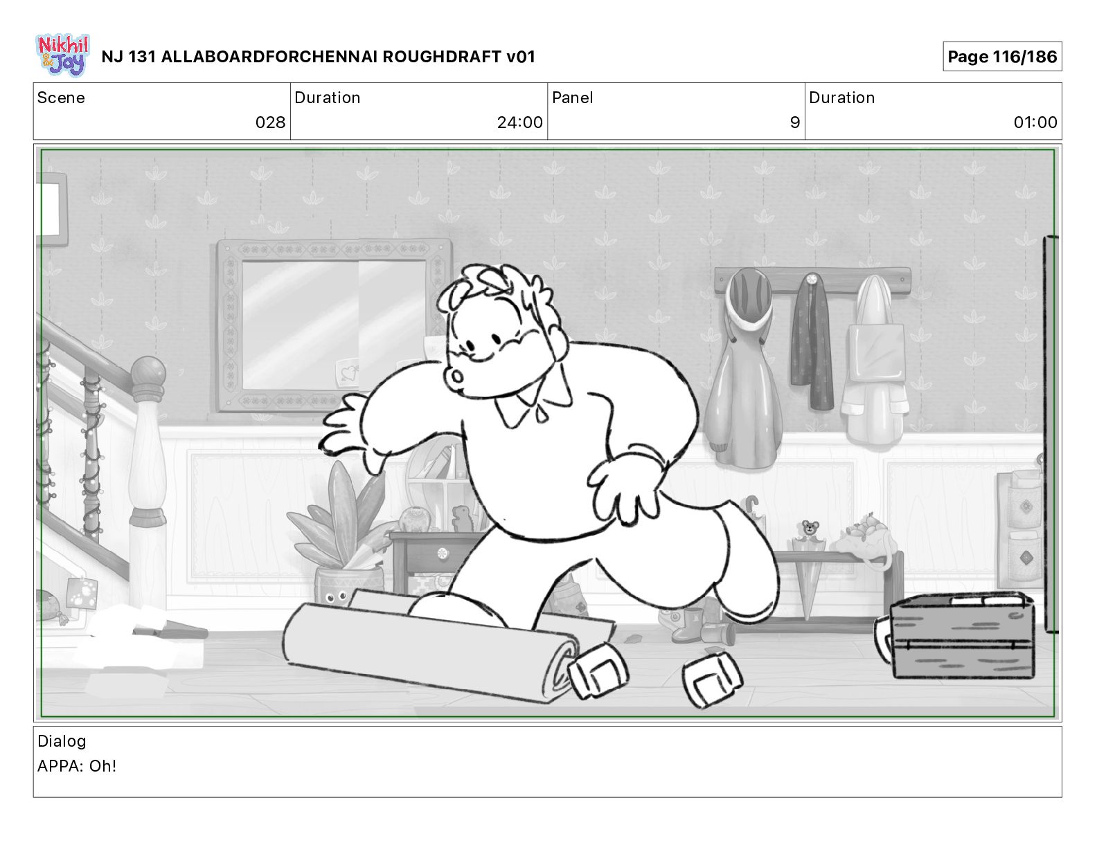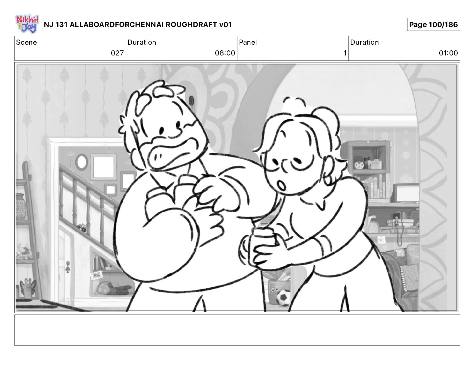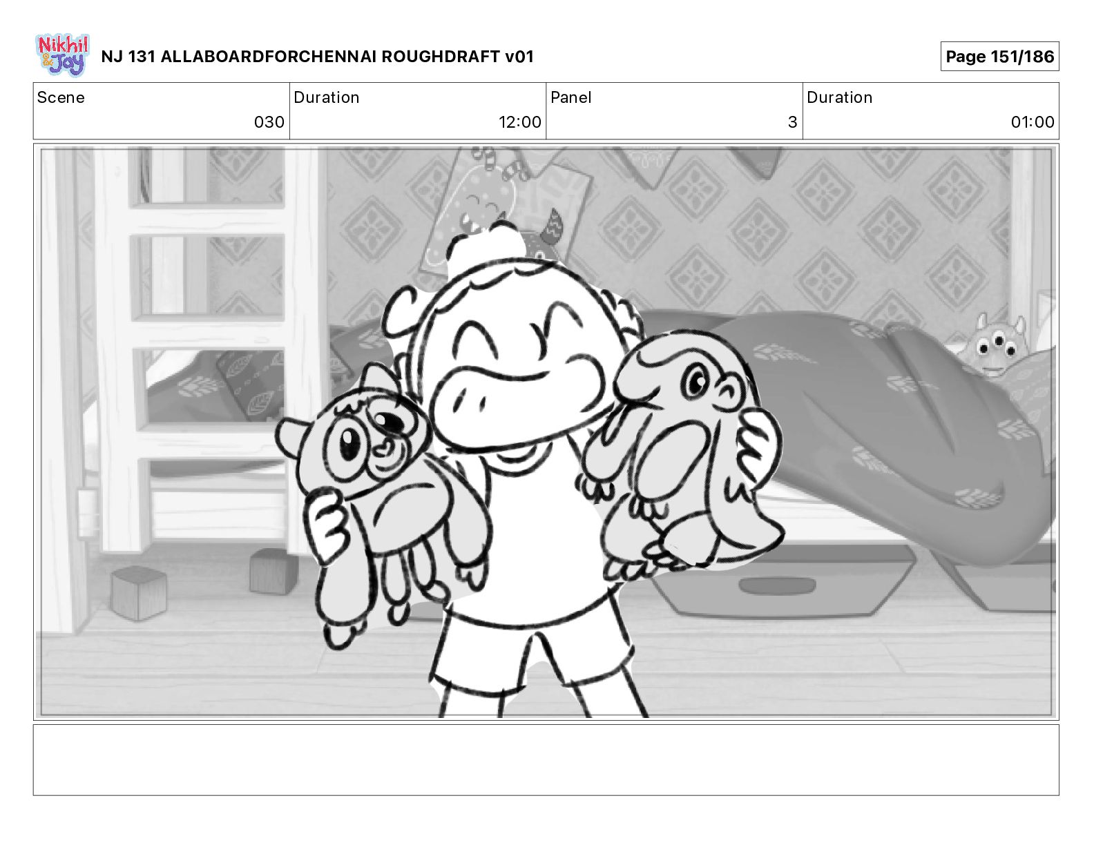 Dialog NIK: The train now arriving at Bunk Bed Station is the 9 45 to Chennai! NJ 131 ALLABOARDFORCHENNAI ROUGHDRAFT v01 Page 145/186