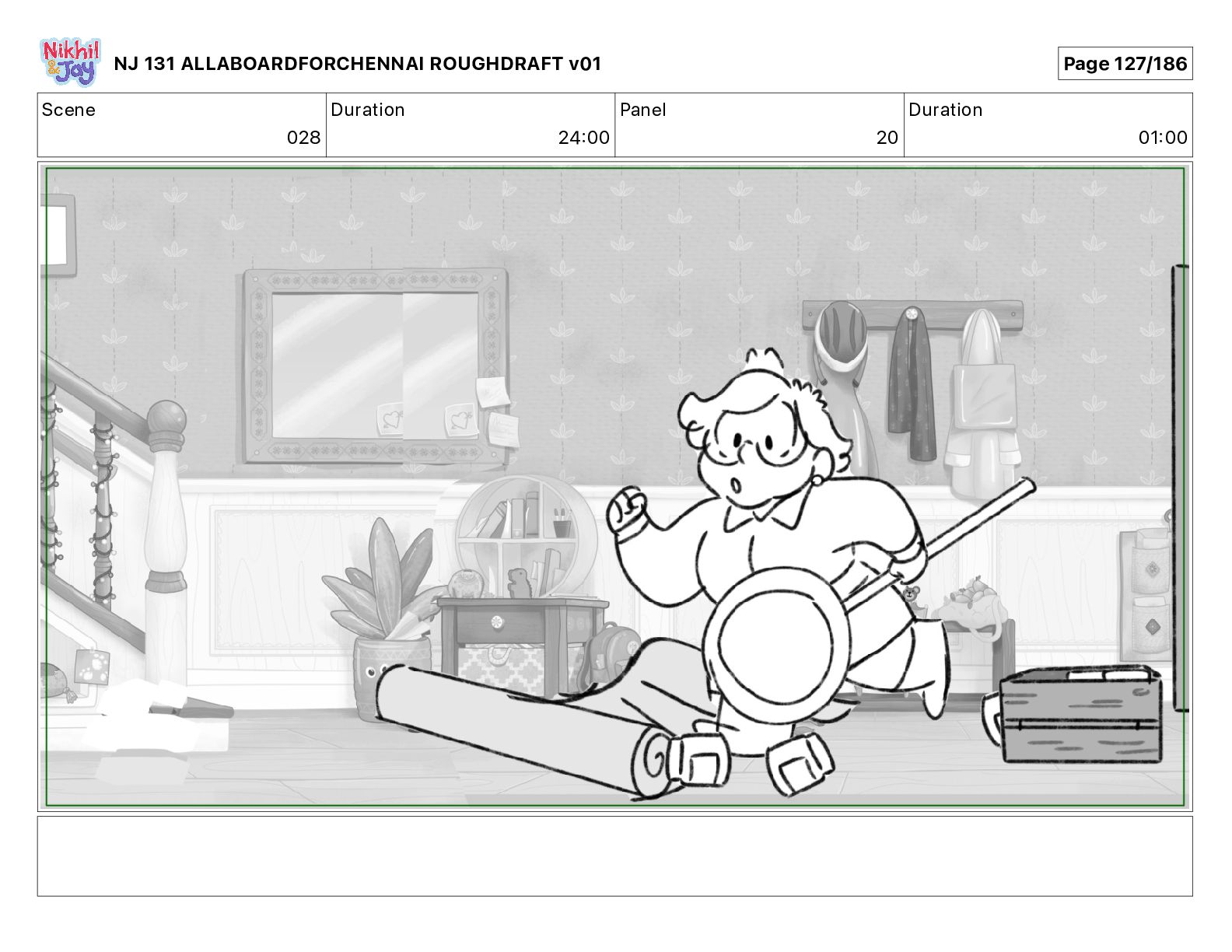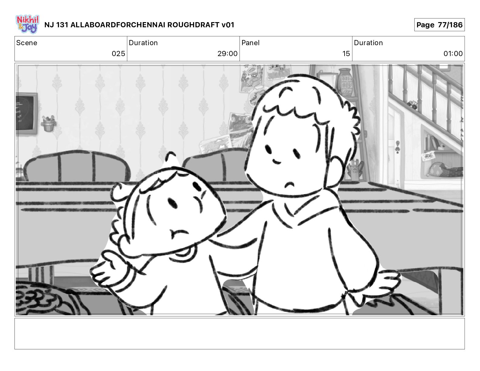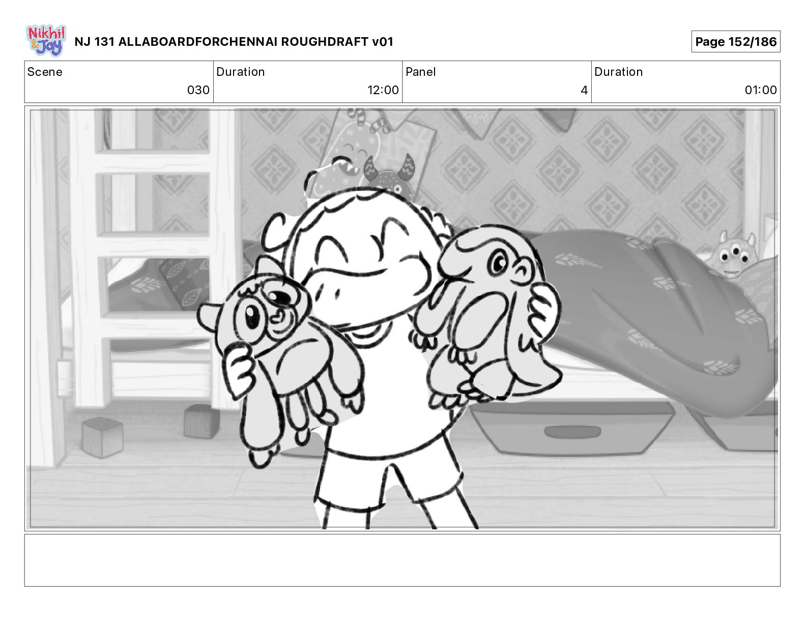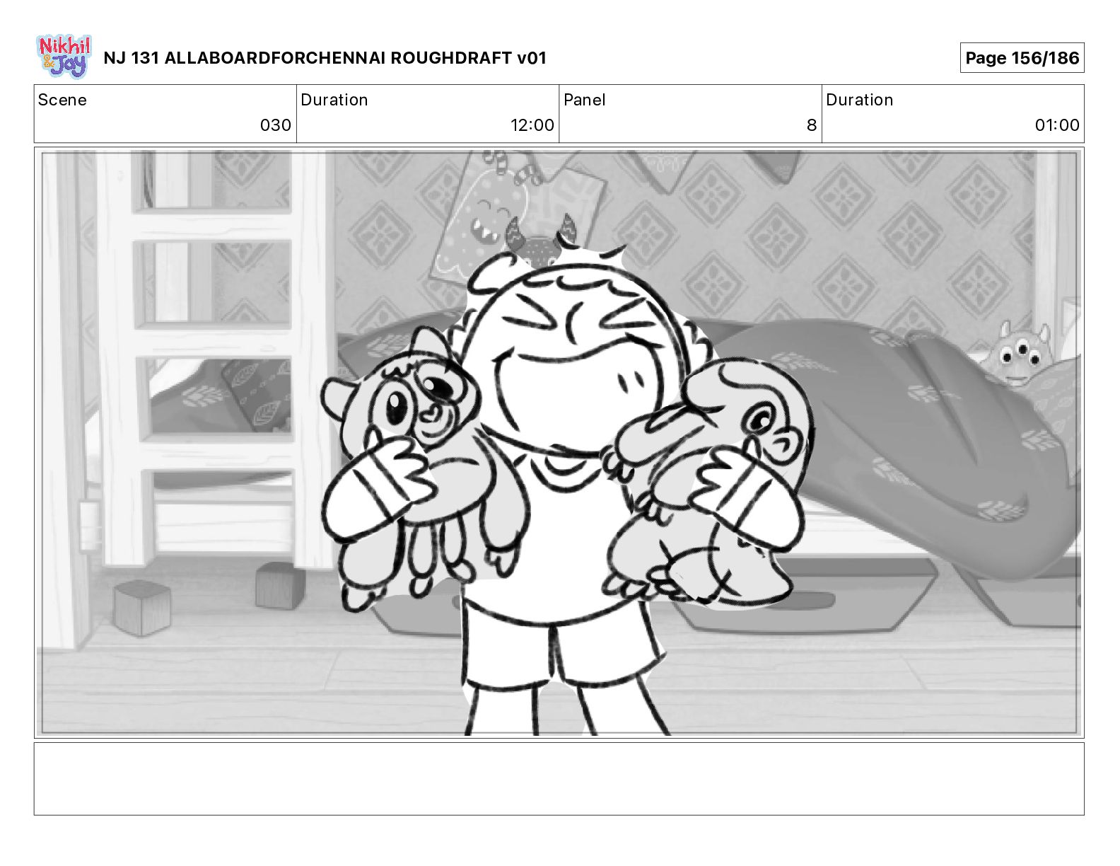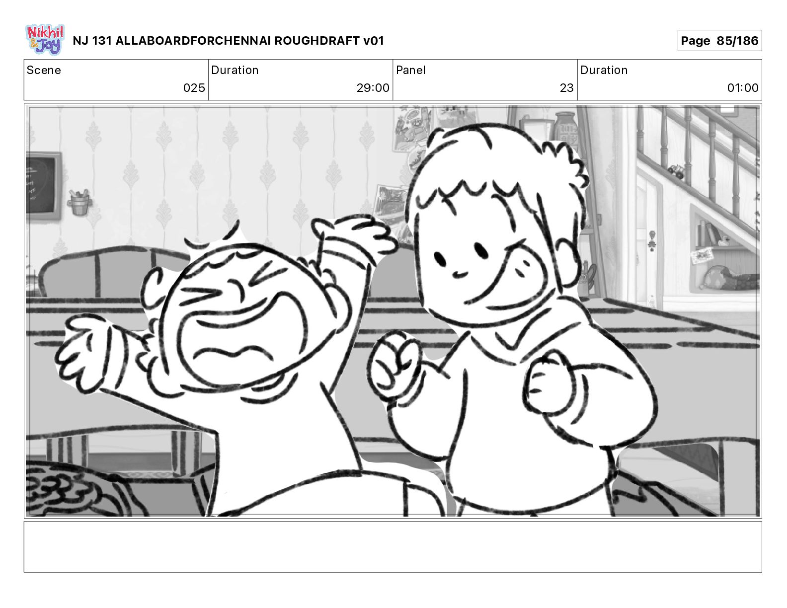 Dialog NIK: The train now arriving at Bunk Bed Station is the 9 45 to Chennai! NJ 131 ALLABOARDFORCHENNAI ROUGHDRAFT v01 Page 145/186