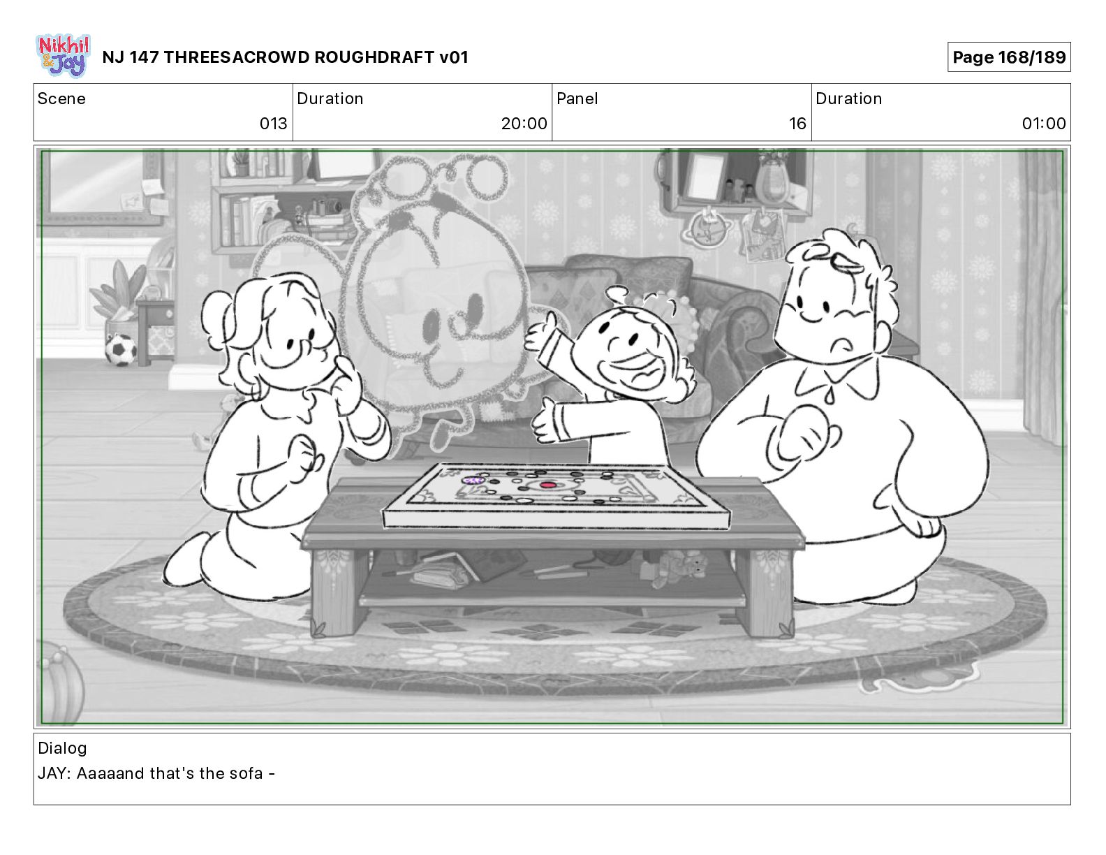 Dialog JAY: Aaaaand that's the sofa - NJ 147 THREESACROWD ROUGHDRAFT v01 Page 168/189