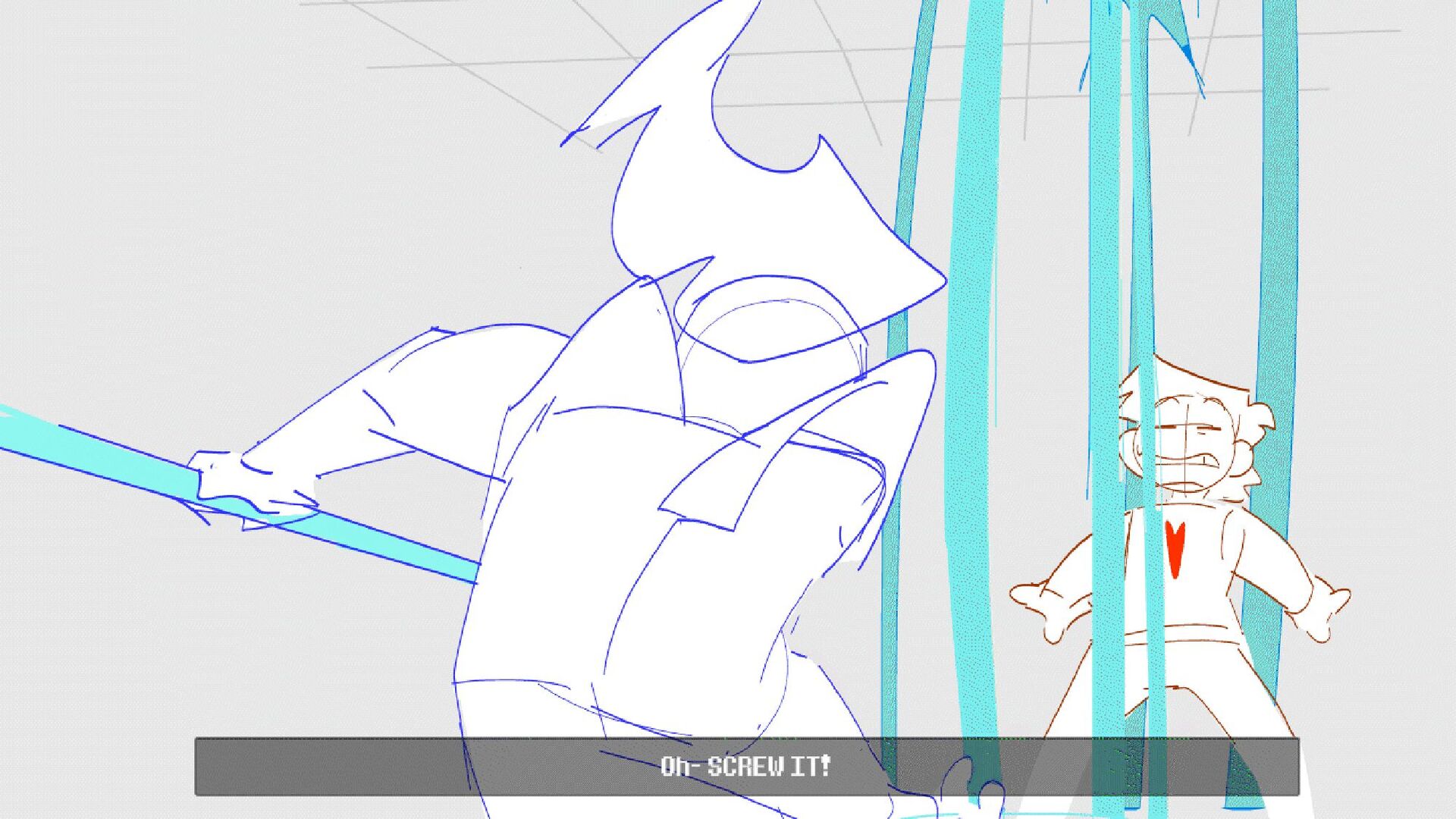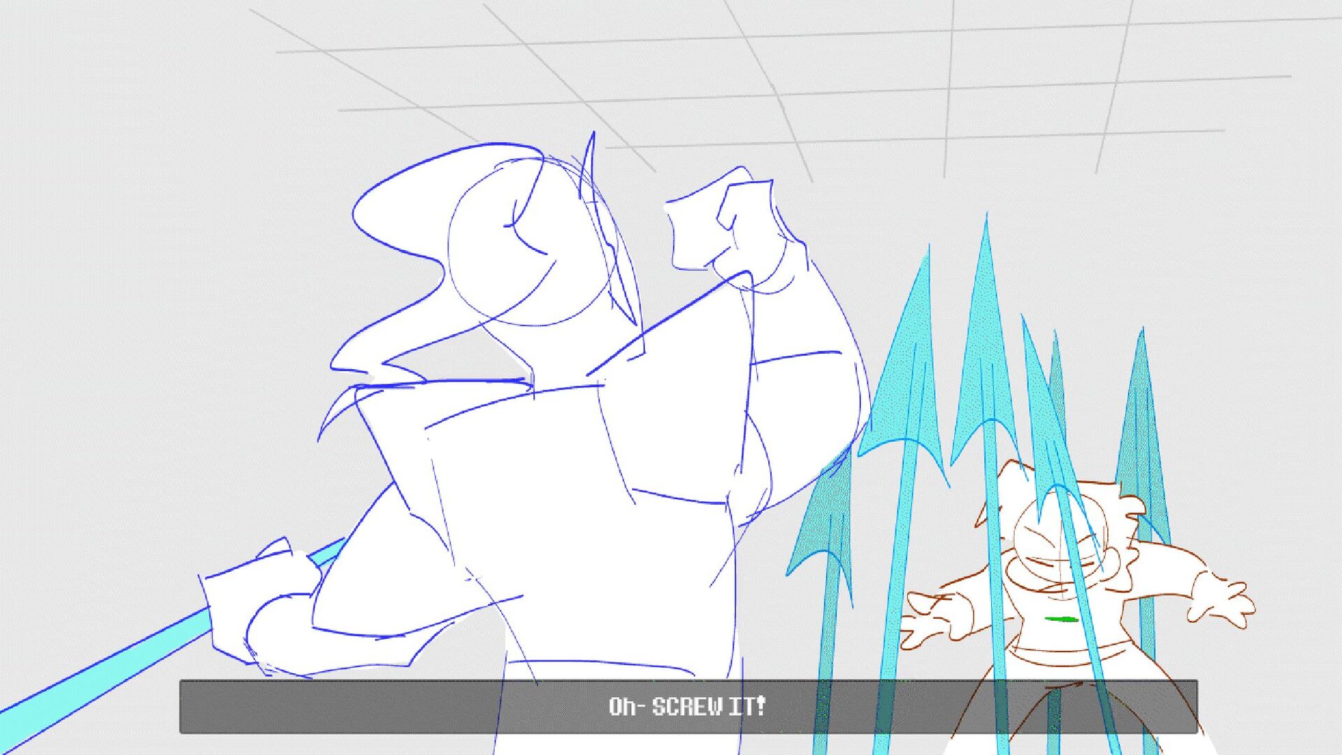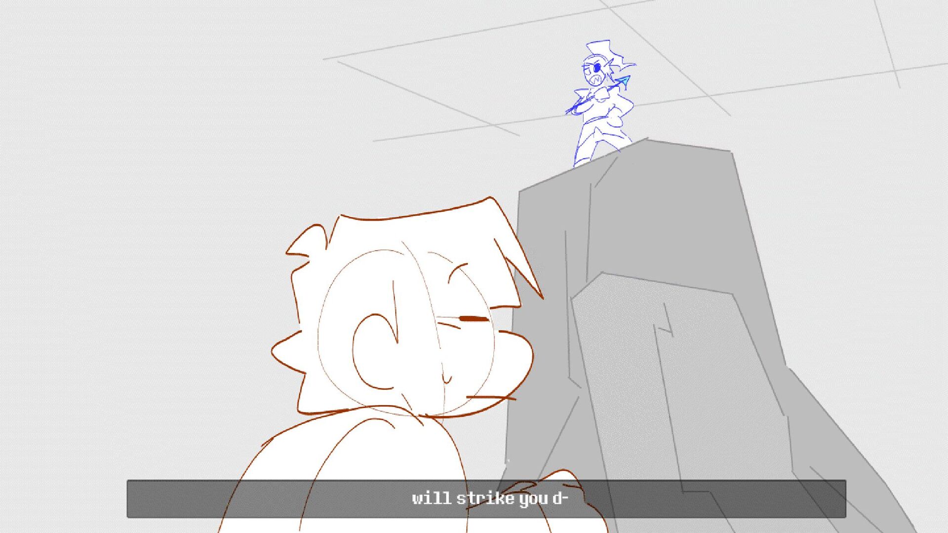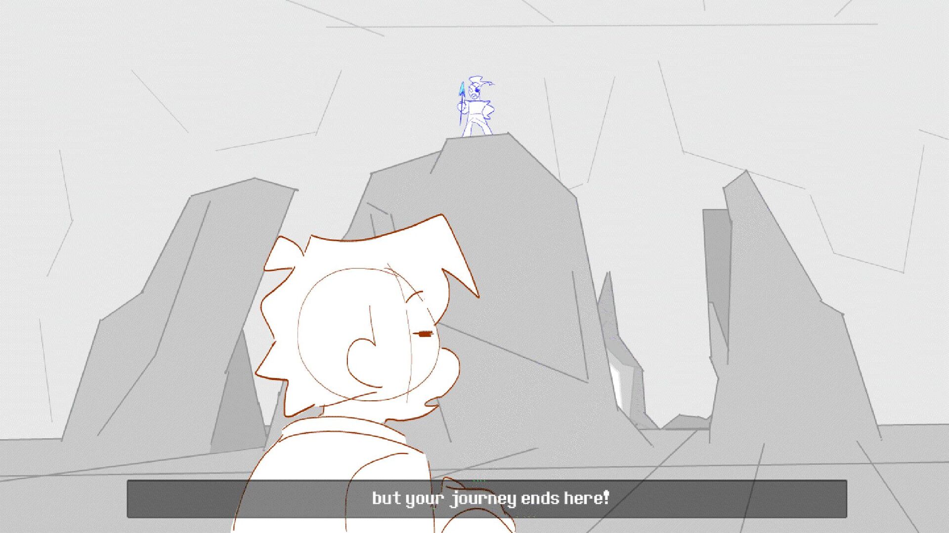 *Note: this is my own rendition of the fight, not completely accurate to the canon in-game presentation.