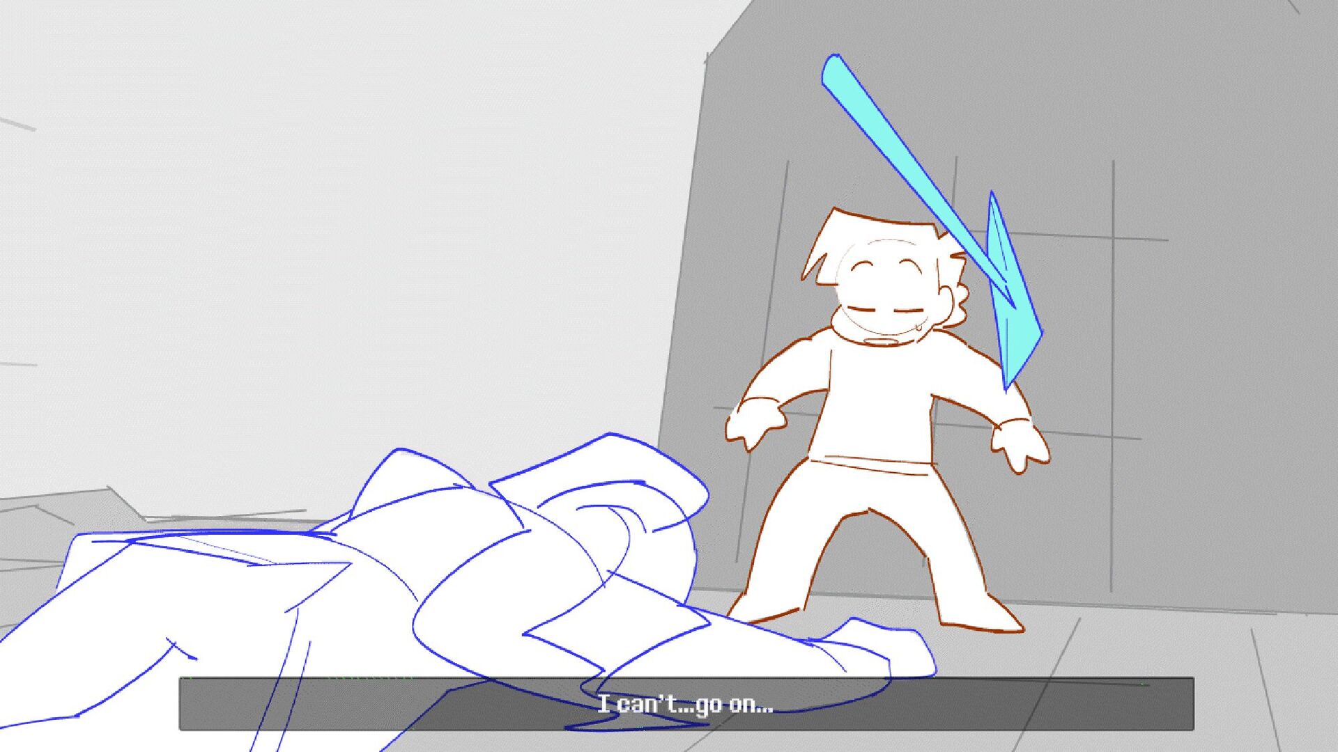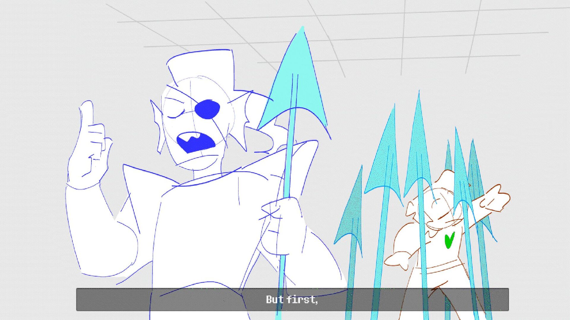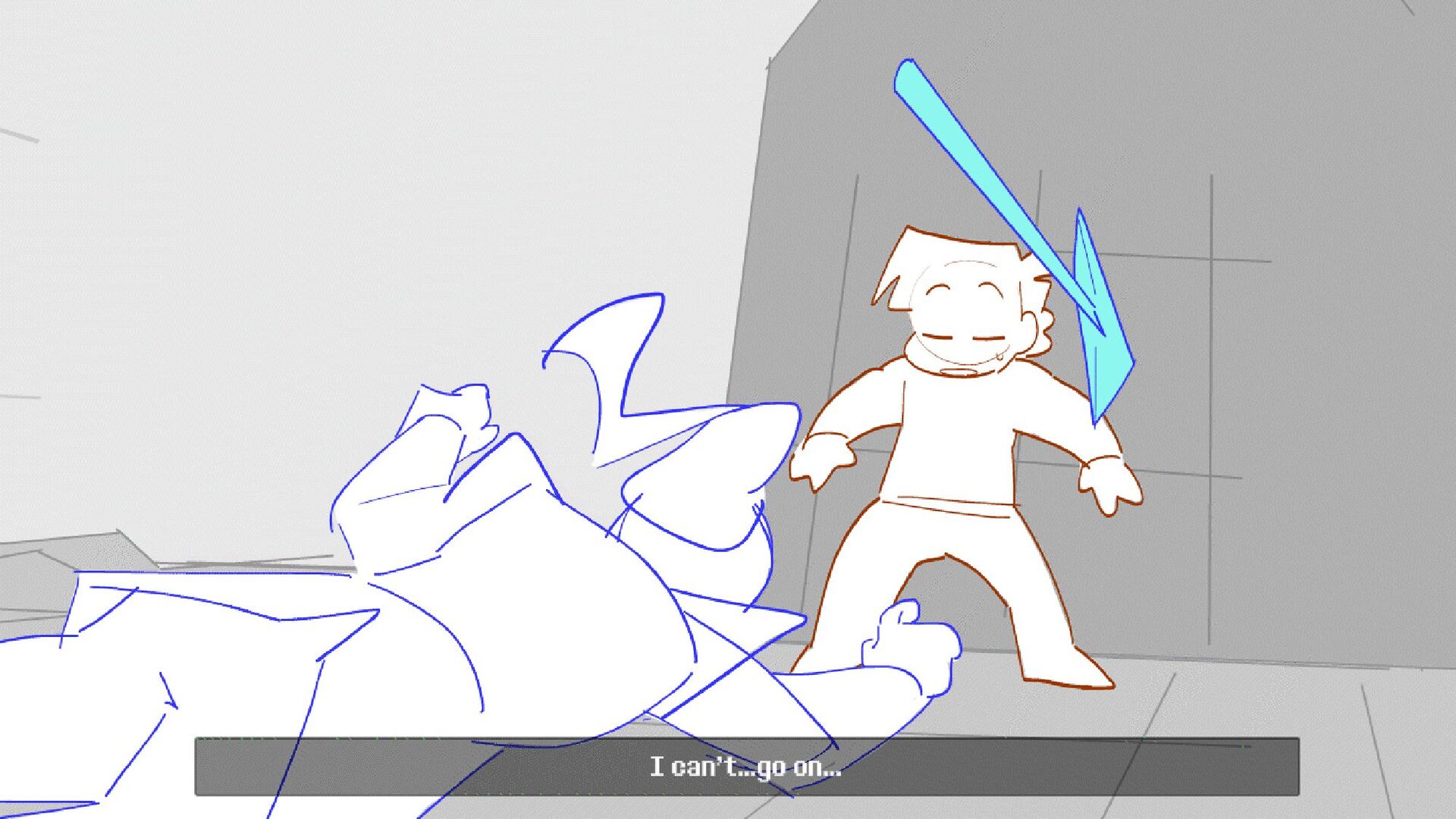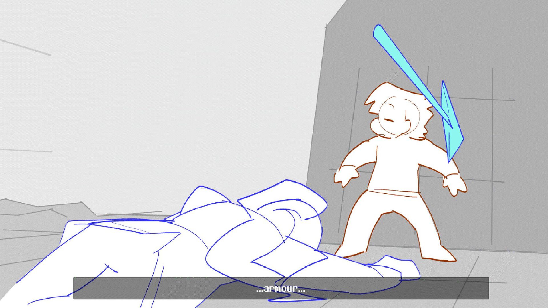 *Note: this is my own rendition of the fight, not completely accurate to the canon in-game presentation.