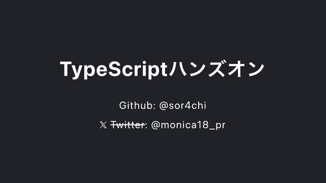 TypeScriptハンズオン Github: @sor4chi 𝕏 Twitter: @monica18_pr