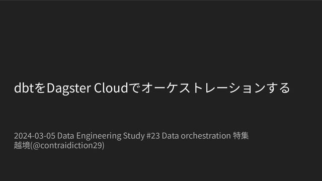 dbtをDagster Cloudでオーケストレーションする 2024-03-05 Data Engineering Study #23 Data orchestration 特集