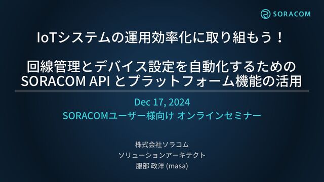 グループに所属させる > soracom orders list-subscribers --order-id {your_order_id} | jq -r '.orderedSubscriberList[0].simId' > soracom sims set-group --sim- id {your_sim_id} --group-id {your_group_id} SIM の名前 (名前タグ) を設定する > soracom sims put-tags --sim-id {your_sim_id} --body '[{"tagName":"name","tagValue":"{ your_sim_name}"}]' SIM の速度クラスを変更する > soracom sims update-speed- class --sim-id {your_sim_id} -- speed-class 's1.standard' 参考ガイド:SORACOM CLI 利用ガイド