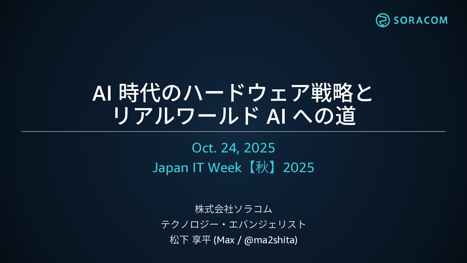 2025年10月24日開催『Japan IT Week【秋】2025』で、ソラコム松下(max)が発表した資料です。
