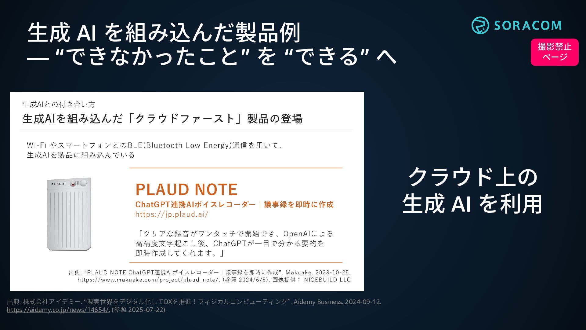 生成 AI を組み込んだ製品例 ― “できなかったこと” を “できる” へ 撮影禁止 ページ