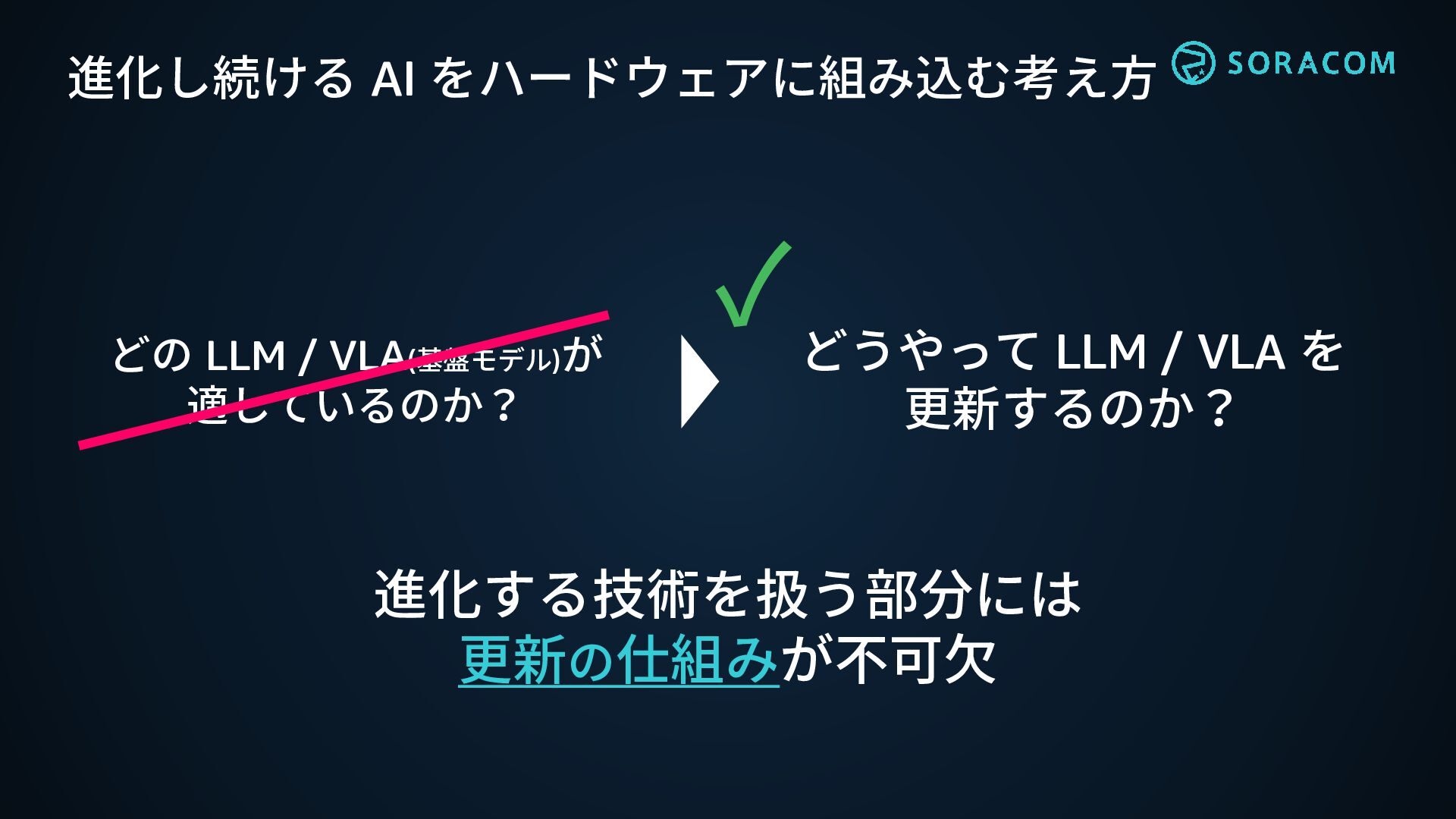 を 更新するのか? 進化し続ける AI をハードウェアに組み込む考え方 ✓ 進化する技術を扱う部分には 更新の仕組みが不可欠
